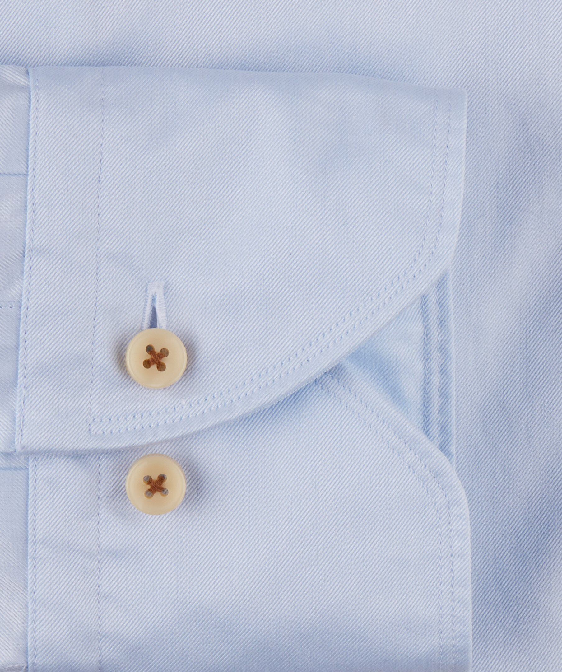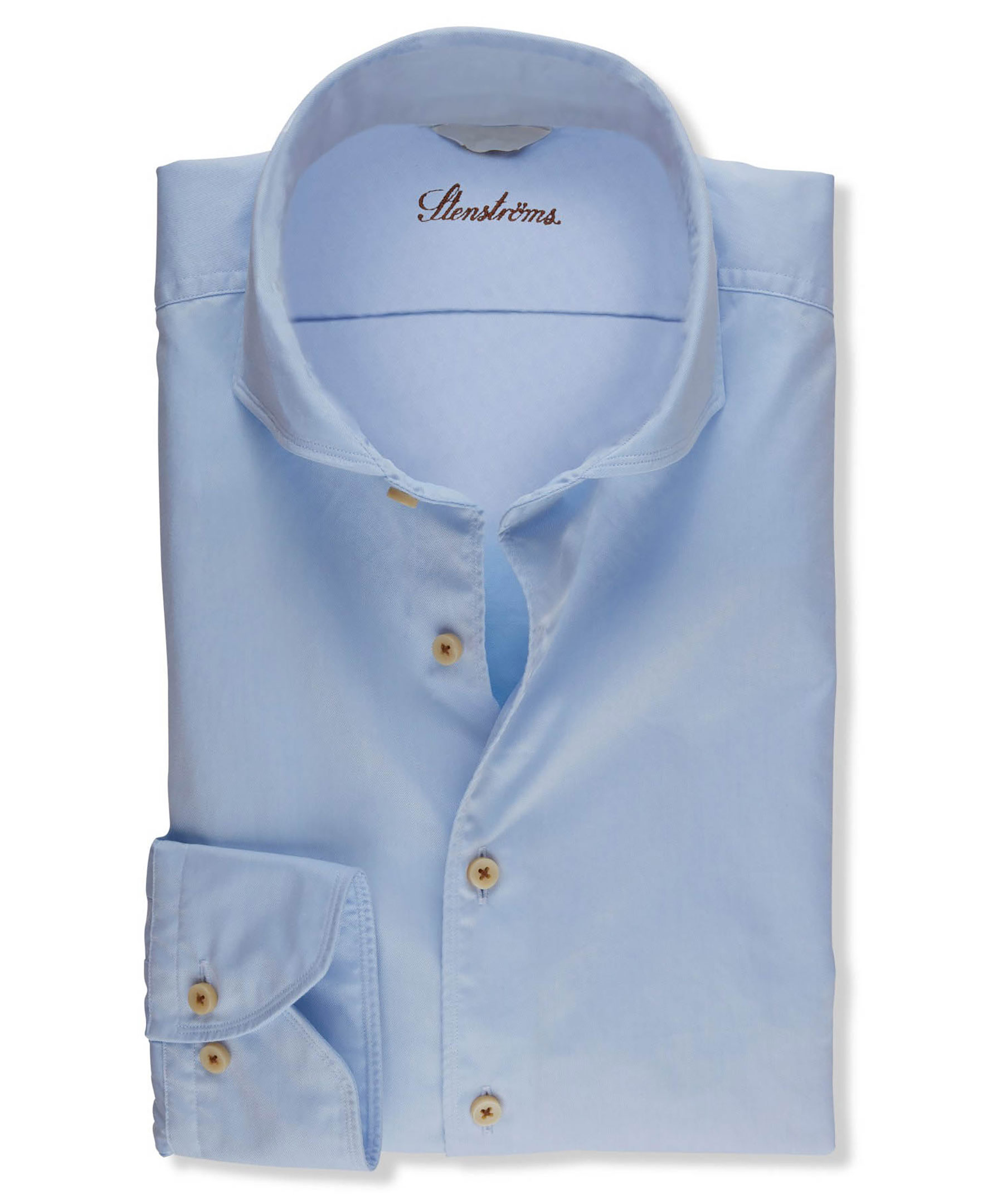 Blå skjorta från Stenströms. Fitted body, tvättad för en avslappnad look, enkel manschett, pärlemorknappar med x-stygn, cut away krage. Tillverkad i 100% bomull.