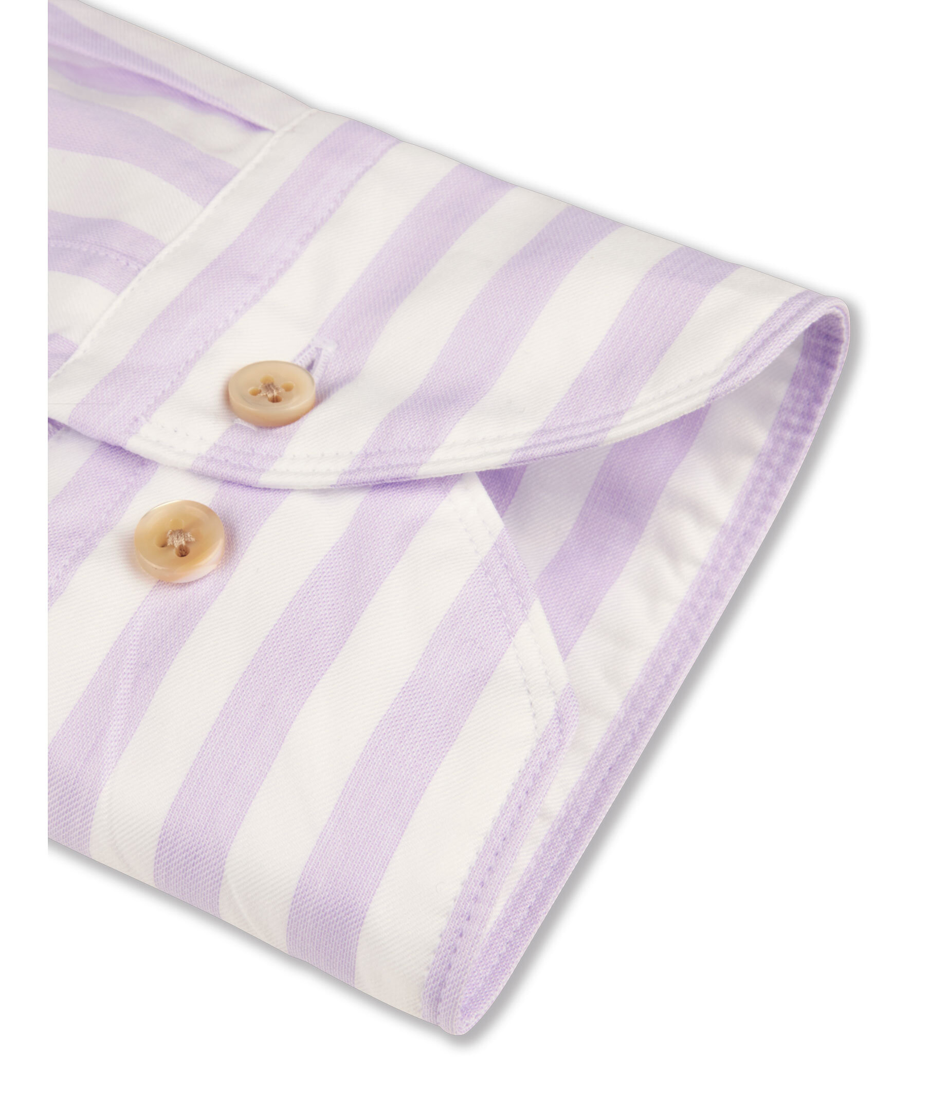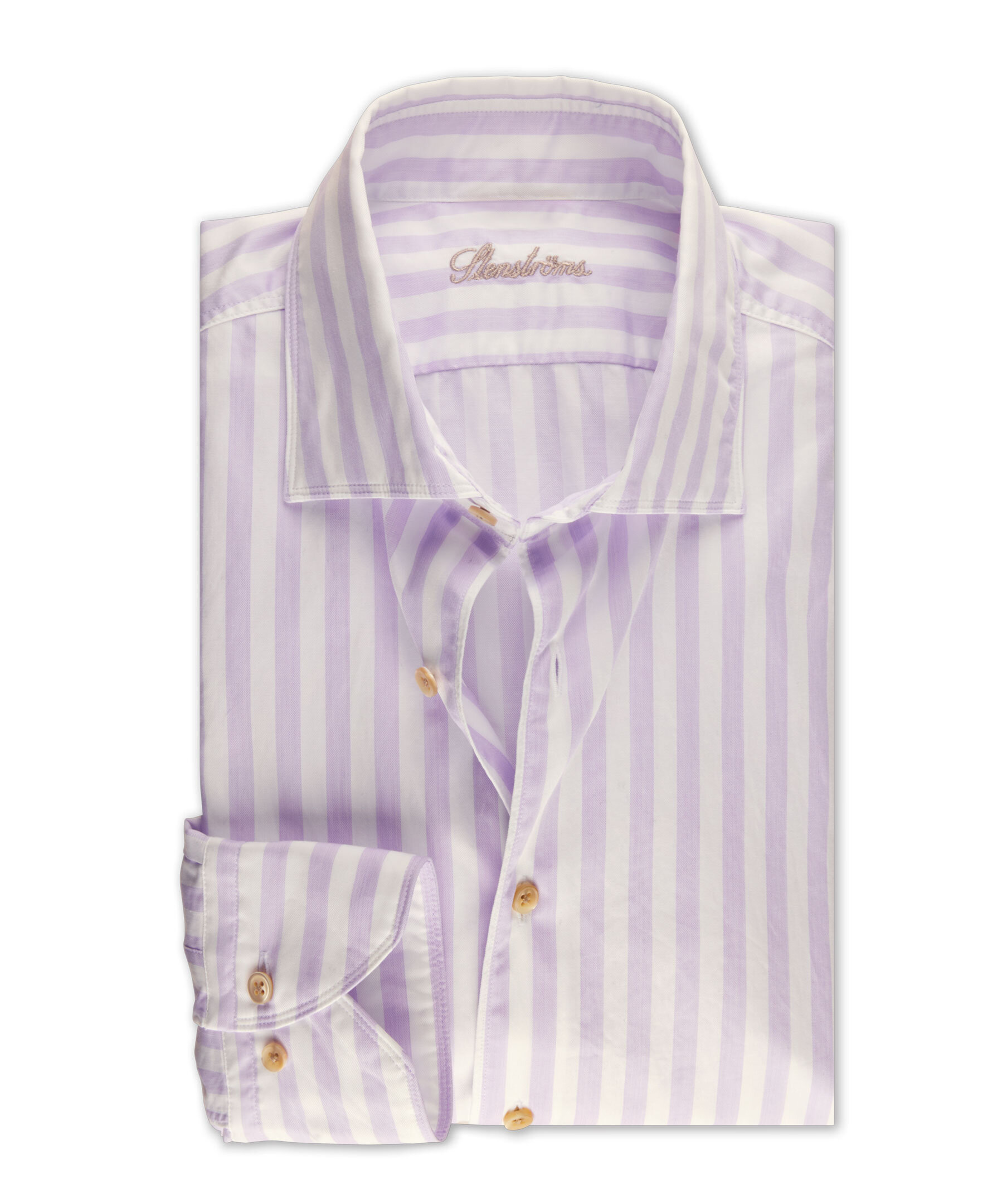 Denna casual randiga twillskjorta är tillverkad av twofold bomull. Skjortan har pärlemorknappar, enkla manschetter och en cut away krage.