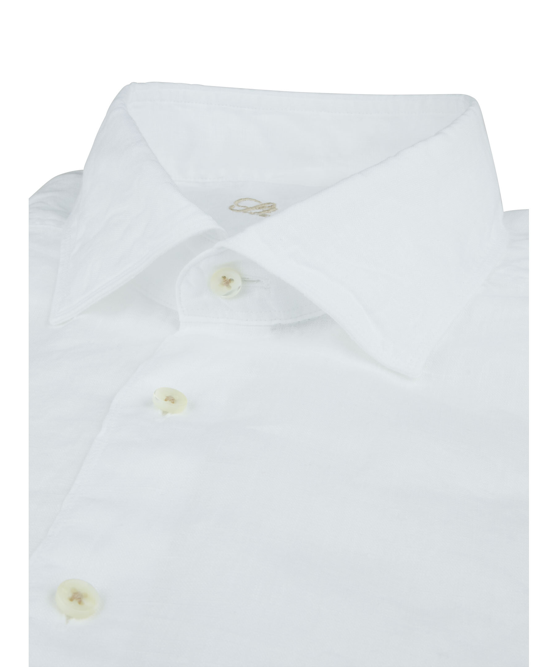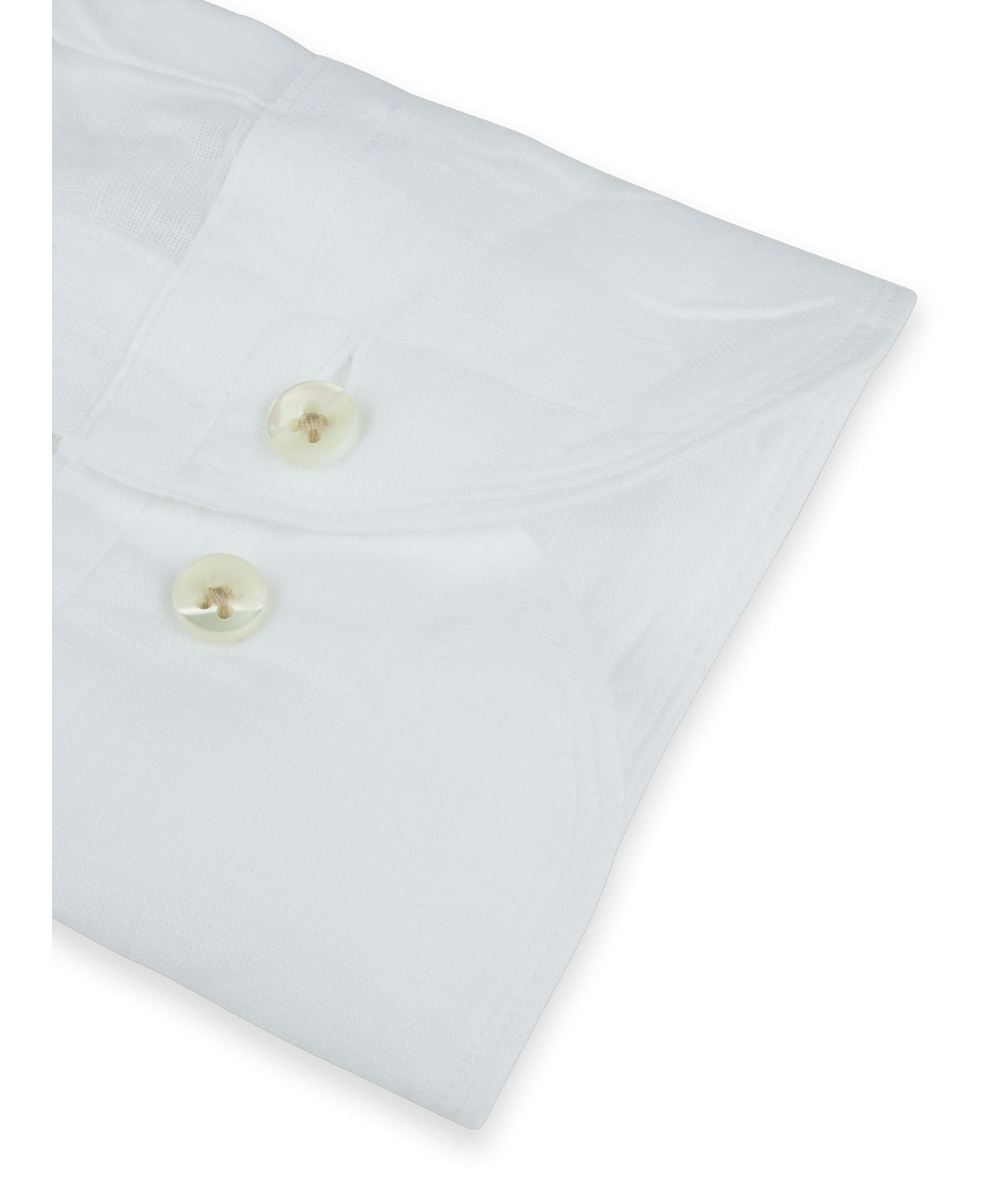 Denna Fitted Body-skjorta är tillverkad av linne och pärlemorknappar, enkla manschetter och en cut away krage.