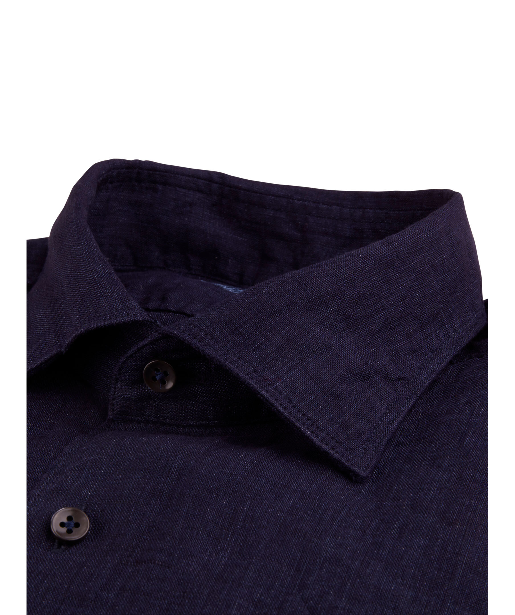 Denna Fitted Body-skjorta är tillverkad av linne och pärlemorknappar, enkla manschetter och en cut away krage.