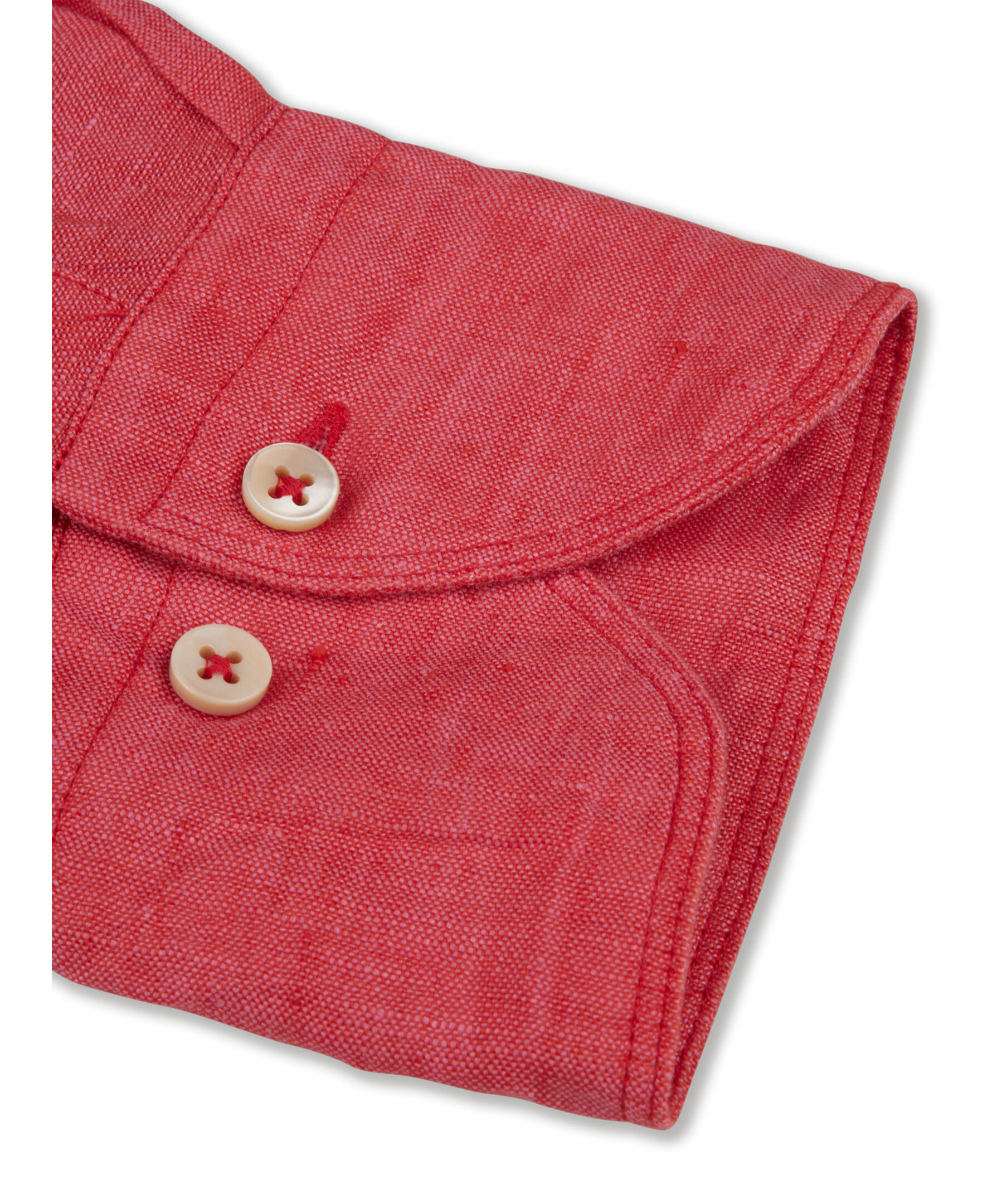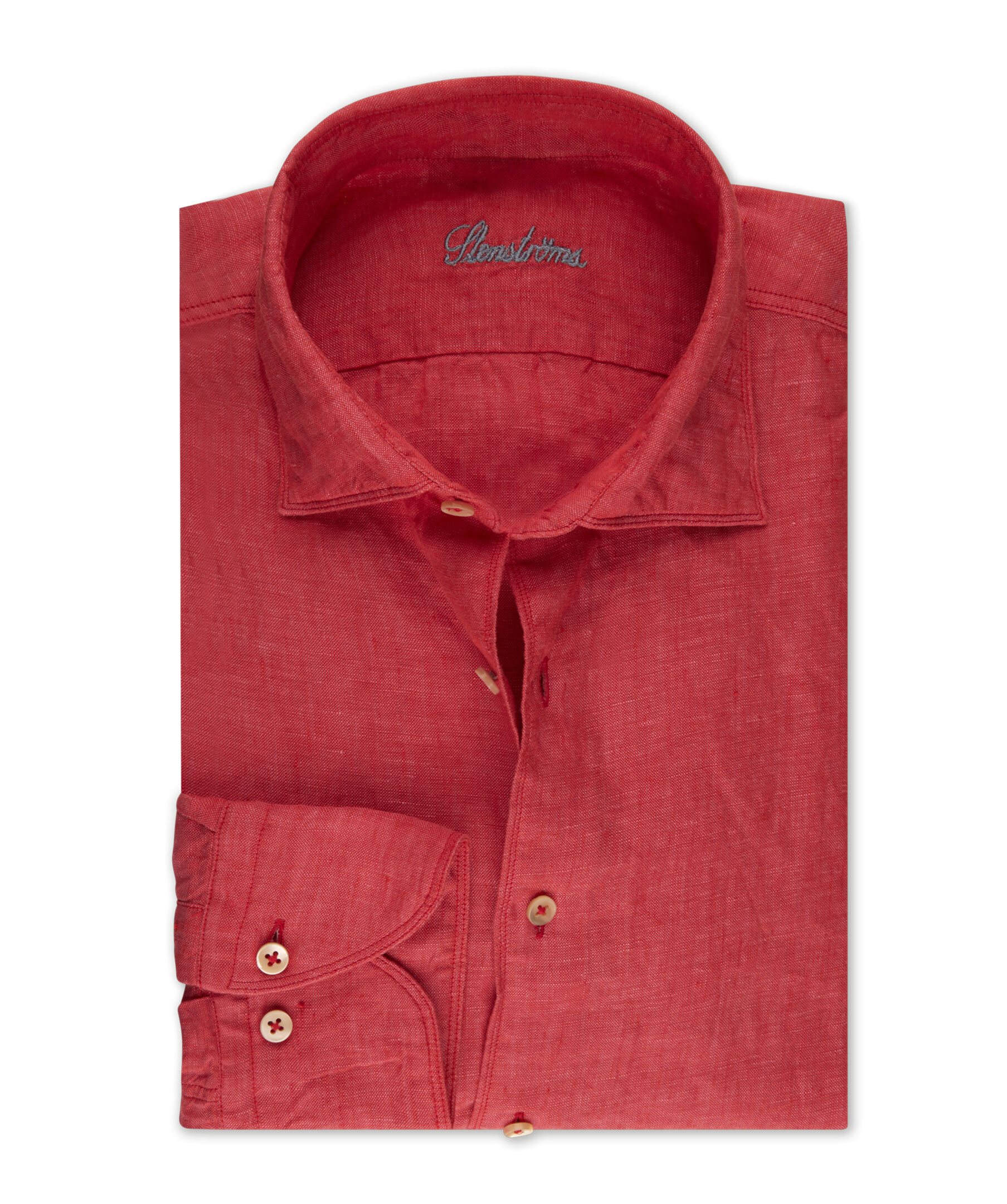 Denna Fitted Body-skjorta är tillverkad av linne och pärlemorknappar, enkla manschetter och en cut away krage.