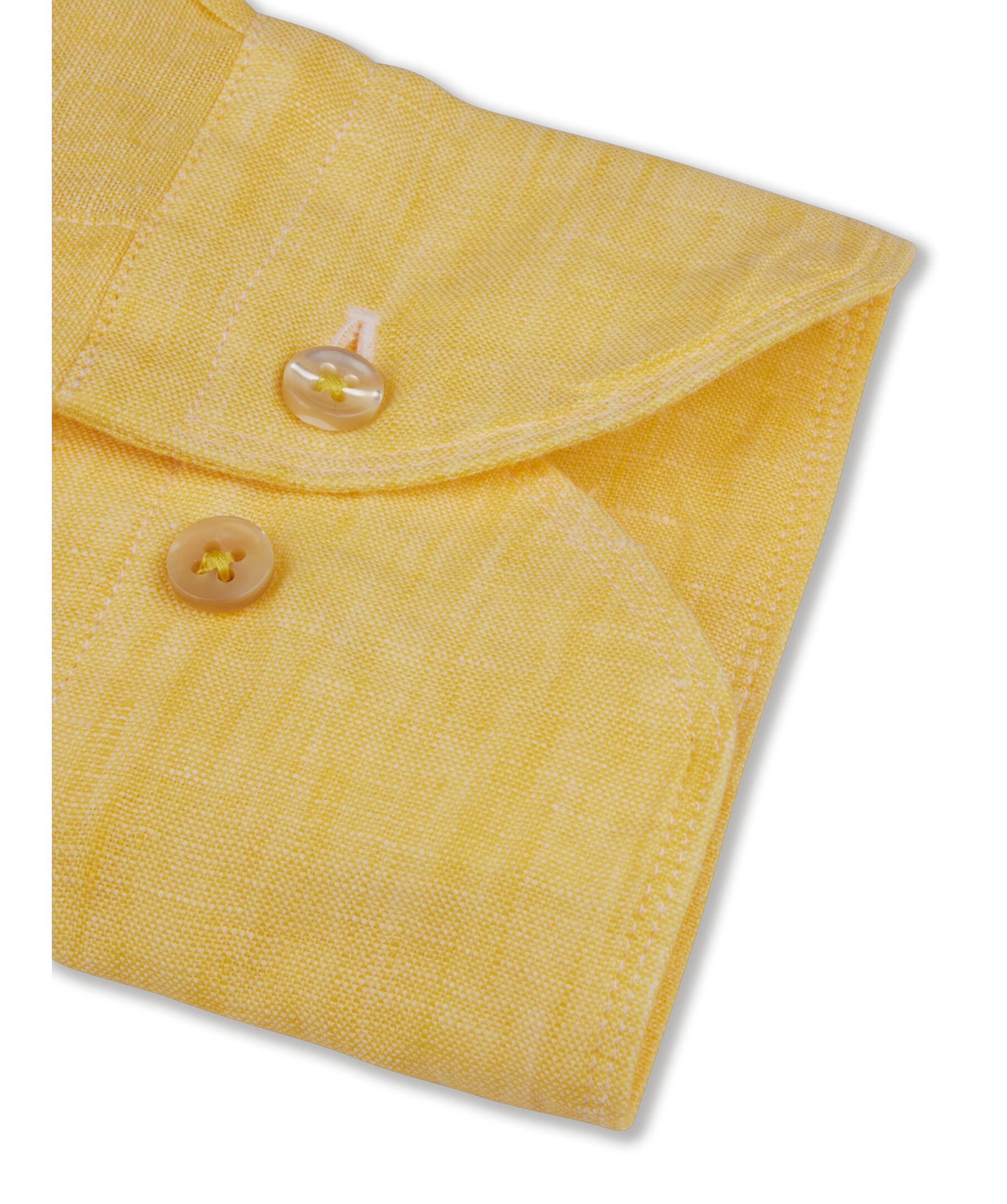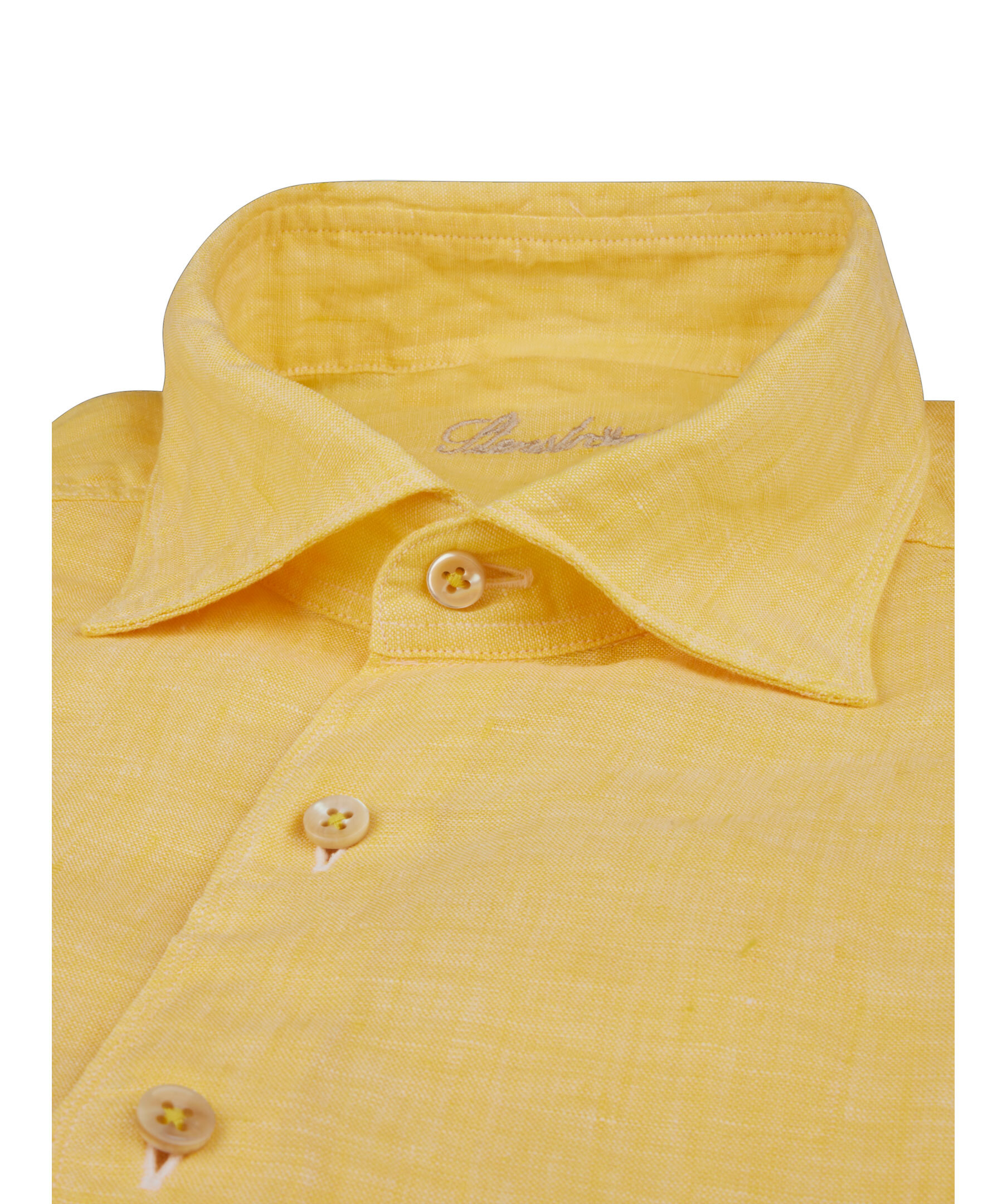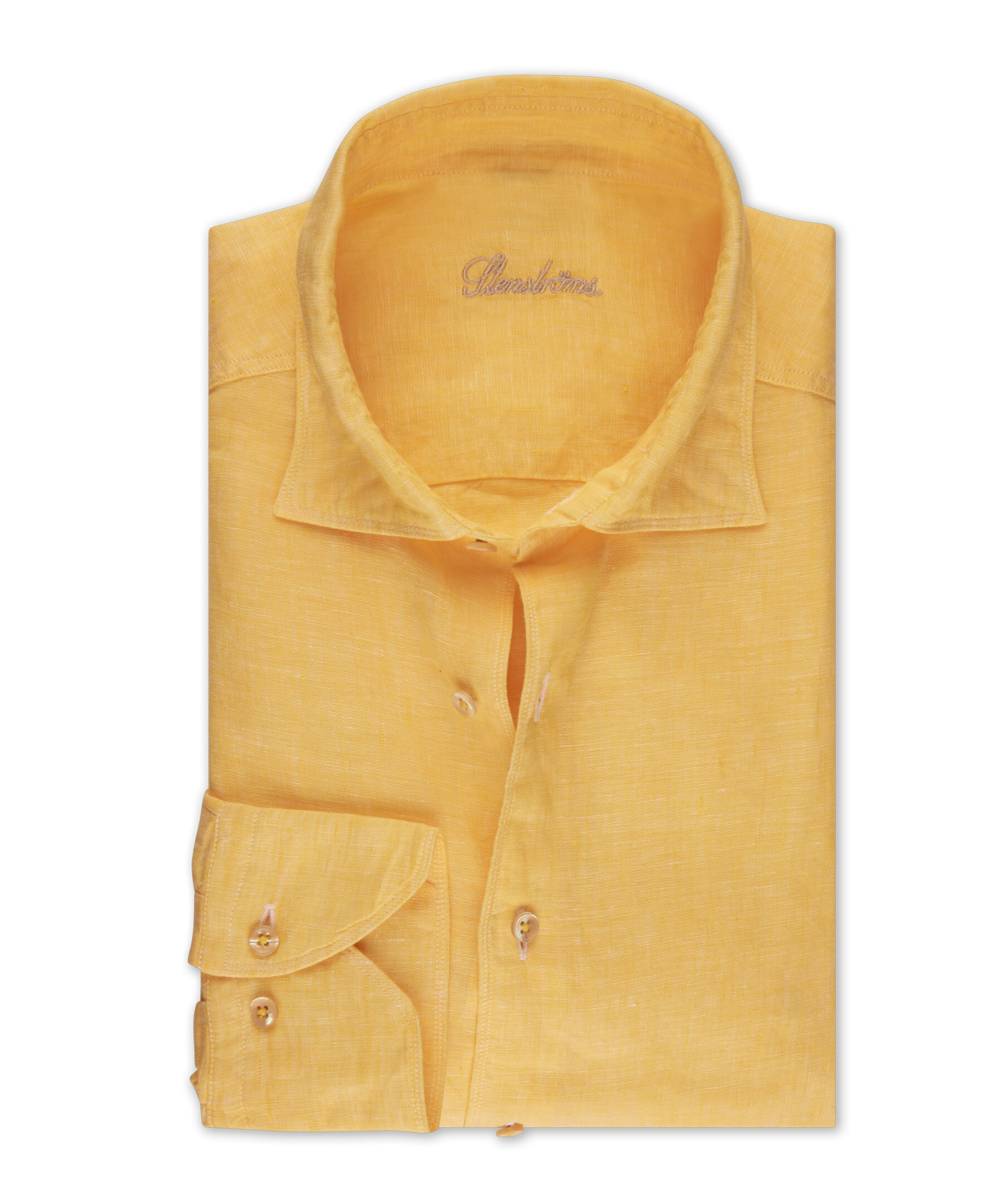 Denna Fitted Body-skjorta är tillverkad av linne och pärlemorknappar, enkla manschetter och en cut away krage.