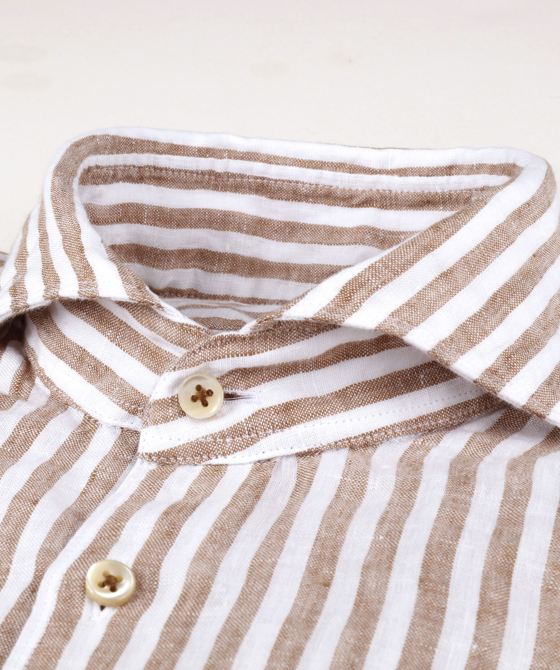 En randig linneskjorta är ett silsäkert val som passar bra under varma somamrdagar. Linnet har en hög andningsförmåga och en karaktärisktisk textur som ger en avslappnad men genpmtänkt stil. Utmärkt till lata dagar i solen. Detaljerad med pärlemorknappar och enkla manschetter. Bär den något uppknäppt, med uppvikta ärmar till ett par ljusa shorts, jeans eller badshorts.