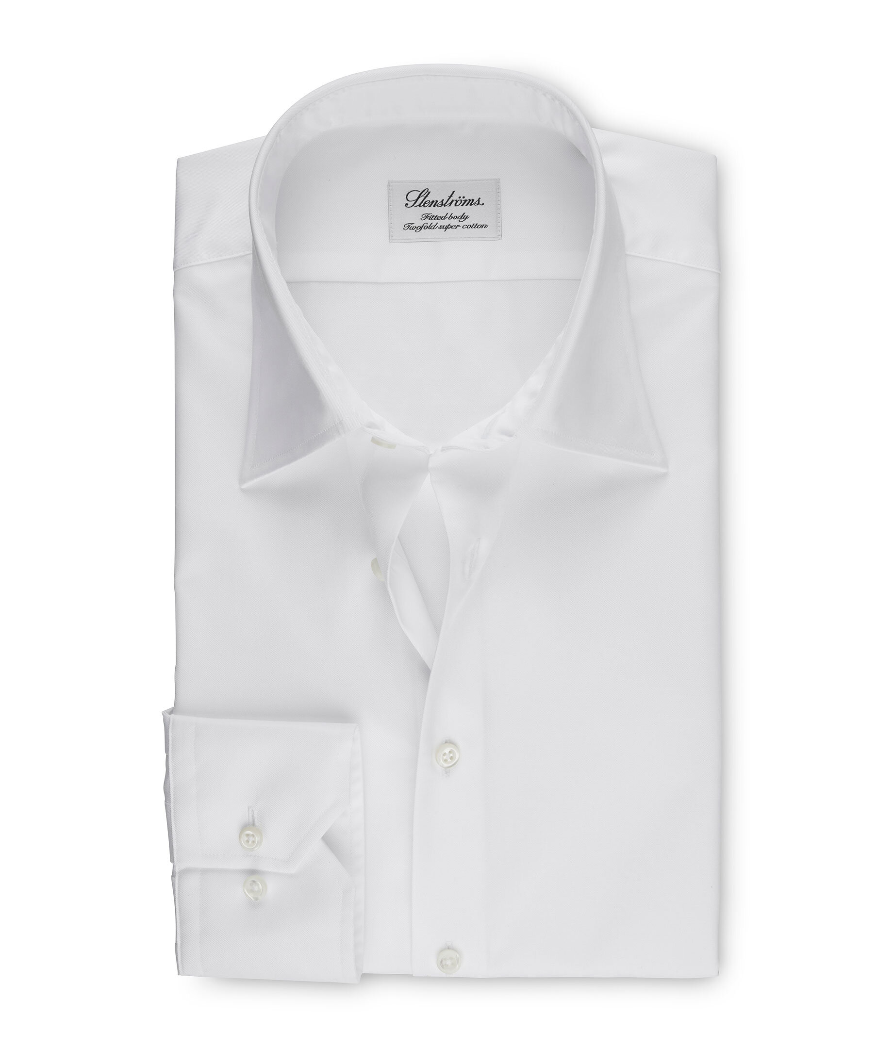 En vit skjorta kompletterar din garderob, och passar till allt. Denna skjorta från Stenströms är gjord av twofold bomull med en något skräddarsydd midja, har denna fitted body skjortan pärlemoknappar, enkla manschetter och en kent krage. Matcha den med ett par kostymbyxor eller snygga jeans.