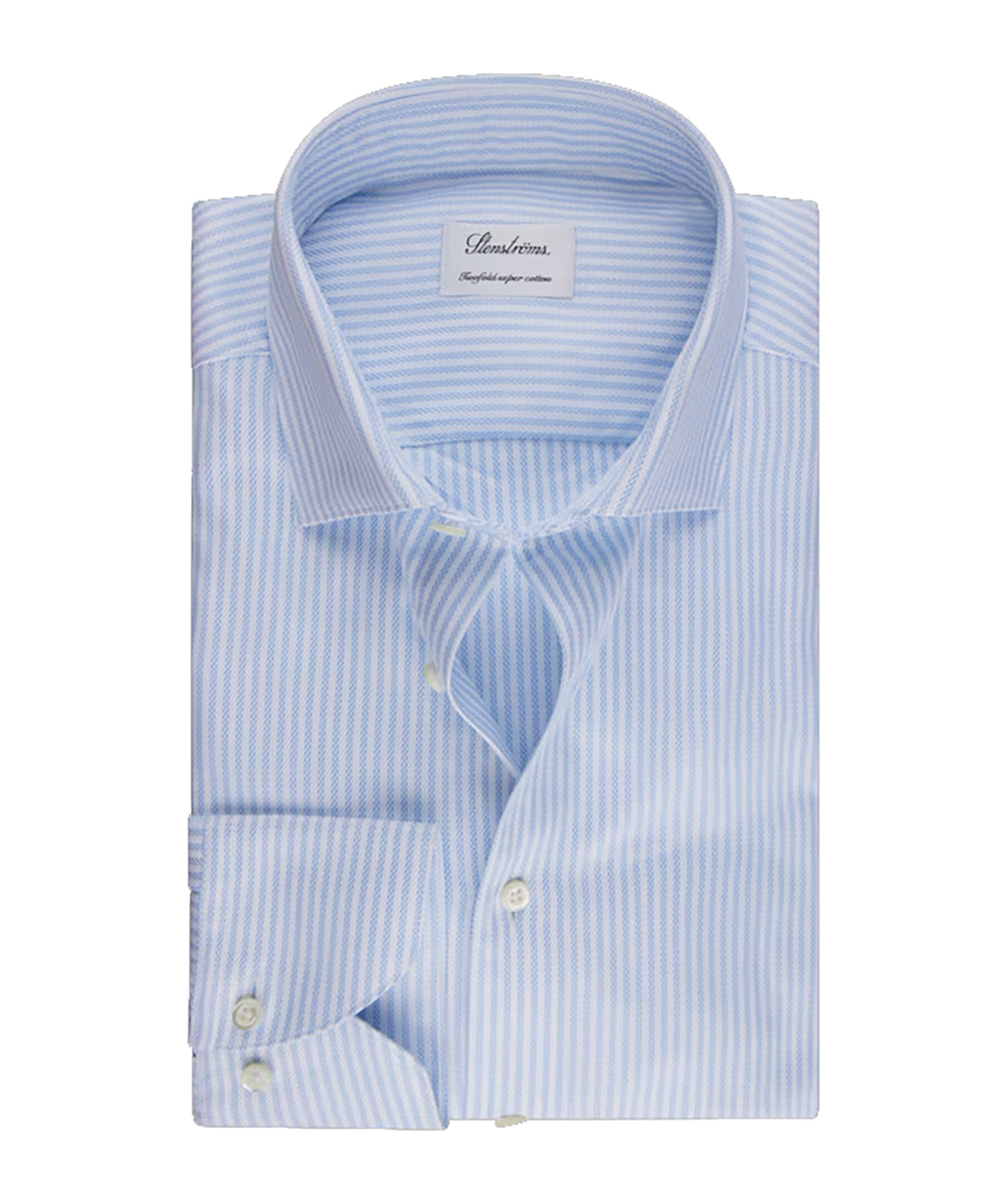 Ljusblå randig twillskjorta från Stenströms i fittedbody passform. Skjortan har pärlemorknappar, enkla manschetter och cut-away krage. Denna twillskjorta är tillverkad av twofold bomull.