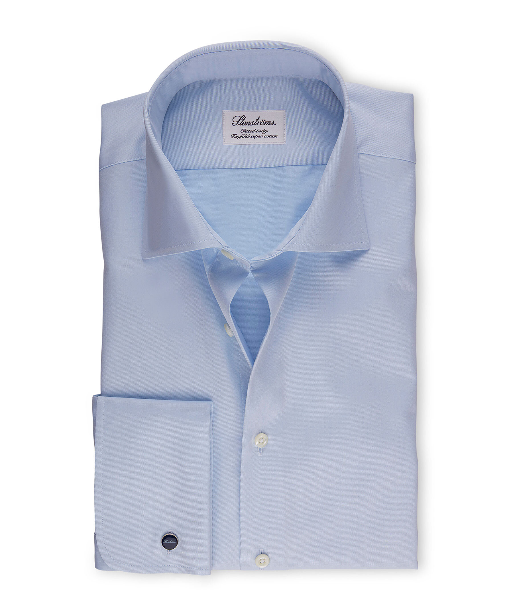 Ett nyckelplagg i allas garderob – en snygg sofistikerad vit skjorta. Denna skjorta från Stenströms är gjord av twofold bomull i en modell med något skräddarsydd midja. Det är två små veck i ryggen för att göra den bekvämare att röra sig i. Detaljerad med dubbla manschetter och en cut away krage. Den funkar lika bra på jobbet som till festen. Matcha den till ett par snygga jeans för en avslappnad look, eller till ett par kostymbyxor. Denna har extra långa ärmar och bål.