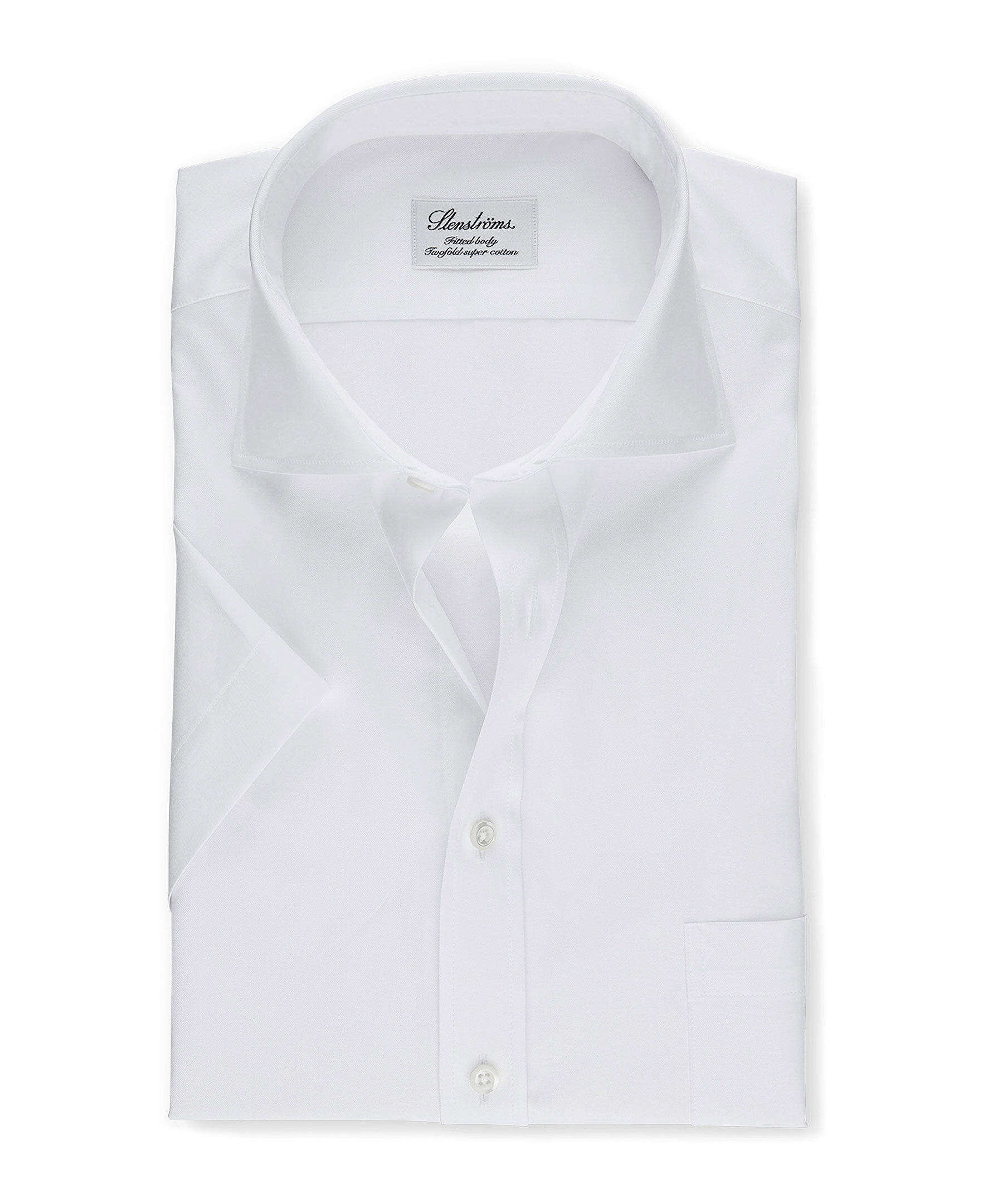 En krispig vit skjorta går aldrig ur tiden! Denna kortärmade skjorta från Stenströms har en fitted body bål gjord av twofold bomull och en något skräddarsydd midja. Detaljerad med enkla manschetter, cut away krage och pärlemoknappar. Passar både till kostymbyxor och till ett par snygga jeans.