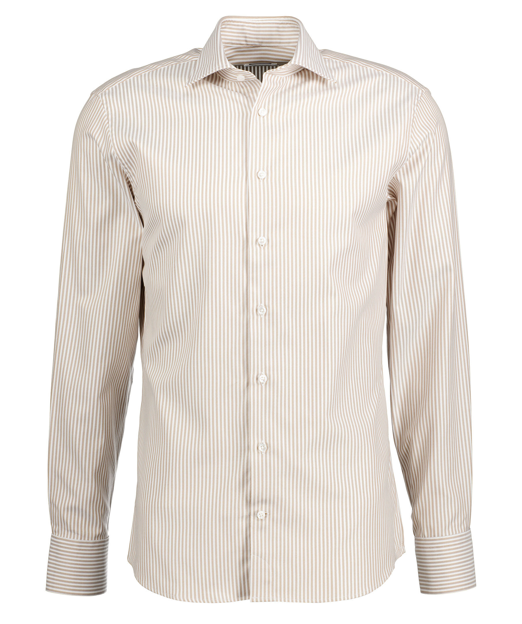 Vit, beige fitted Body skjorta i bomull från Stenströms. Skjortan är detaljerad med ett rutigt mönster, enkla manschetter, pärlemorknappar och en cut away krage.
