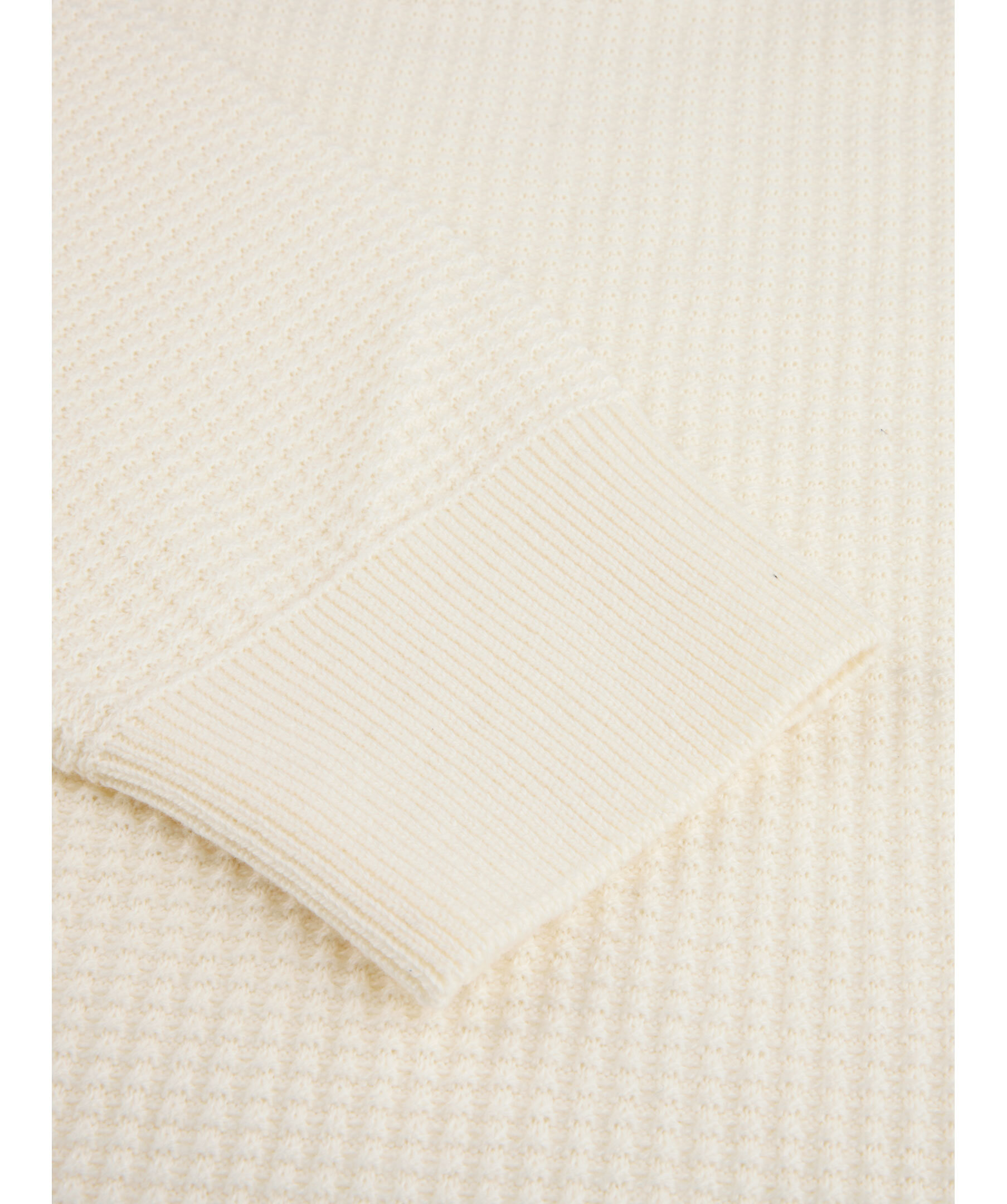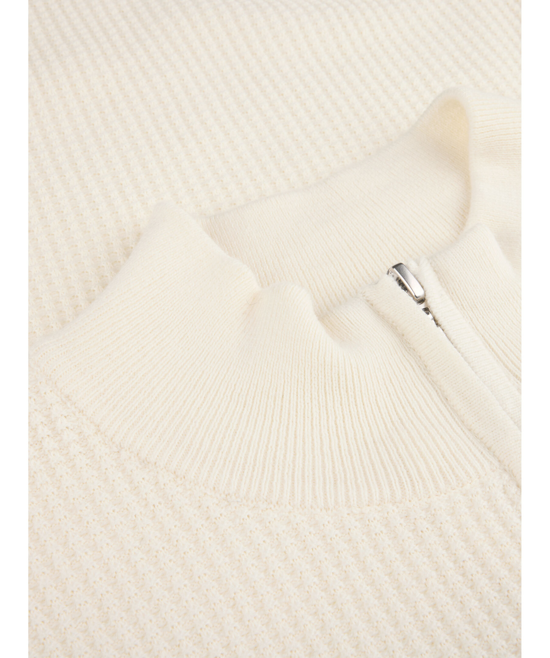 Denna half zip med struktur är tillverkad av bomull och har ribbstickad detaljer vid krage, ärm- och plaggslut.
