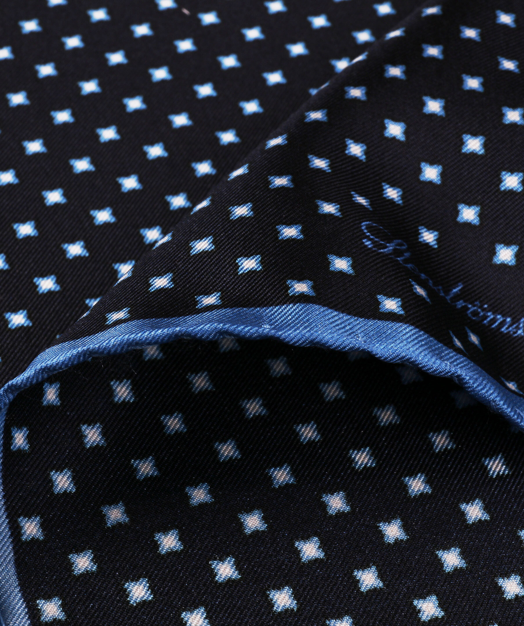 Den här näsduken från Stenströms har ett grafiskt blommönster med små former som ger en diskret detalj och adderar mönster i din stil. Den är tillverkad i Italien i lyxigt siden som matchar fint med en mörk kostym, men även med klassiska färger som brunt eller grått. Matcha med en marinblå kostym eller en udda blazer för en avslappnad men elegant look.