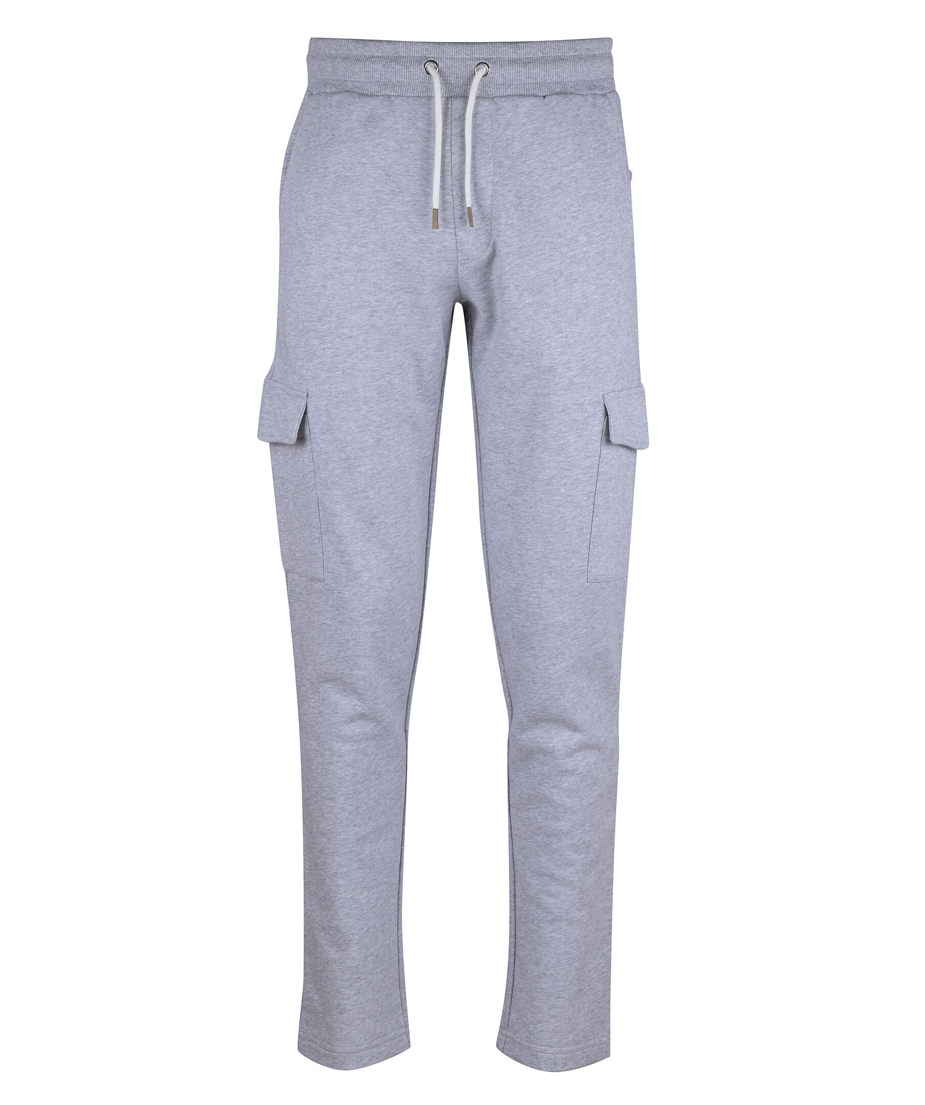 Grå cargobyxa med dragsko i midjan som möjliggör en justerbar passform. Byxan är detaljerad med två sidfickor samt två cargofickor.