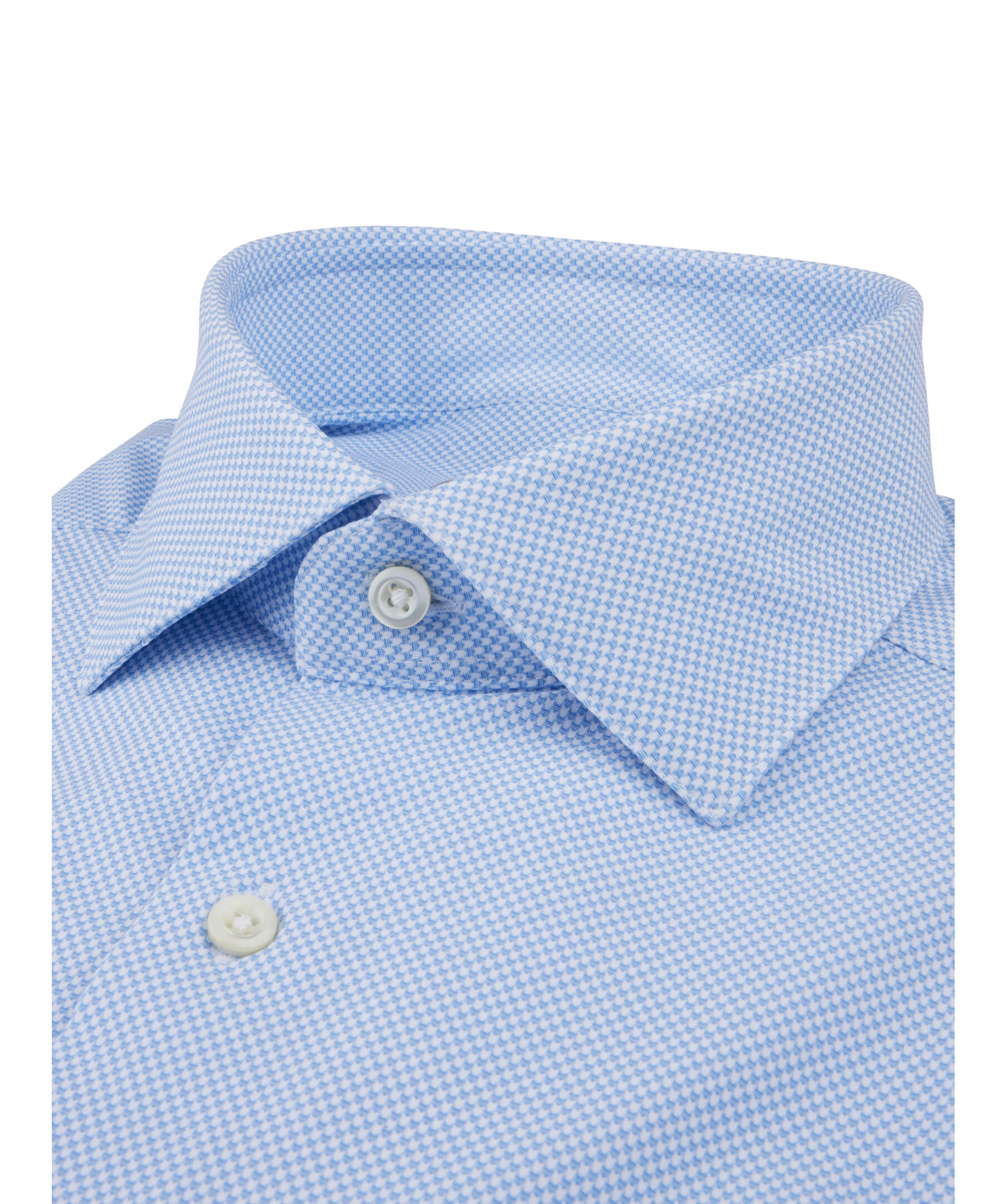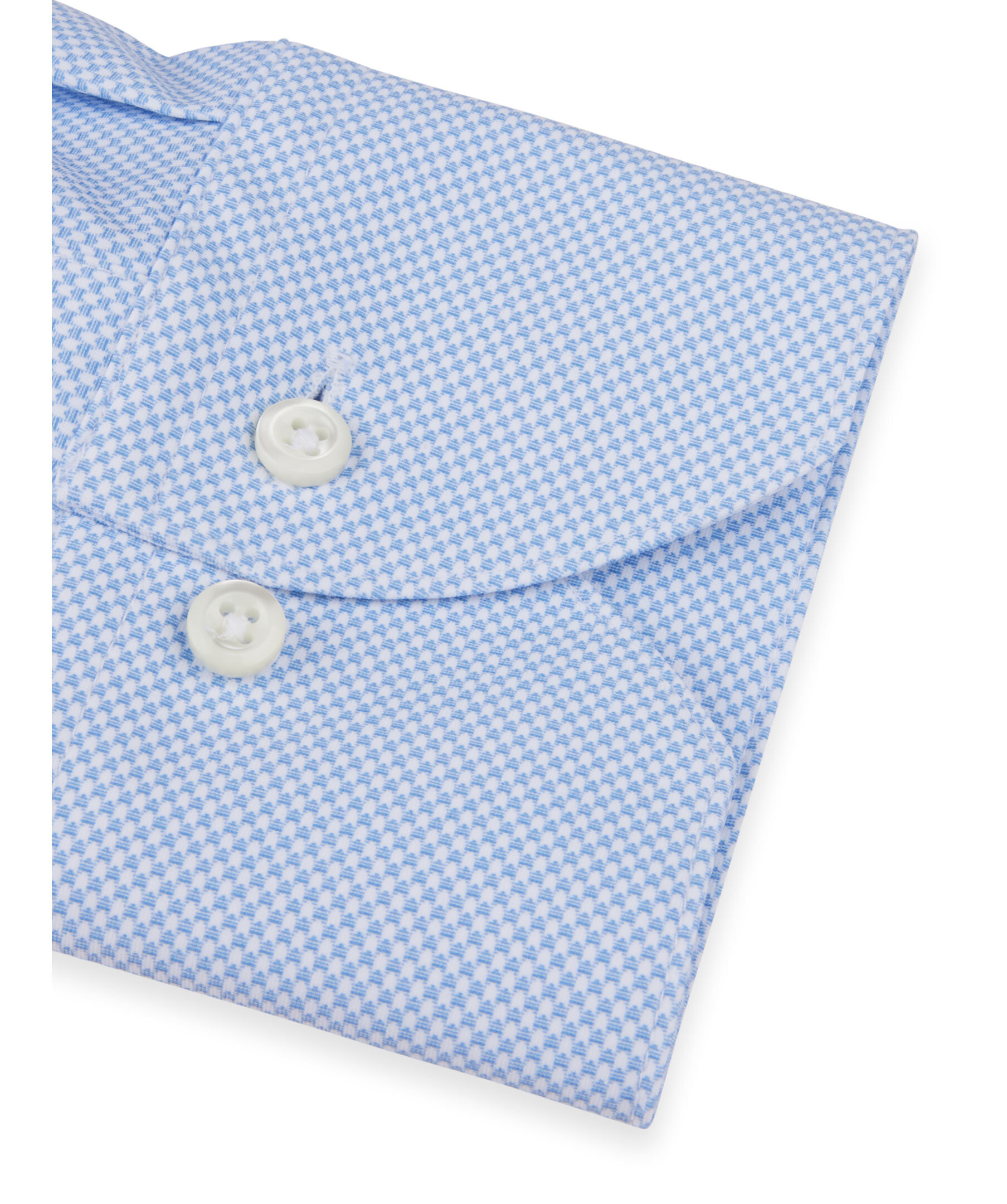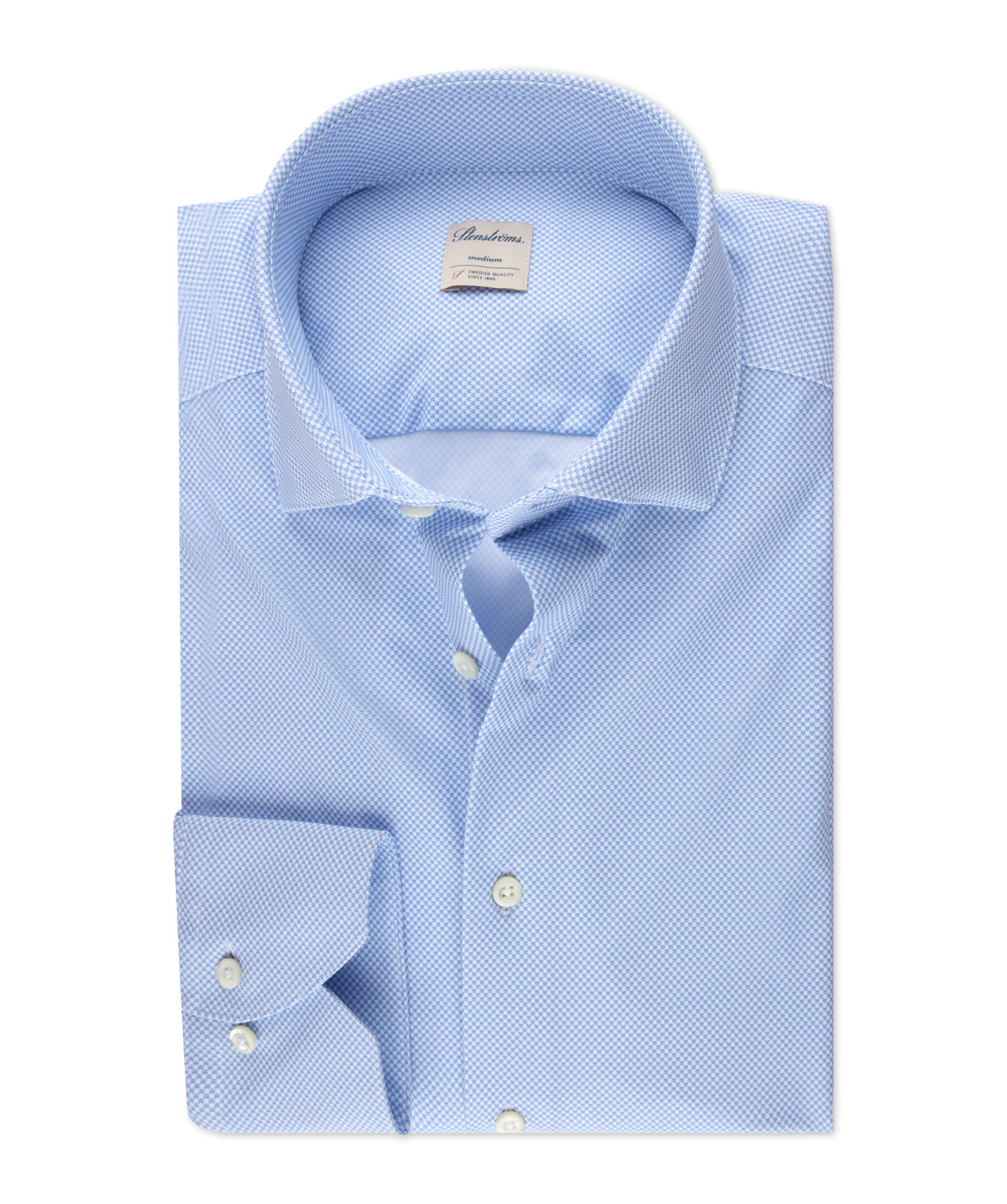 Ljusblå, mönstrad jersey skjorta från Stenströms. Skjortan har pärlemorknappar, enkla manschetter och en cut away krage. Tillverkad av polyamid och elastan.