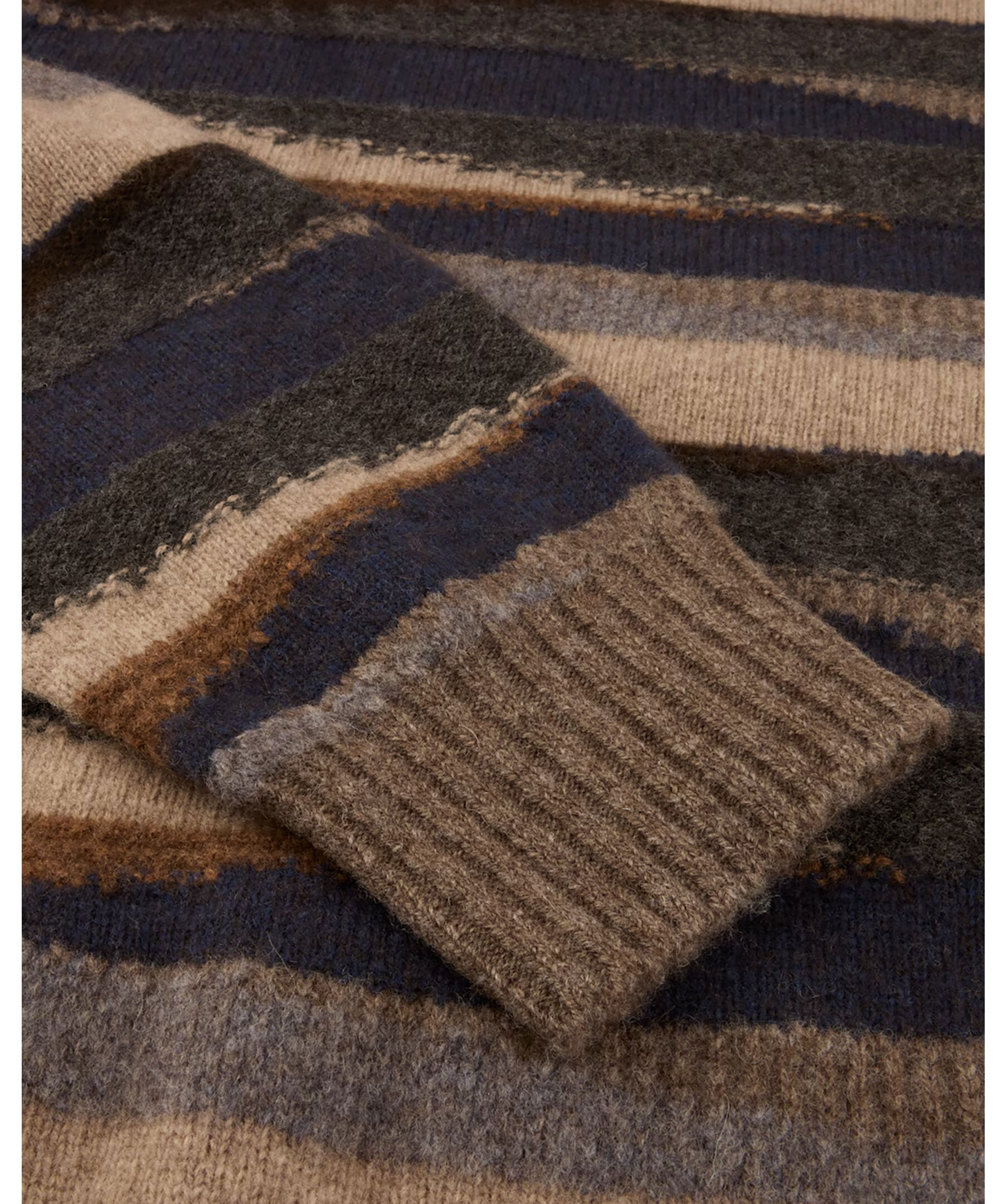 Marinblå mönstrad rundhalsad jak/merinoulltröja från Stenströms. Tröjan kombinerar jakull och merinoull, har rund hals och mönsterstickning som ger liv åt den djupa marinblå tonen. Ribbstickade detaljer vid hals, ärmslut och nederkant. Ett värmande och stilfullt plagg som passar både under jacka och för sig självt i höst och vinter.
