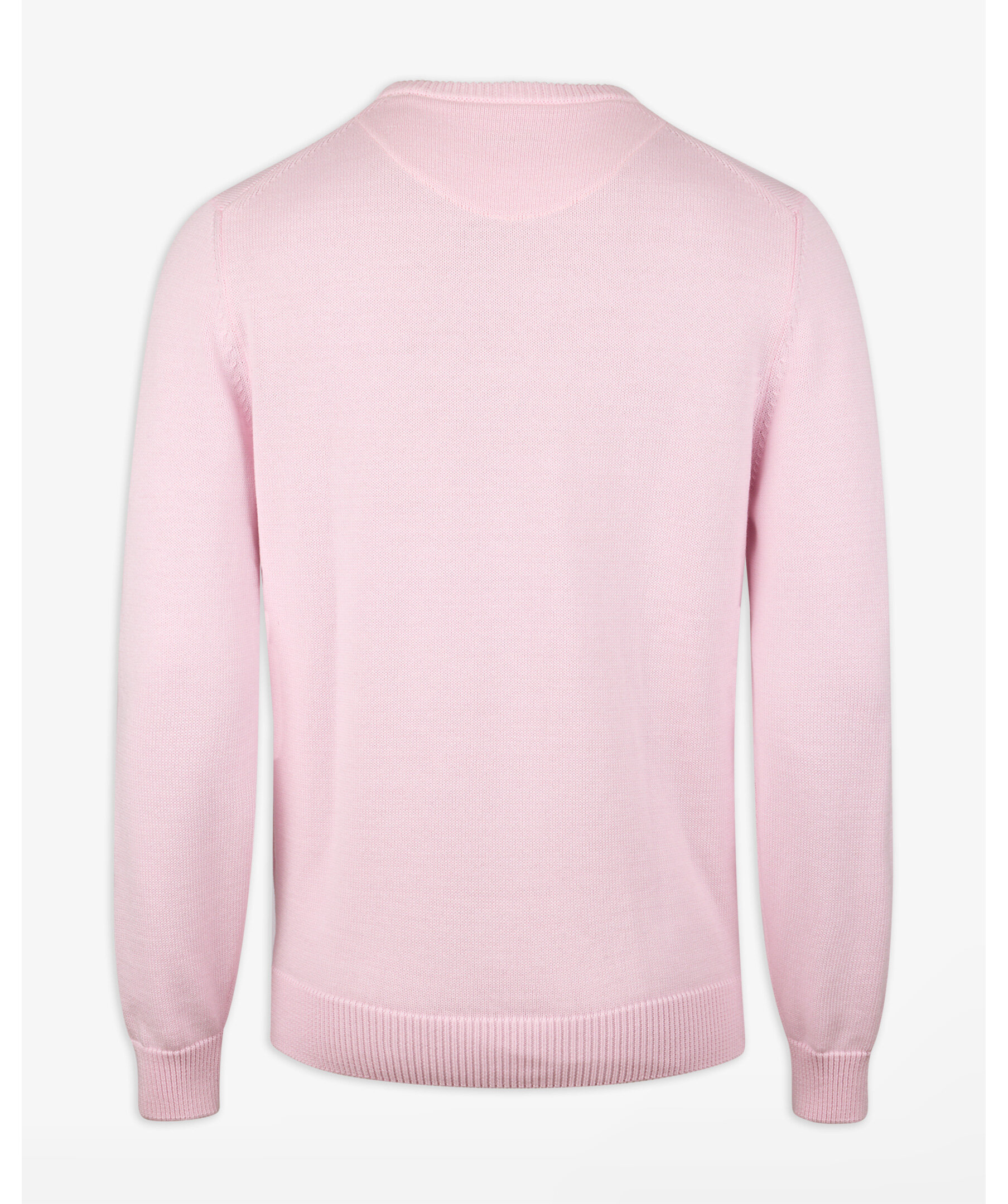 Ljusrosa rundhalsad tröja från Stenströms tillverkad av bomull och har ribbstickade detaljer vid krage, ärm- och plaggslut.
