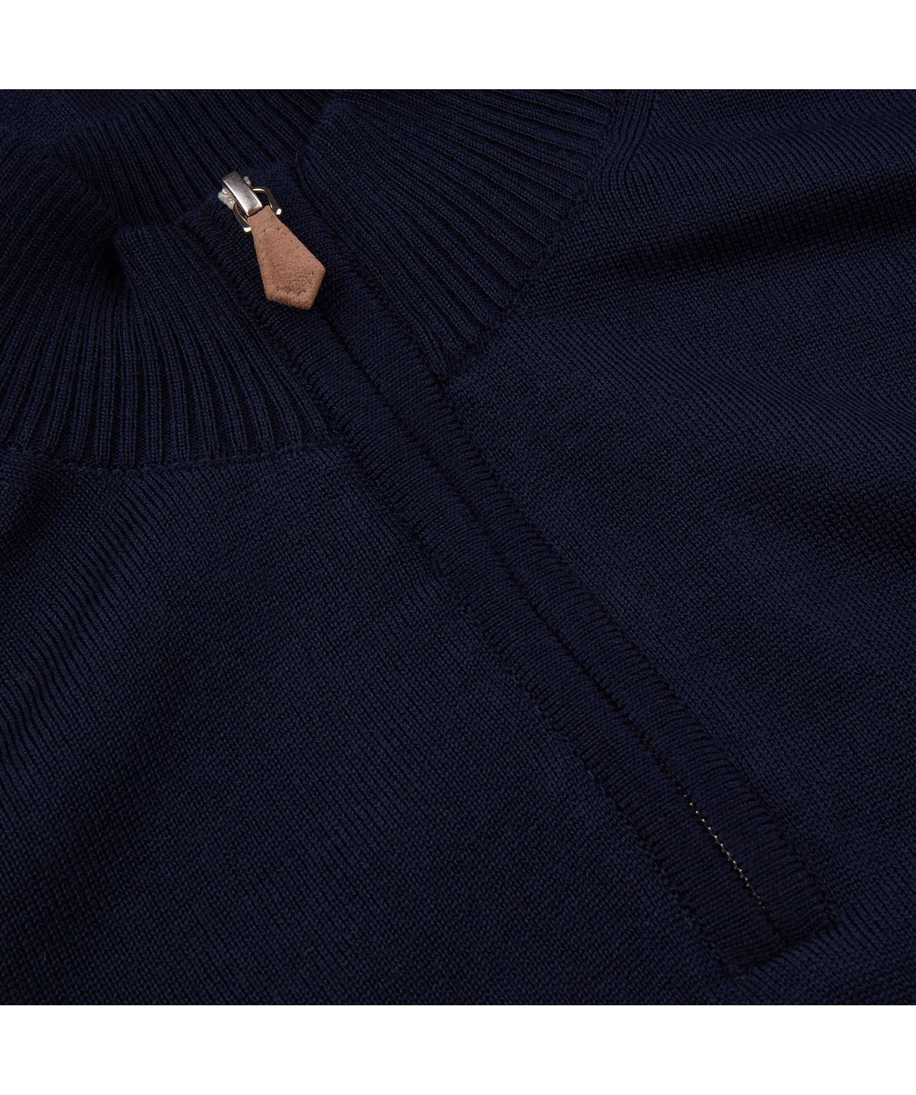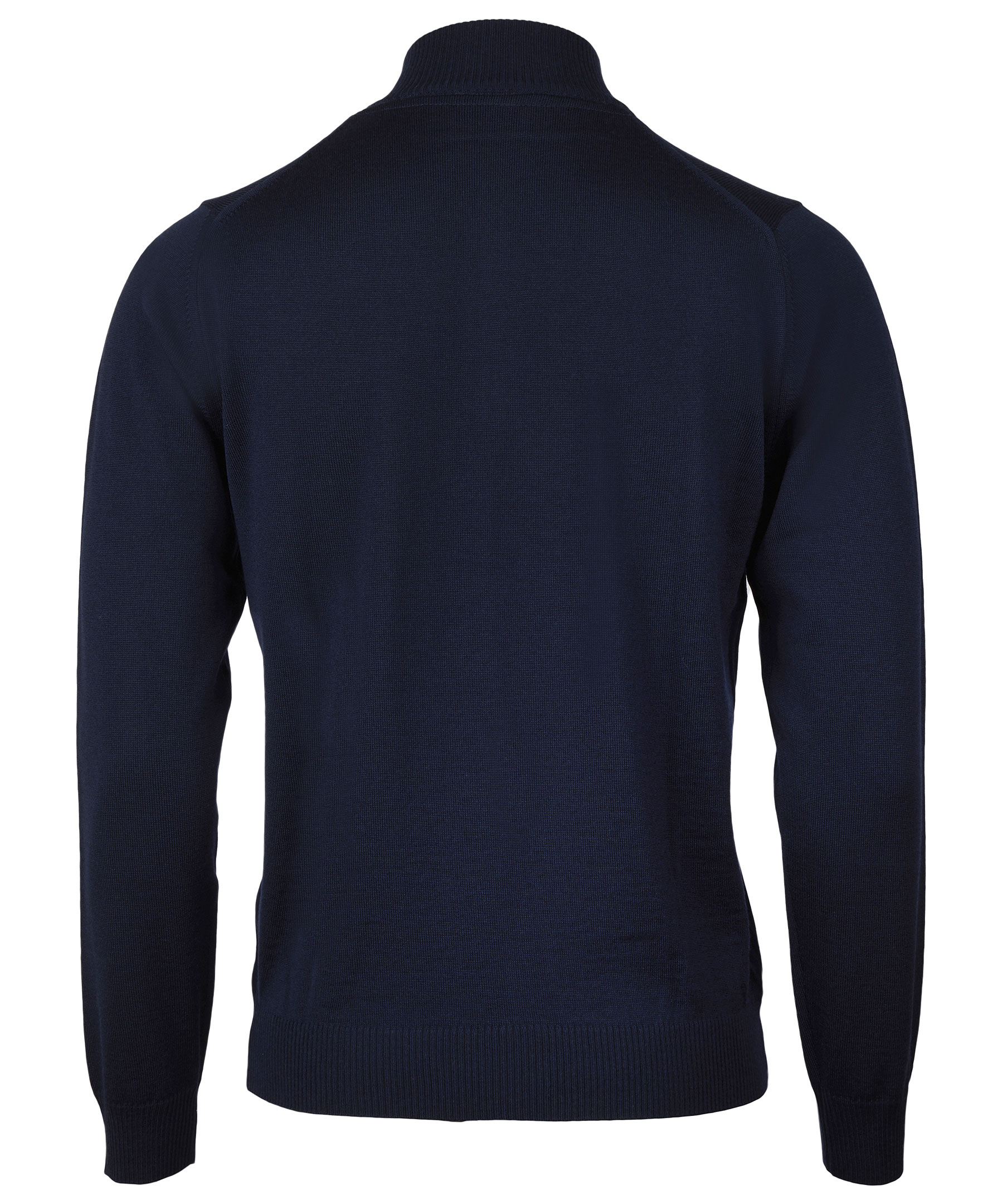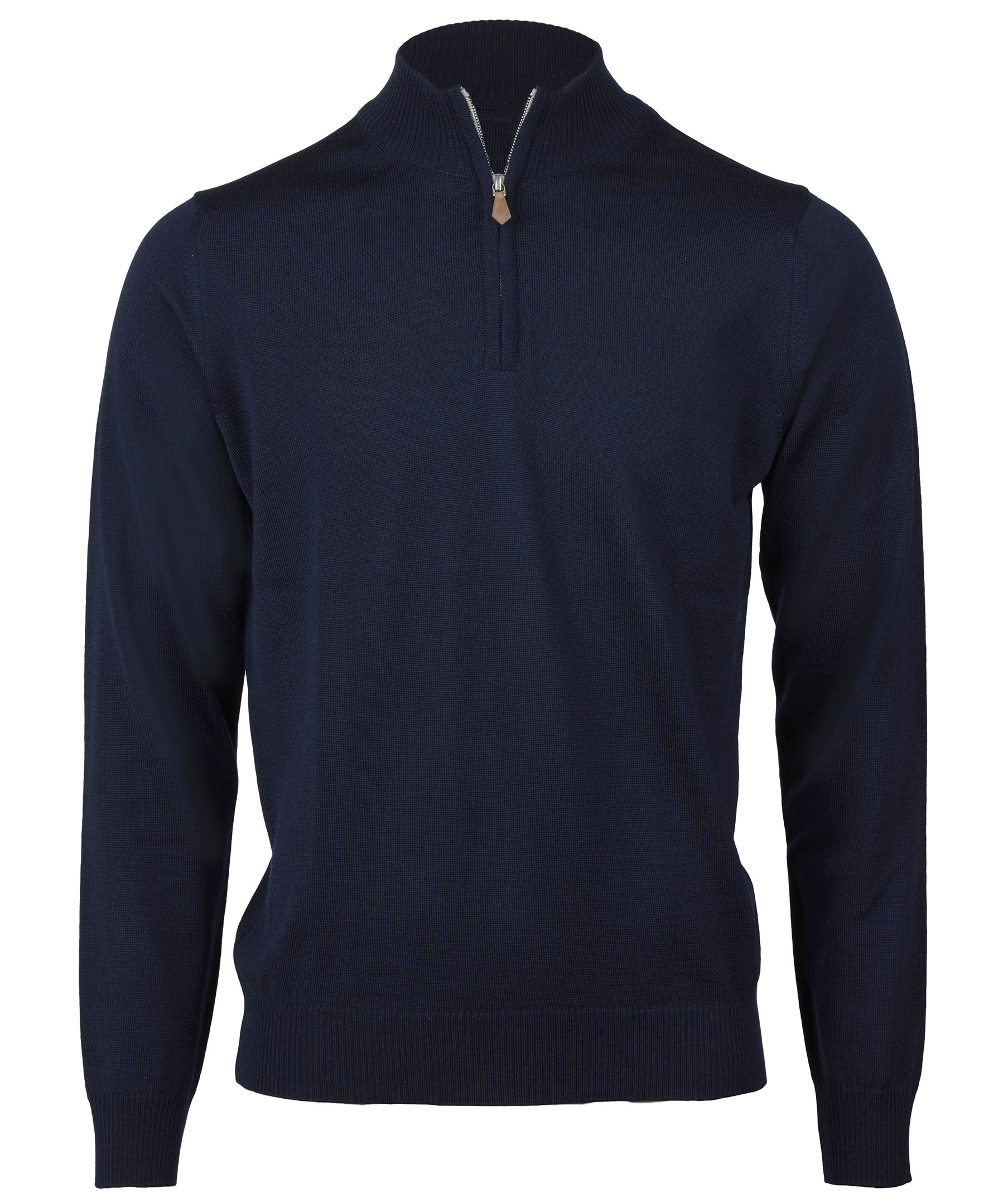 Denna half zip tröja är tillverkad av merinoull och har ribbstickade detaljer vid krage, ärm- och plaggslut.