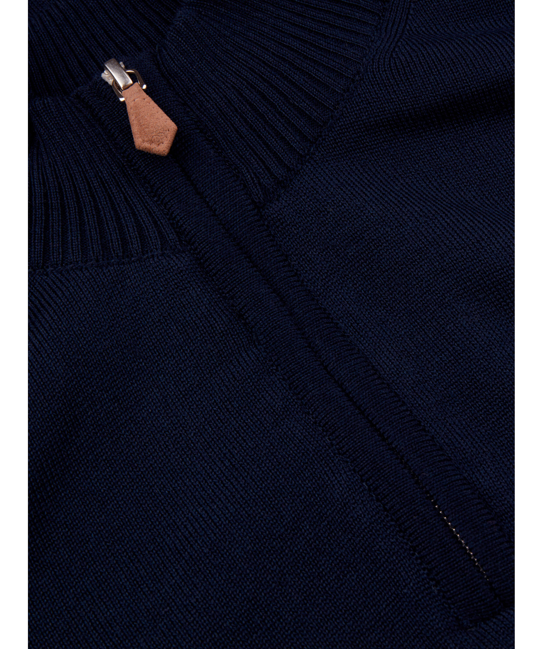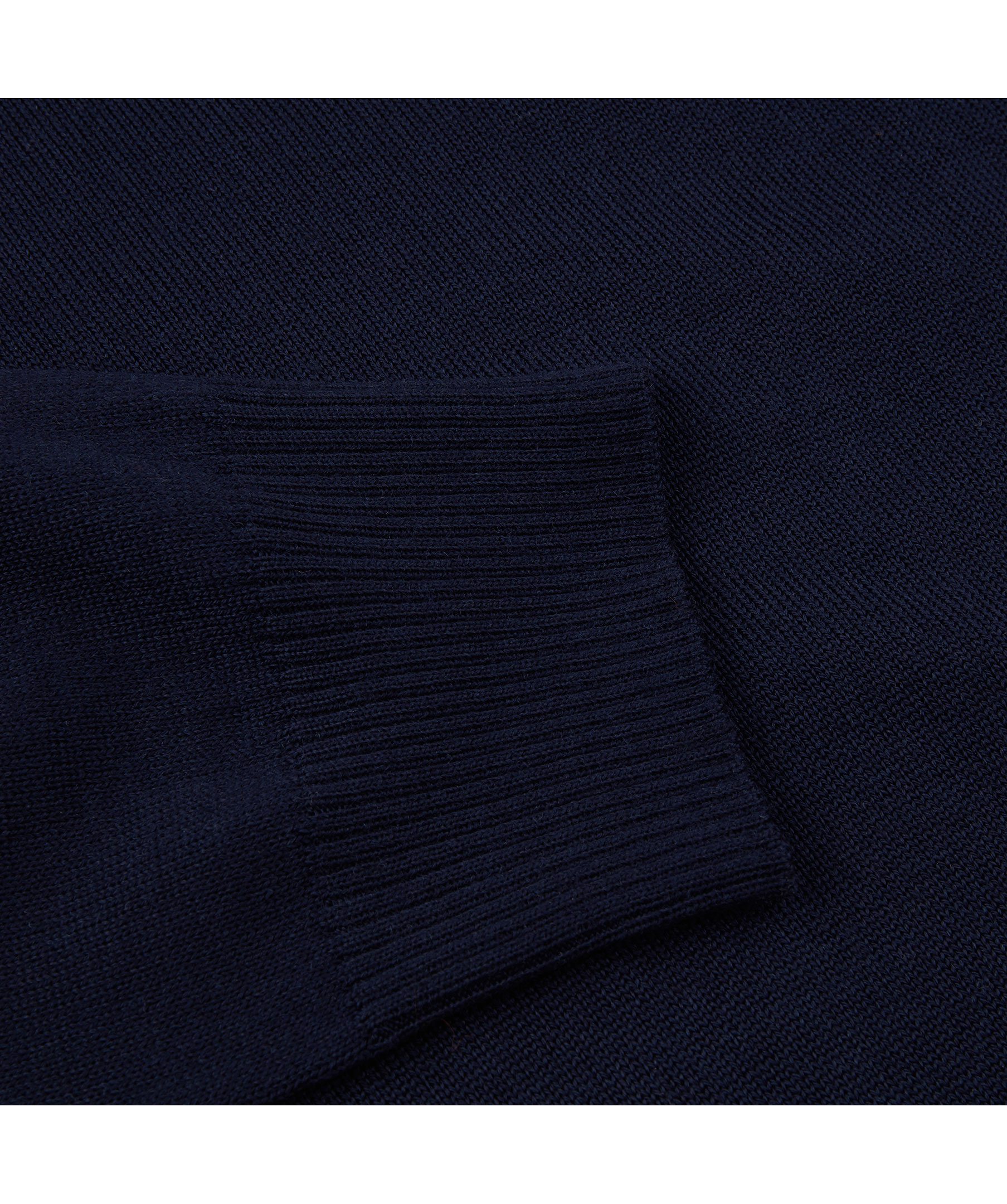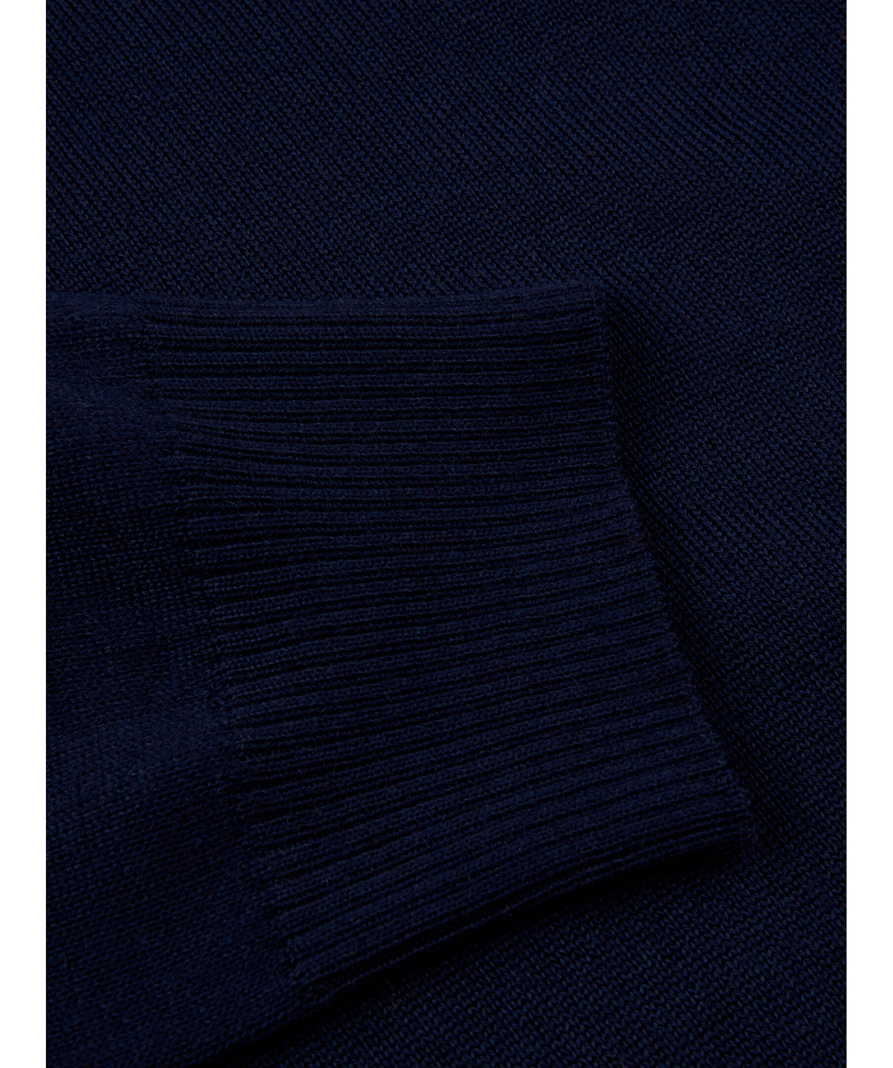 Denna half zip tröja är tillverkad av merinoull och har ribbstickade detaljer vid krage, ärm- och plaggslut.