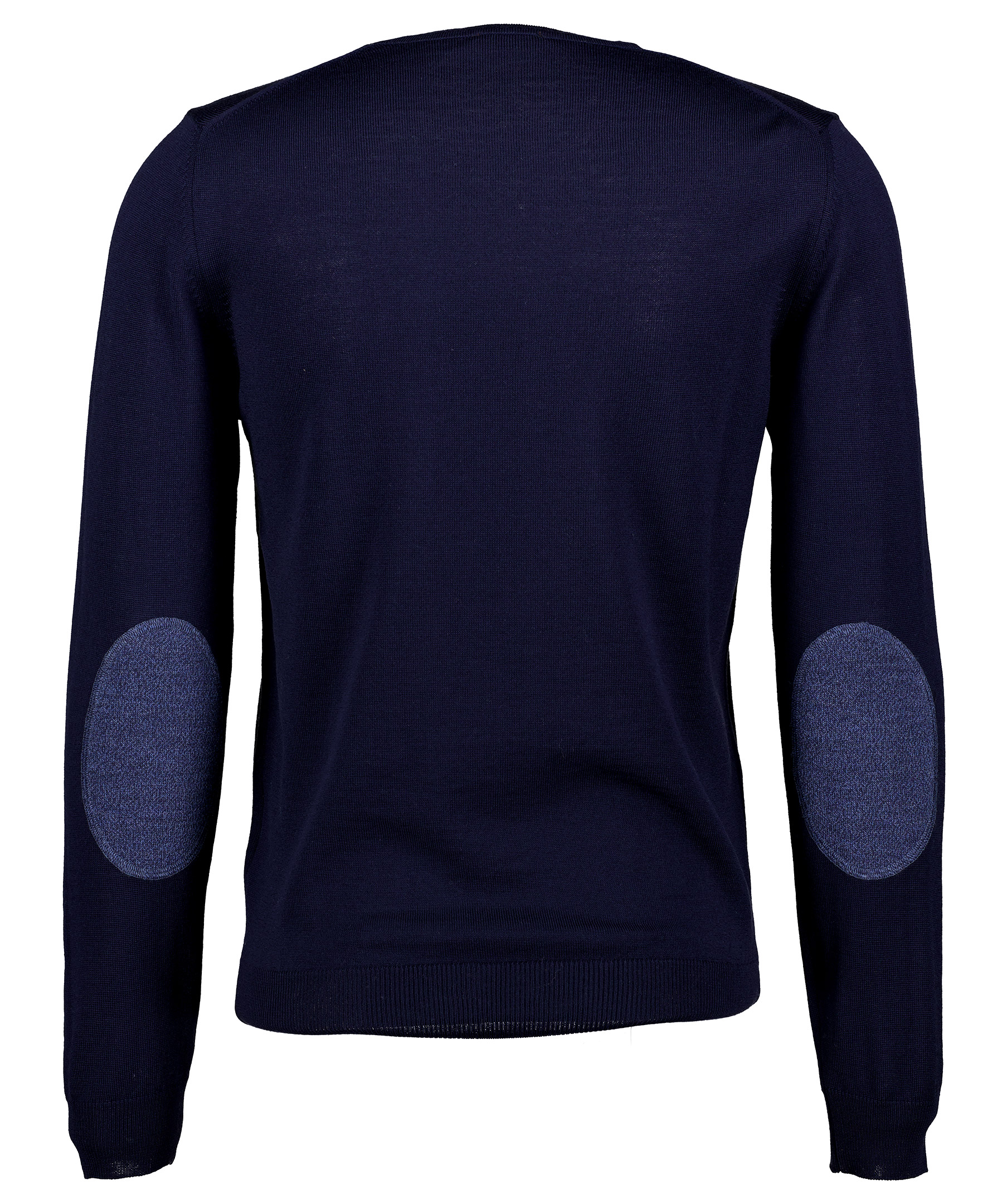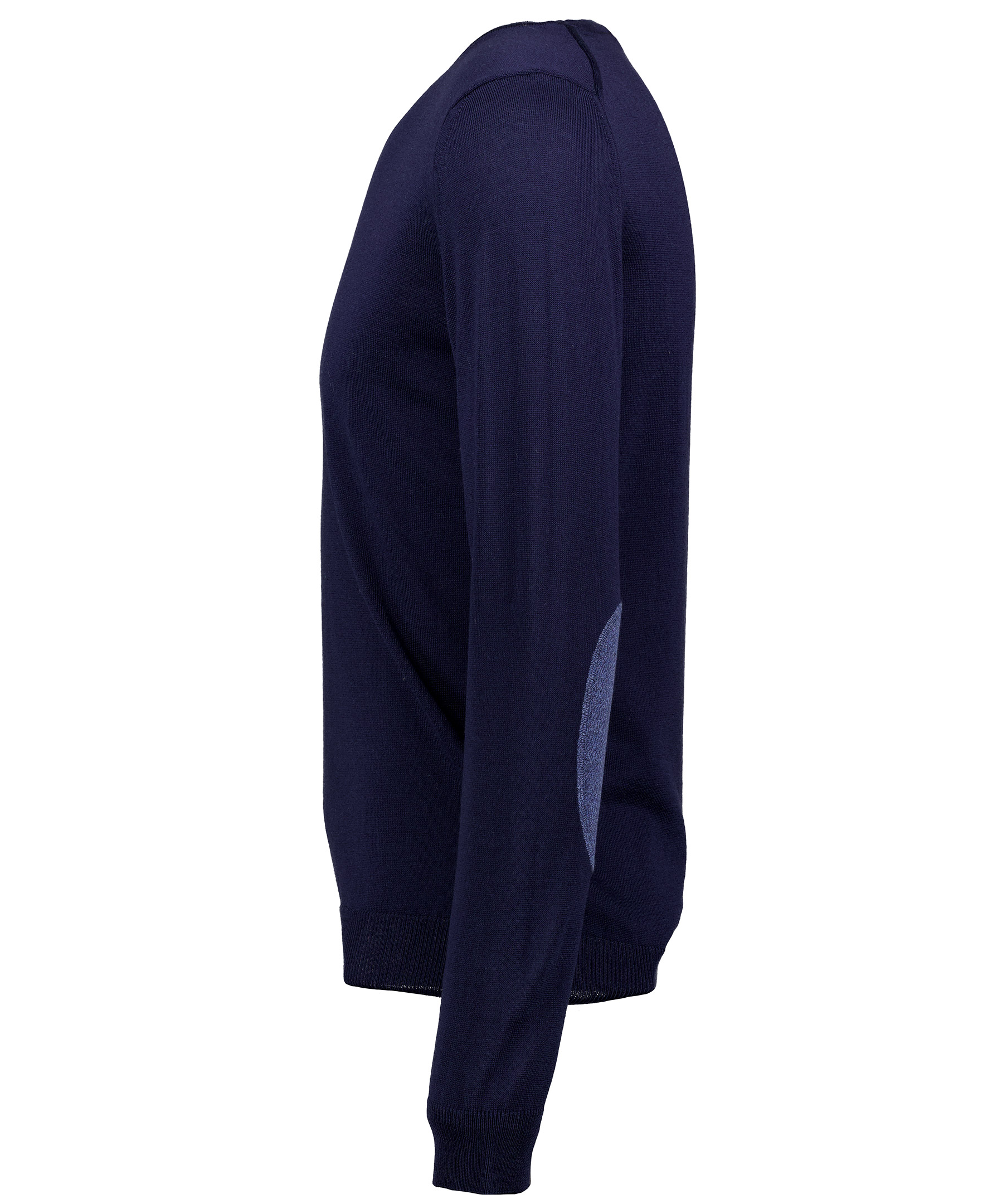 Marinblå finstickad tröja från Stenströms. Ribbstickade detaljer, armbågspatch i kontrastfärg, rundad hals. Tillverkad i 100% merinoull. Begränsat antal, vi reserverar oss för eventuell slutförsäljning. Går ej att kombinera med övriga erbjudanden och rabatter.