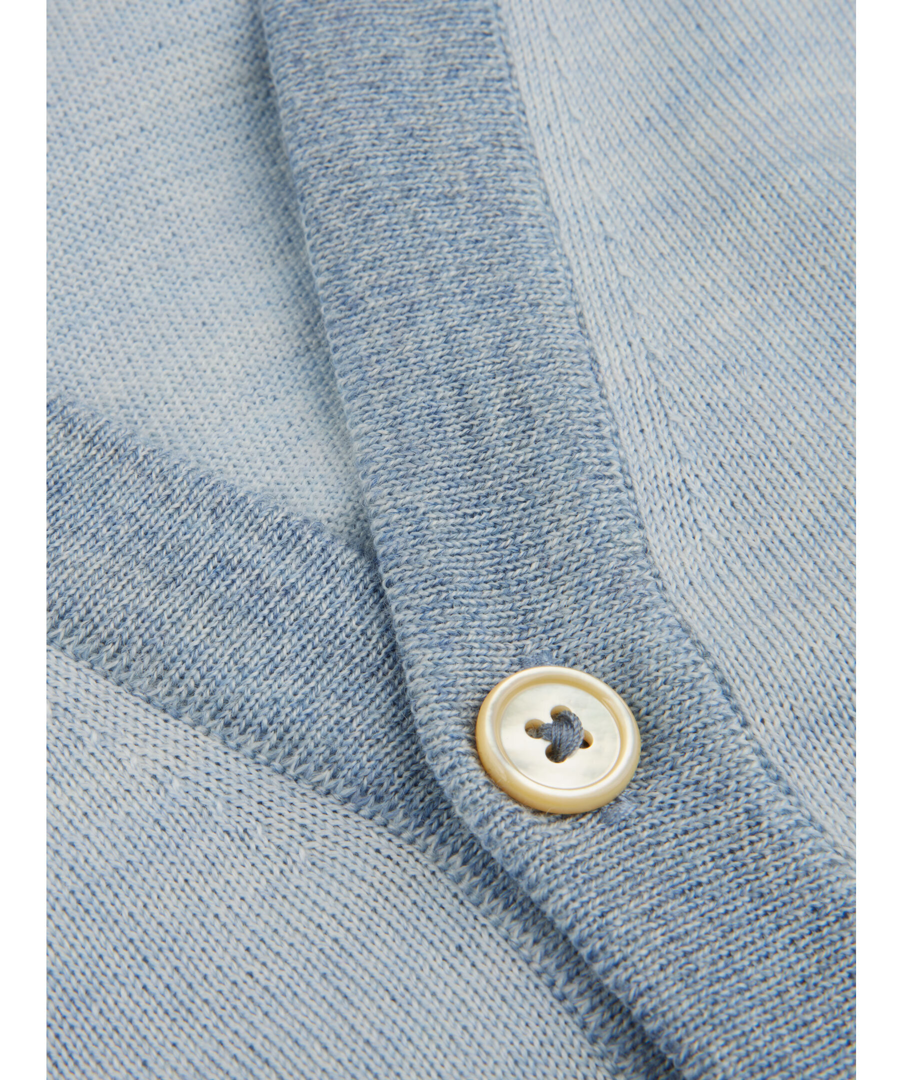 Denna kofta är tillverkad av merinoull och är detaljerad med en moulinékontrast. Koftan har pärlemorknappar och ribbstickade detaljer vid ärm, krage och plaggslut.