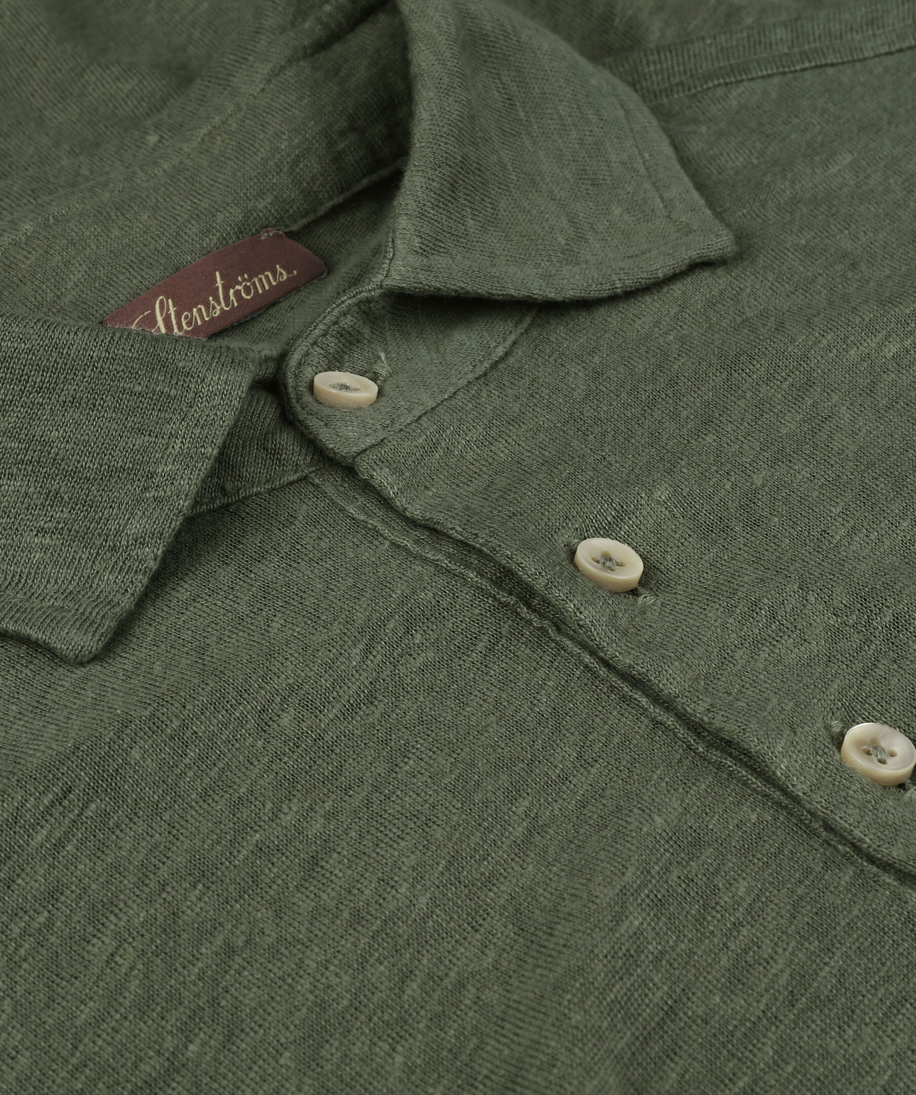 En klassisk kortärmad piké är ett nyckelplagg i var mans garderob. Den här tröjan är gjord i 100% linne jersey och har en lätt och andningsbar känsla, perfekt för varma dagar. Den har en knäppning med tre knappar i beige pärlemor. Den här pikén är perfekt för helgens utflykter. Bär den till chinos i en basfärg som ljusbeige.