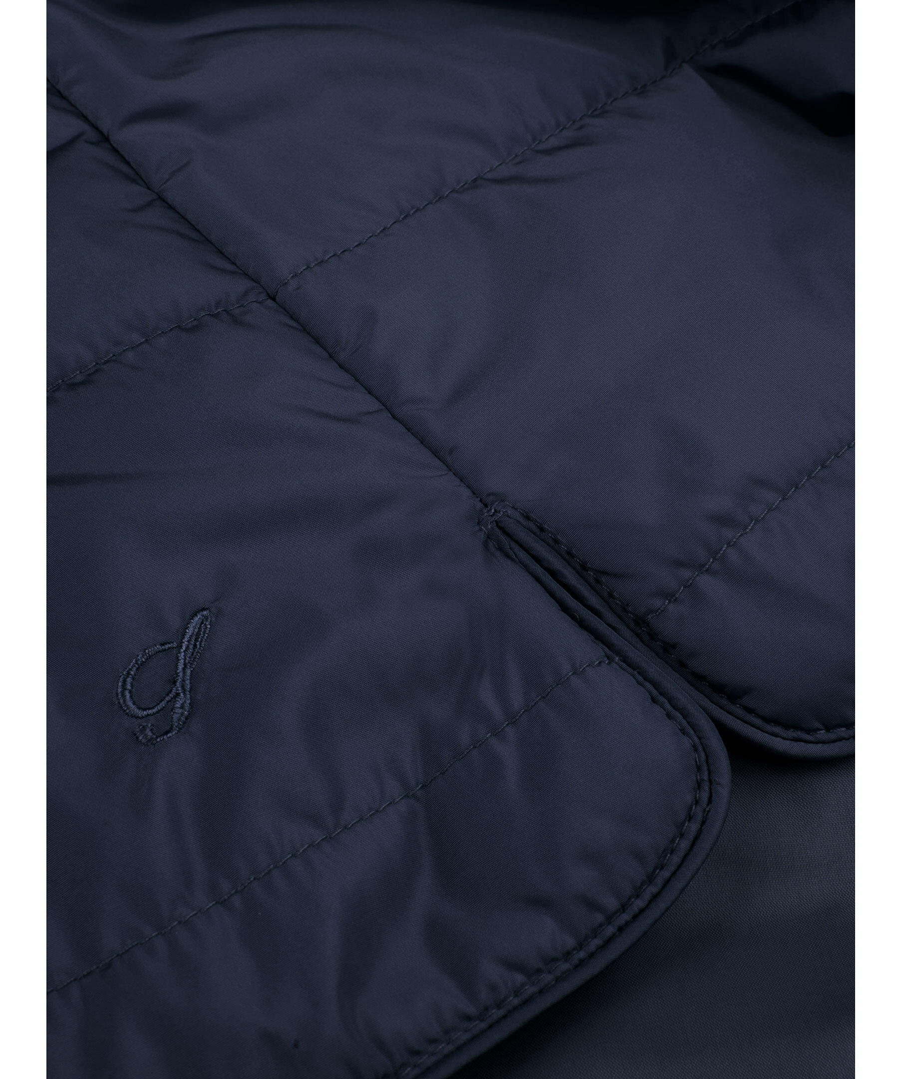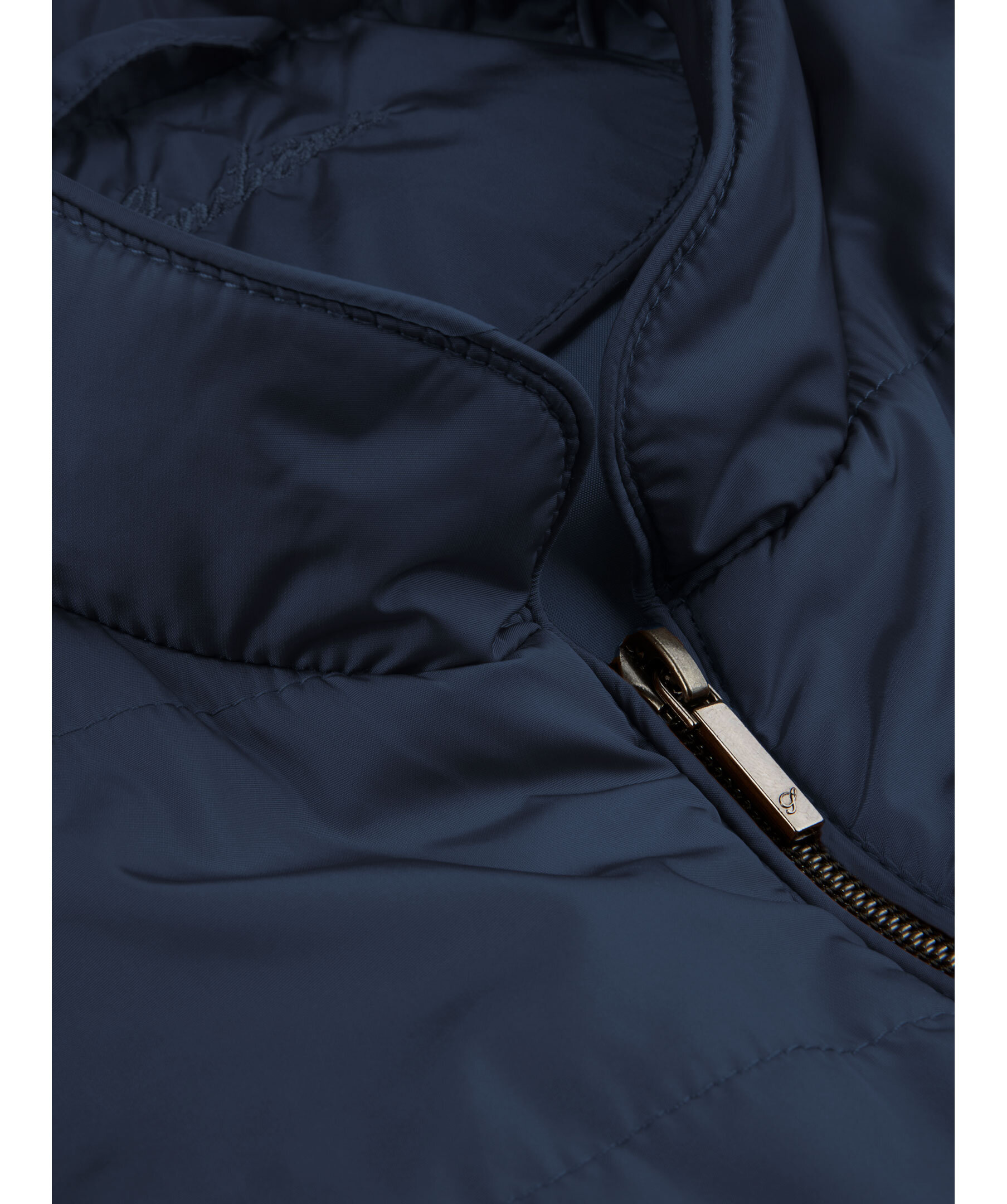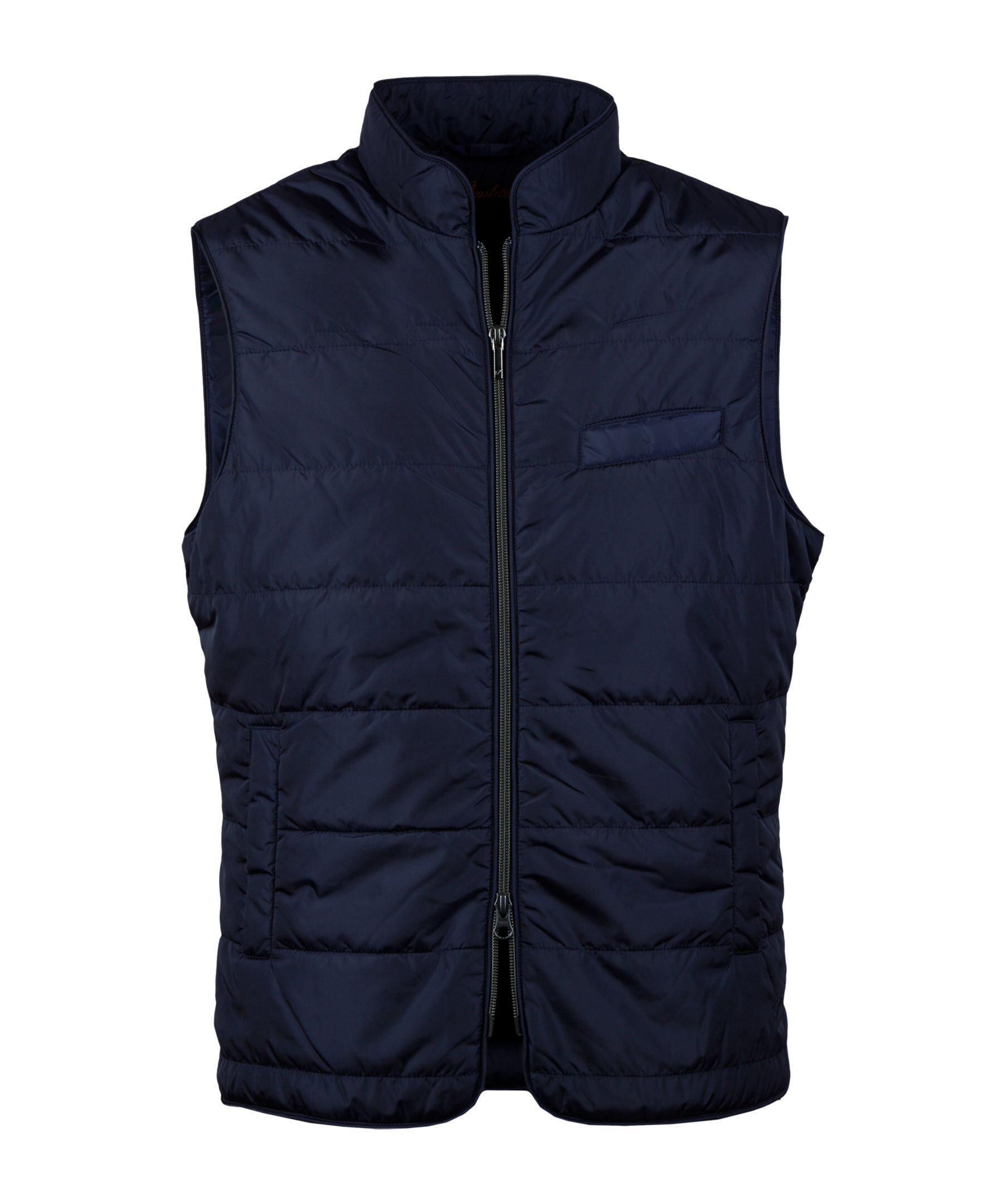 Denna quiltade väst är tillverkad av nylon och har en bröstficka och två sidfickor.