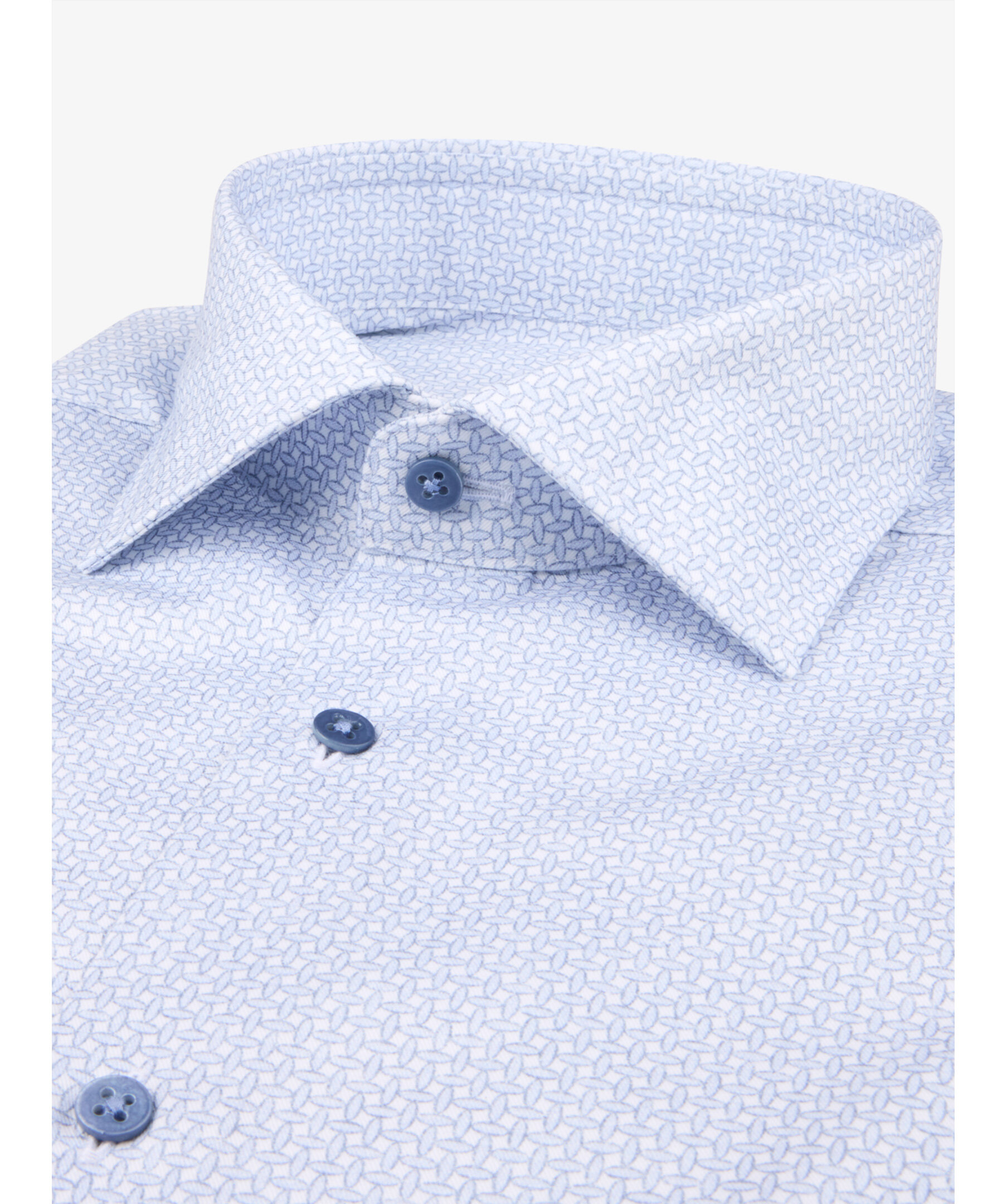 Ljusrosa twillskjorta tillverkad av twofold bomull och har ett mikromönster. Skjortan har pärlemorknappar, enkla manschetter och en cut away krage.