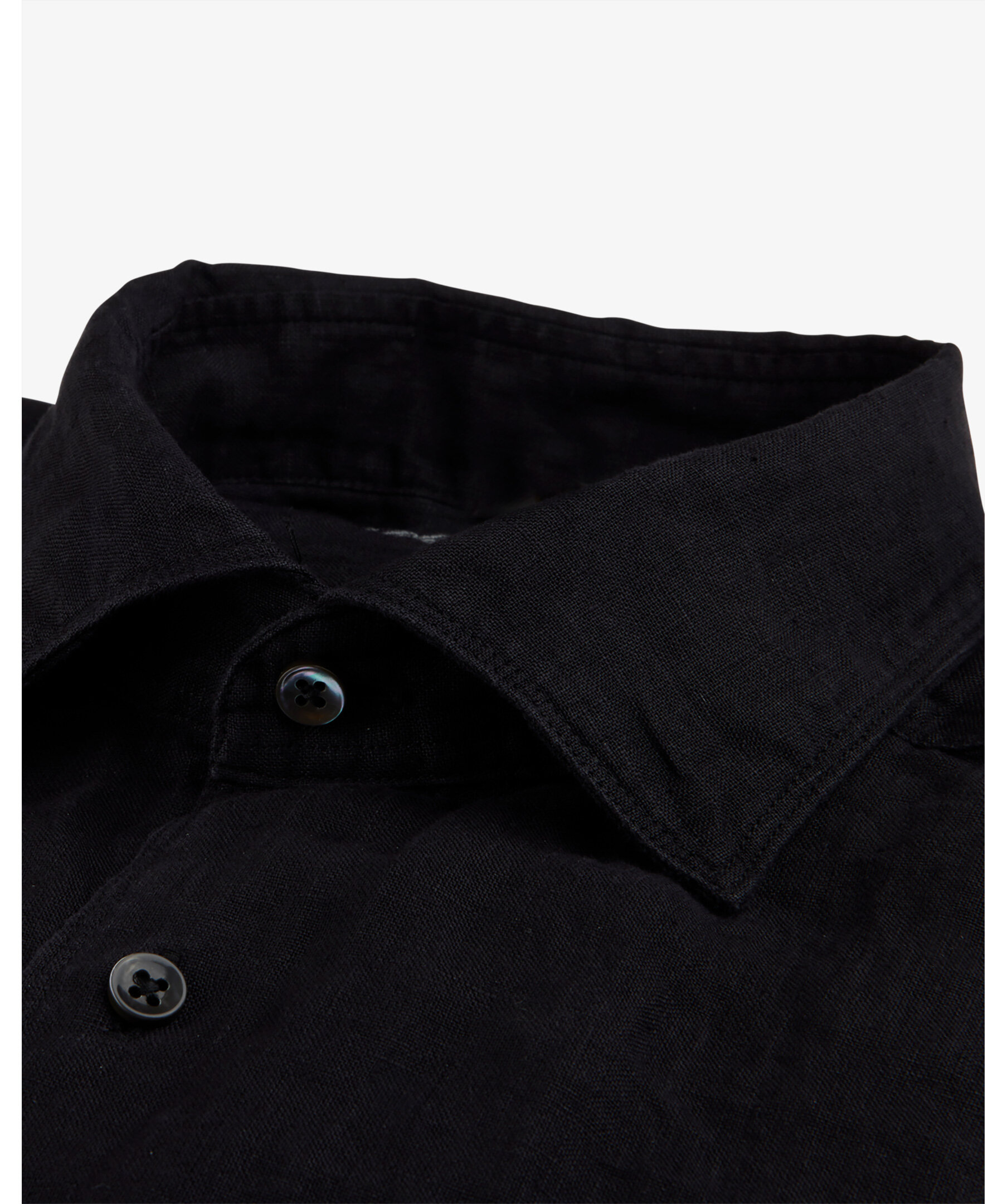 Svart linneskjorta från Stenströms. Skjortan har pärlemorknappar, enkla manschetter och en cut away krage.