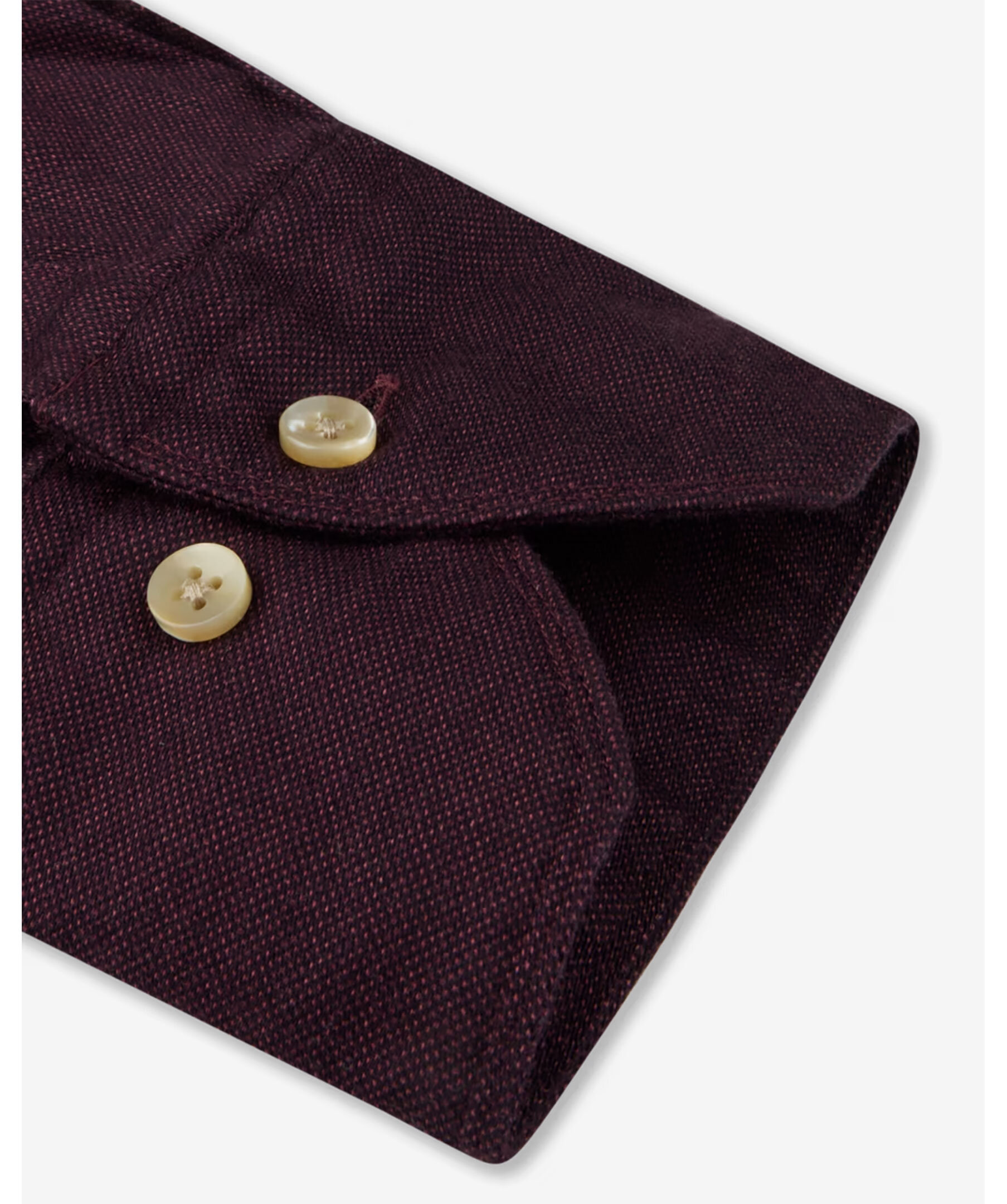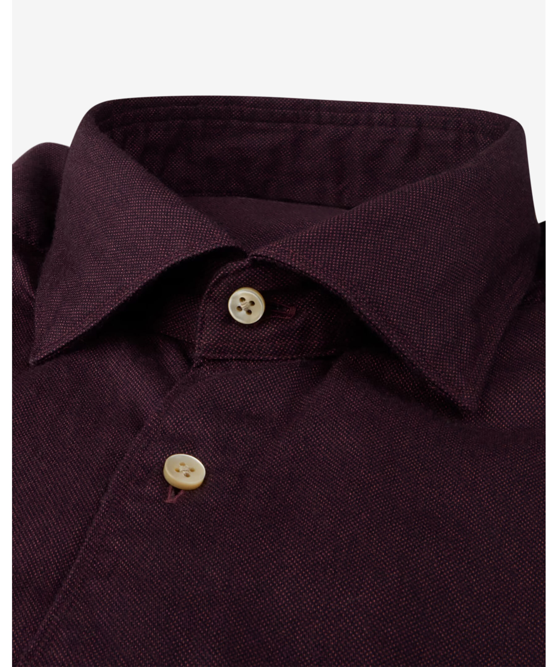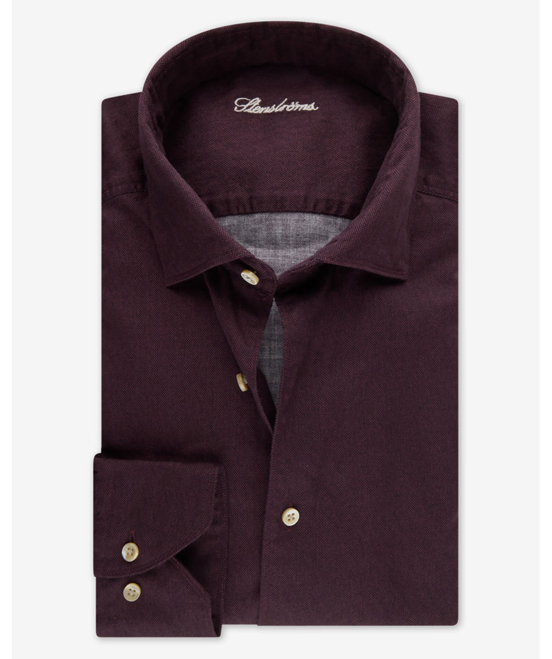 Mörkröd oxfordskjorta från Stenströms. Tillverkad i mjuk towfold-bomull med en garment wash-behandling för en avslappnad look. Skjortan har en moderat cut-away krage, pärlemorknappar och enkla manschetter. Passar både till vardags och mer formella tillfällen.