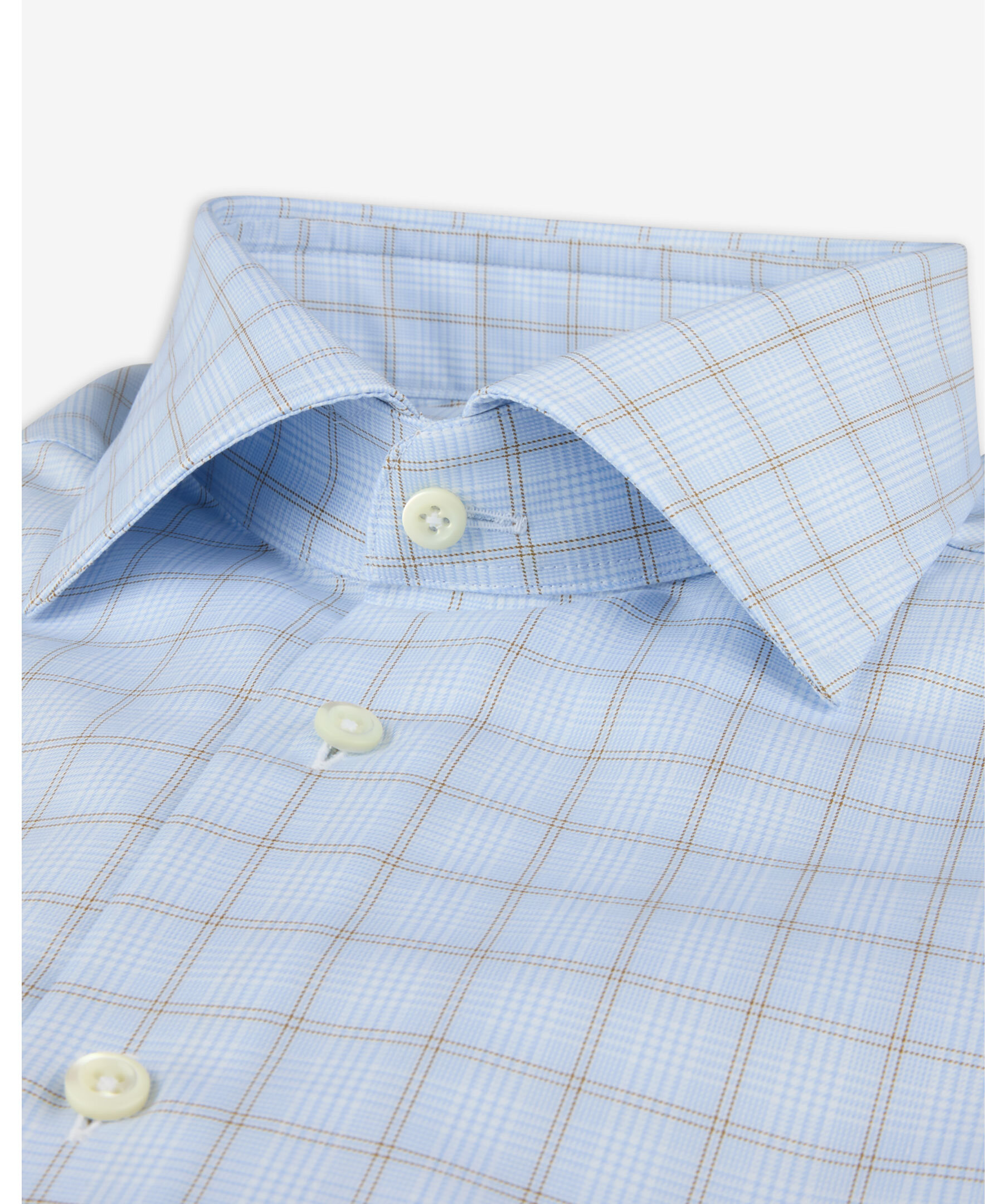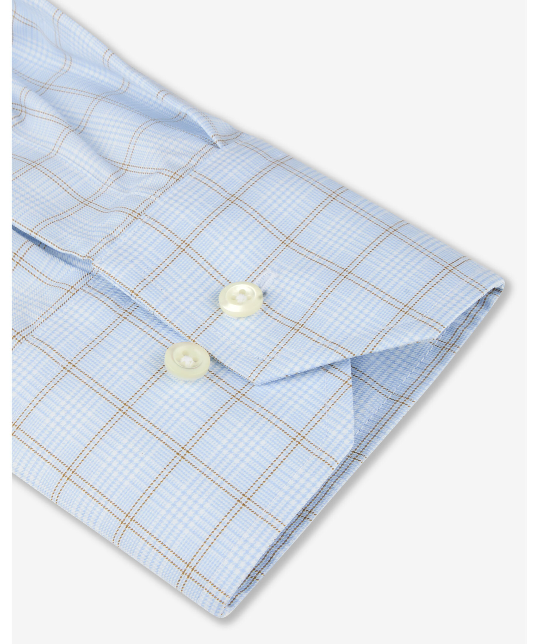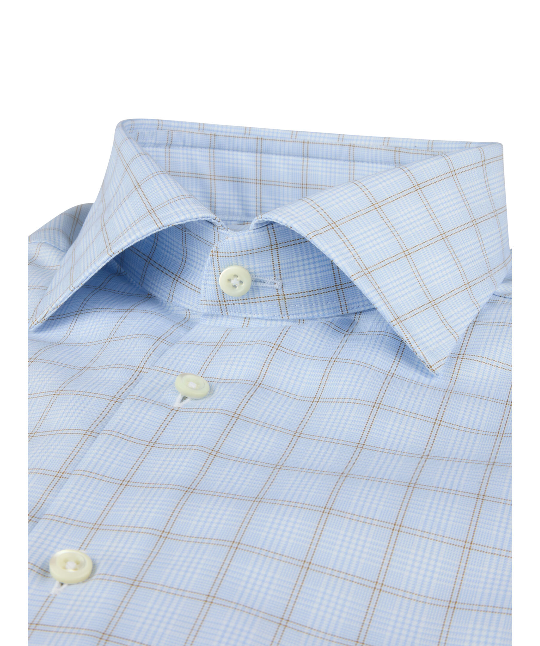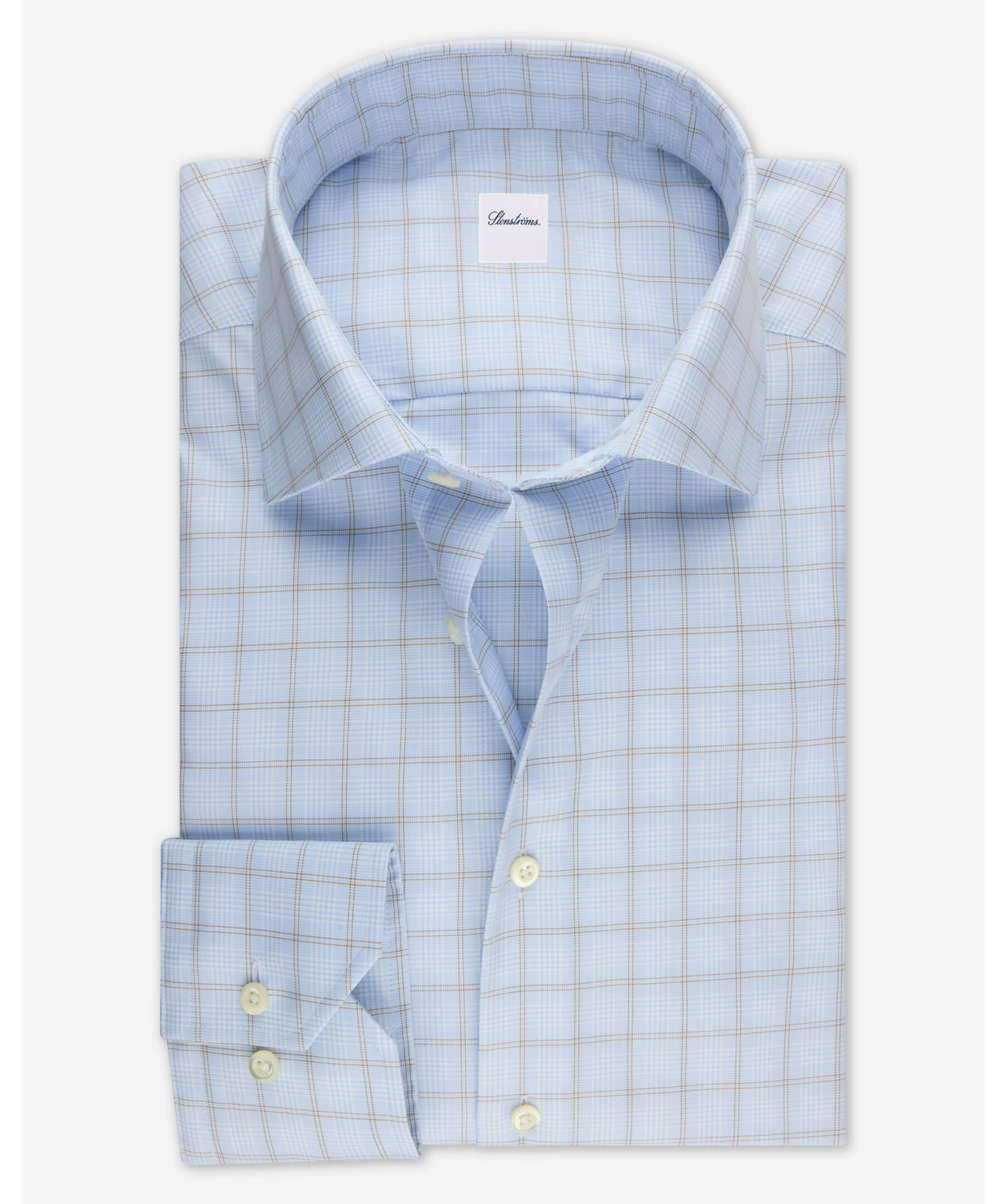 Ljusblå twillskjorta med rutmönster från Stenströms. Skjortan är tillverkad i bomull och har pärlemorknappar, enkla manschetter och en cut away krage. Regular fit.