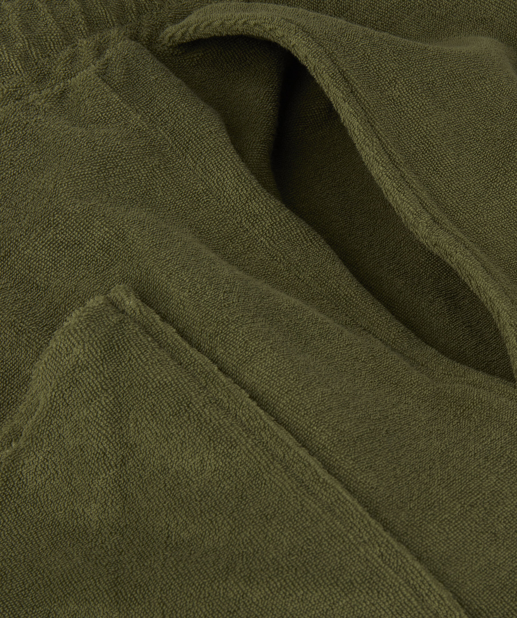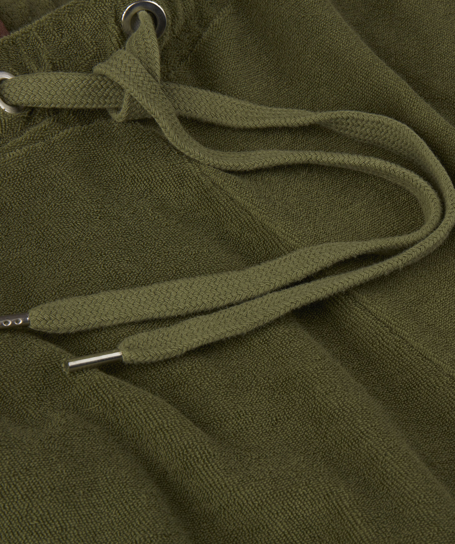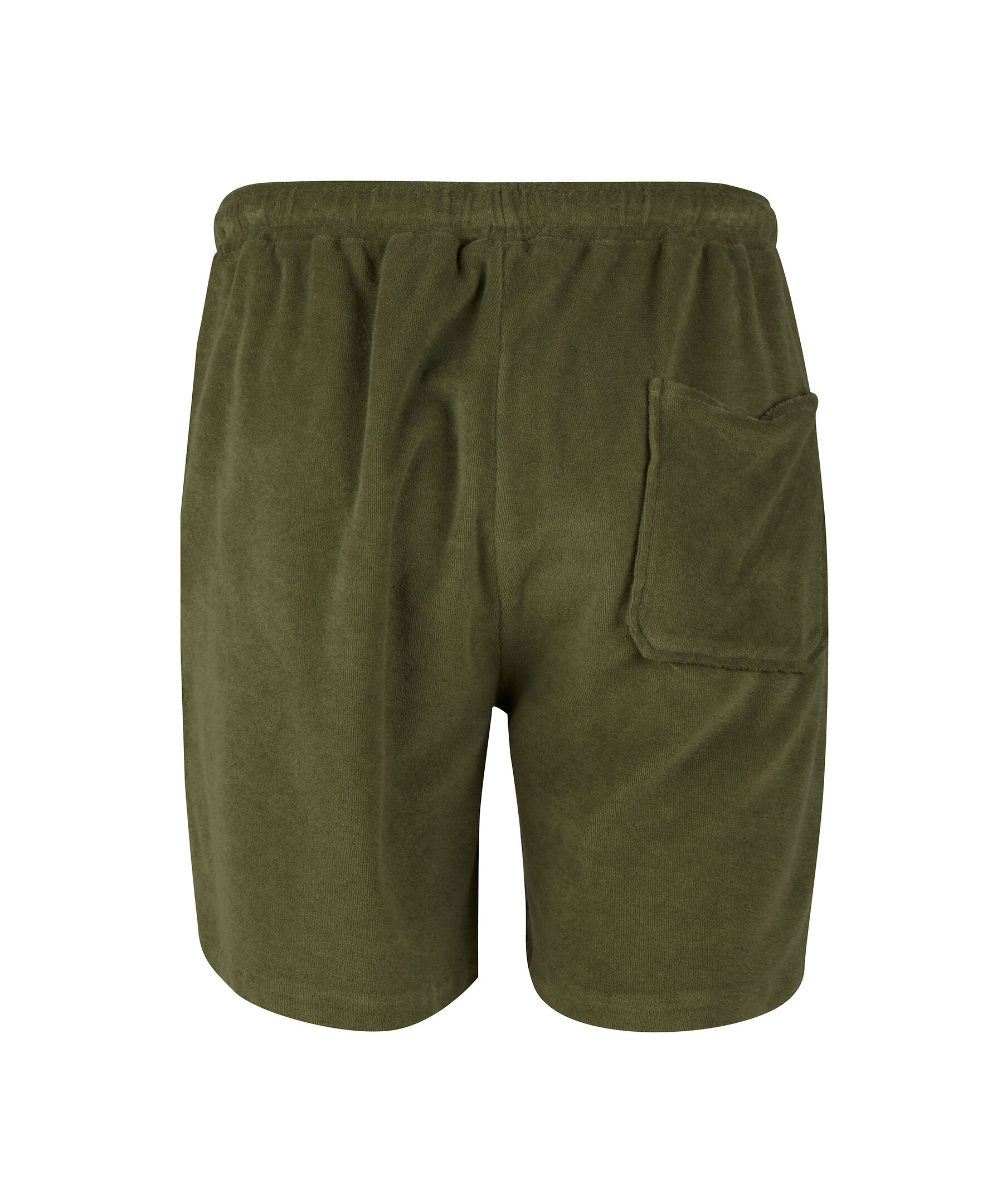 Sweatshorts i mjuk bomullsfrotté. Avslappnad passform, elastisk midja med dragsko samt sidfickor och en bakficka.