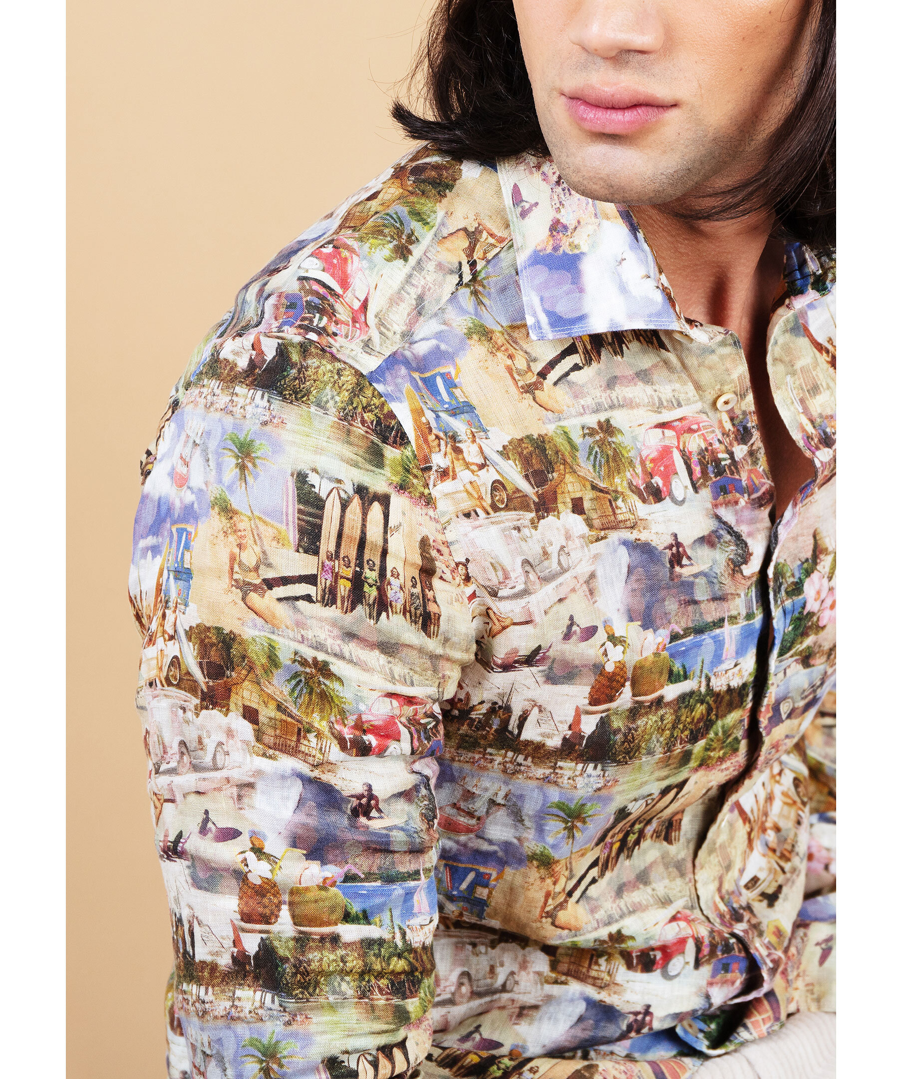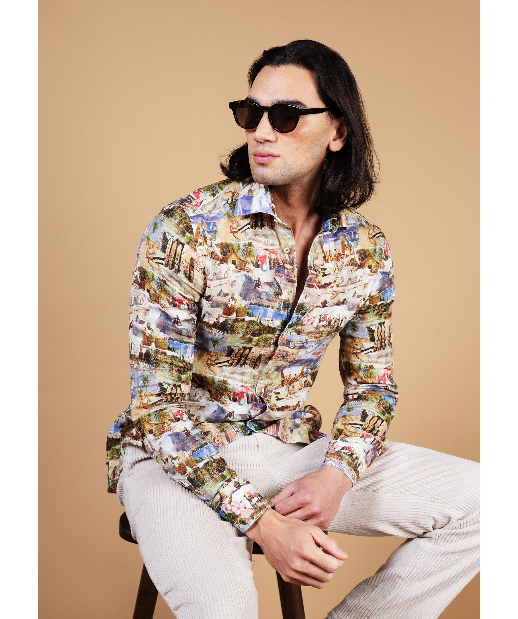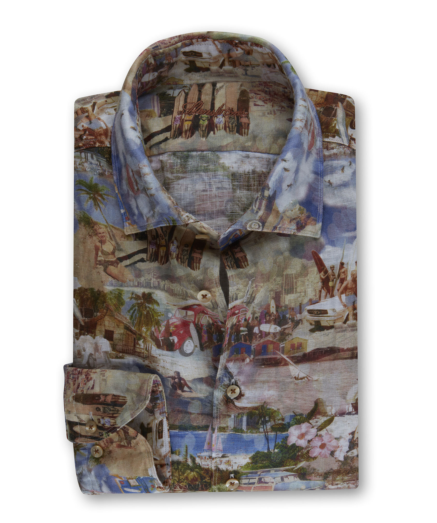 Brun skjorta, i Slimline, tillverkad av 100% linne. Detaljerad med ett mönster, pärlemorknappar, enkla manschetter och en cutaway krage. Vi rekommenderar att gå upp en storlek.