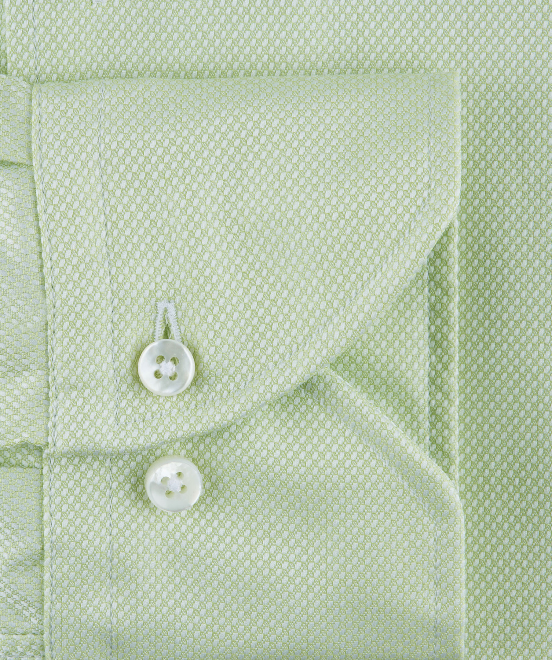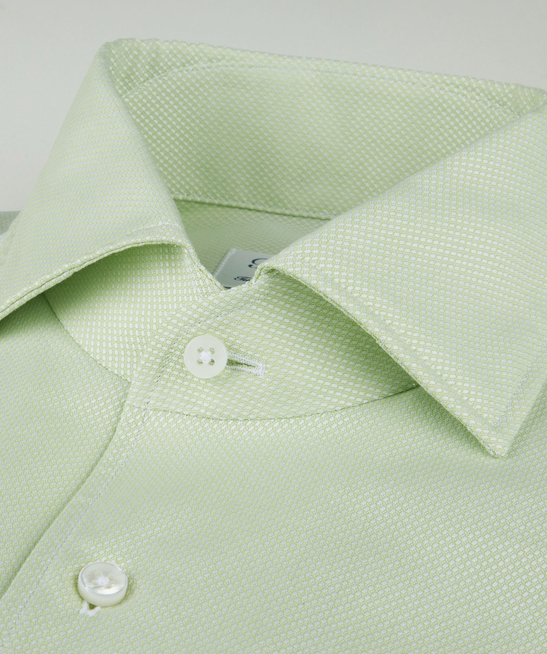 Ljusgrön skjorta, i slimline, tillverkad av twofold bomull. Detaljerad med ett strukturmönster, pärlemorknappar, enkla manschetter och en cutaway krage.