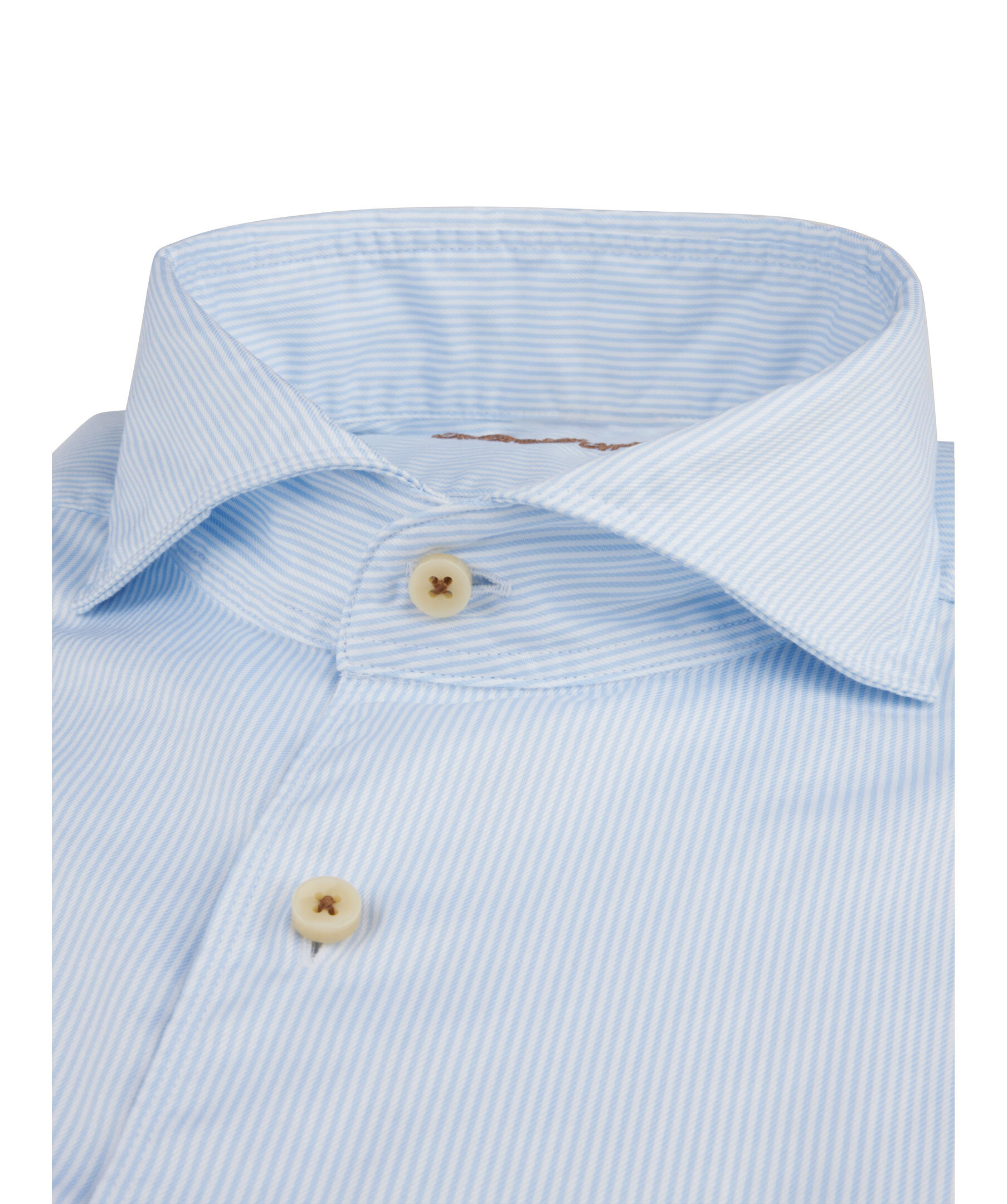 Denna casual smalrandiga Slimline twillskjorta är tillverkad av twofold bomull. Skjortan har pärlemorknappar, enkla manschetter och en cut away krage.