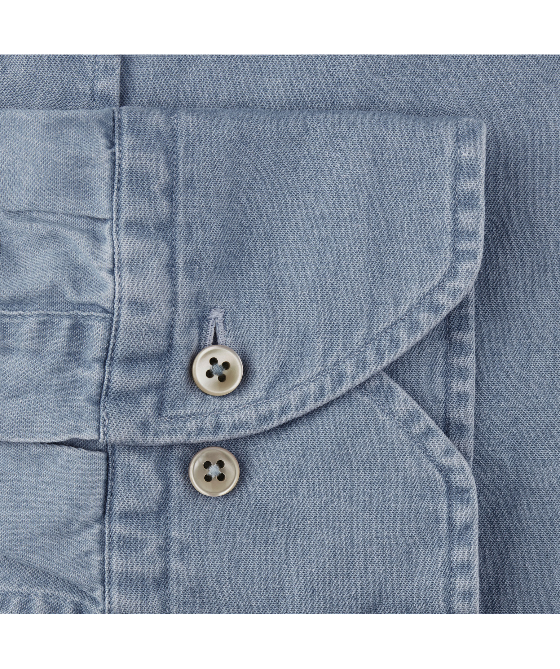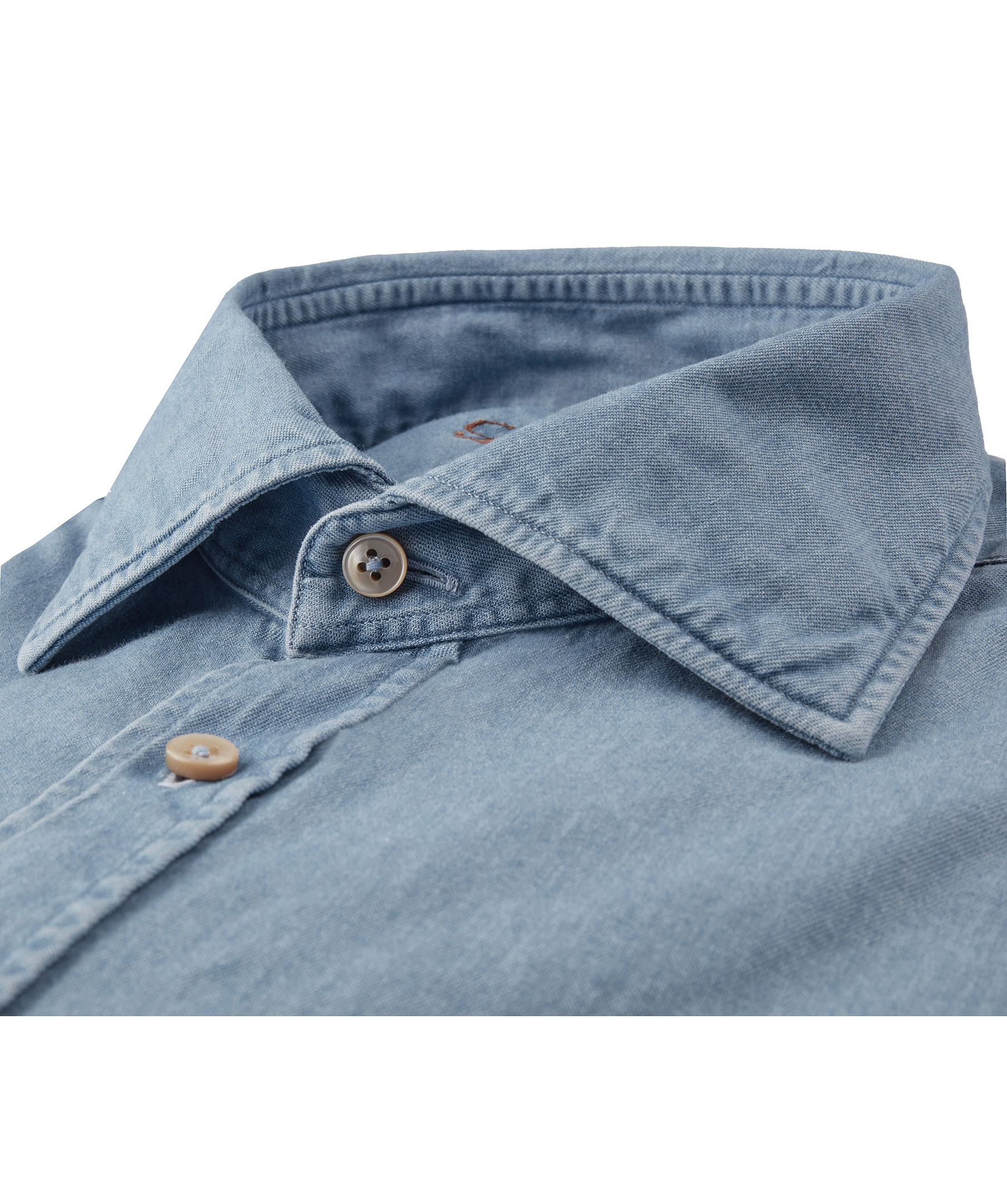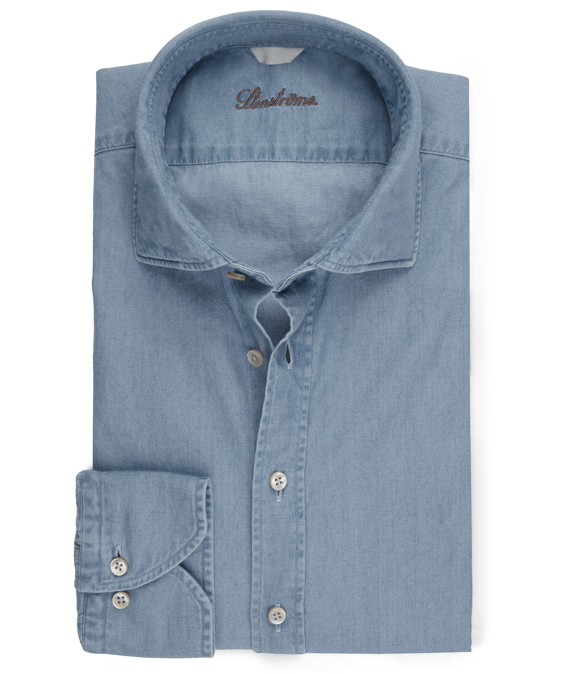 Blå jeansskjorta från Stenströms. Tillverkad i bomullsmix. Smal passform, cut away krage, ljusa knappar.