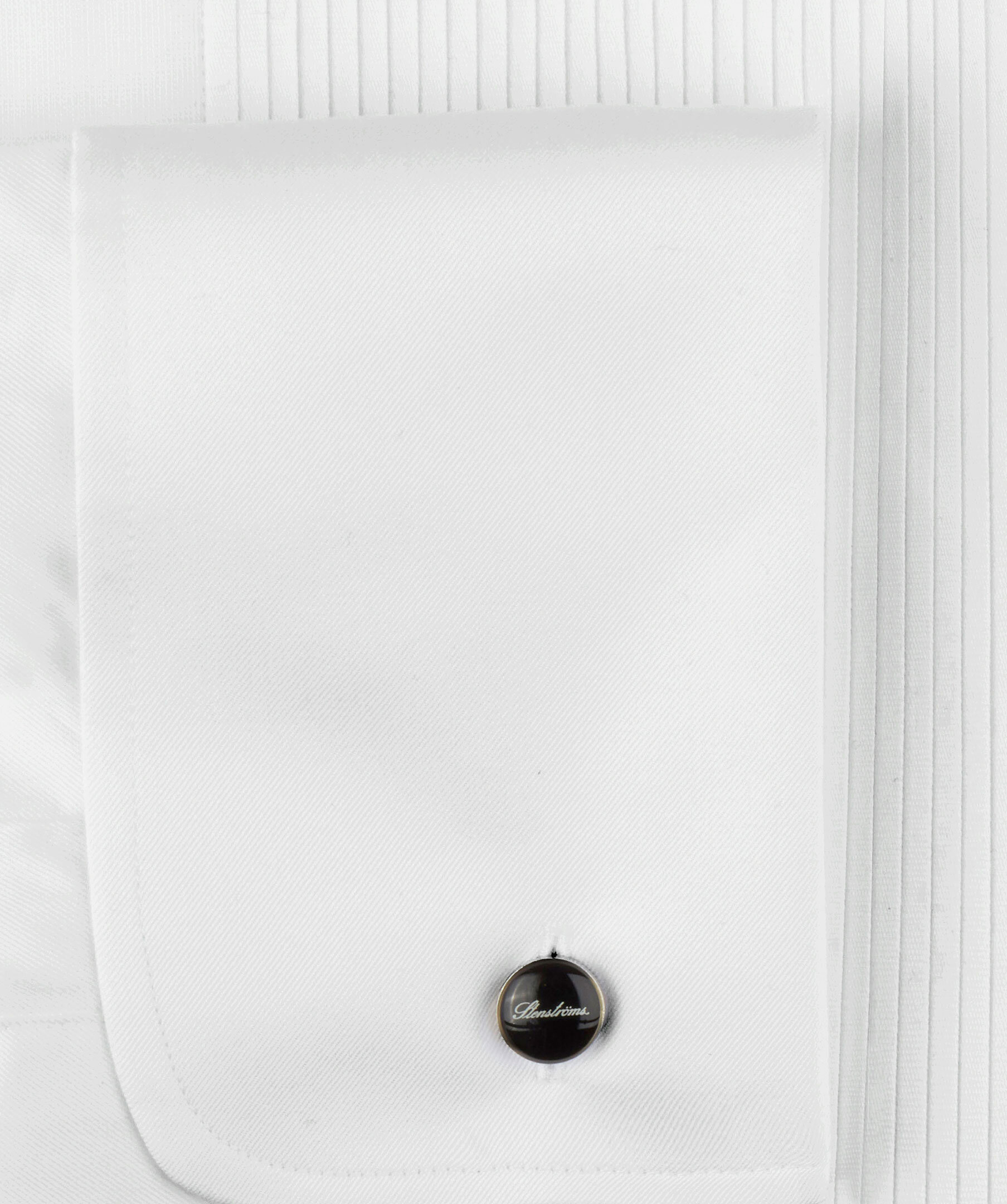 Denna eleganta aftonskjortan från Stenströms är gjord av fint twill och är detaljerad med en veckad front. Denna aftonskjorta är i Slimline, vilket innebär att den är en smalare modell. Skjortan är detaljerad med pärlemoknappar, dubbla manschetter och har en snibbkrage.