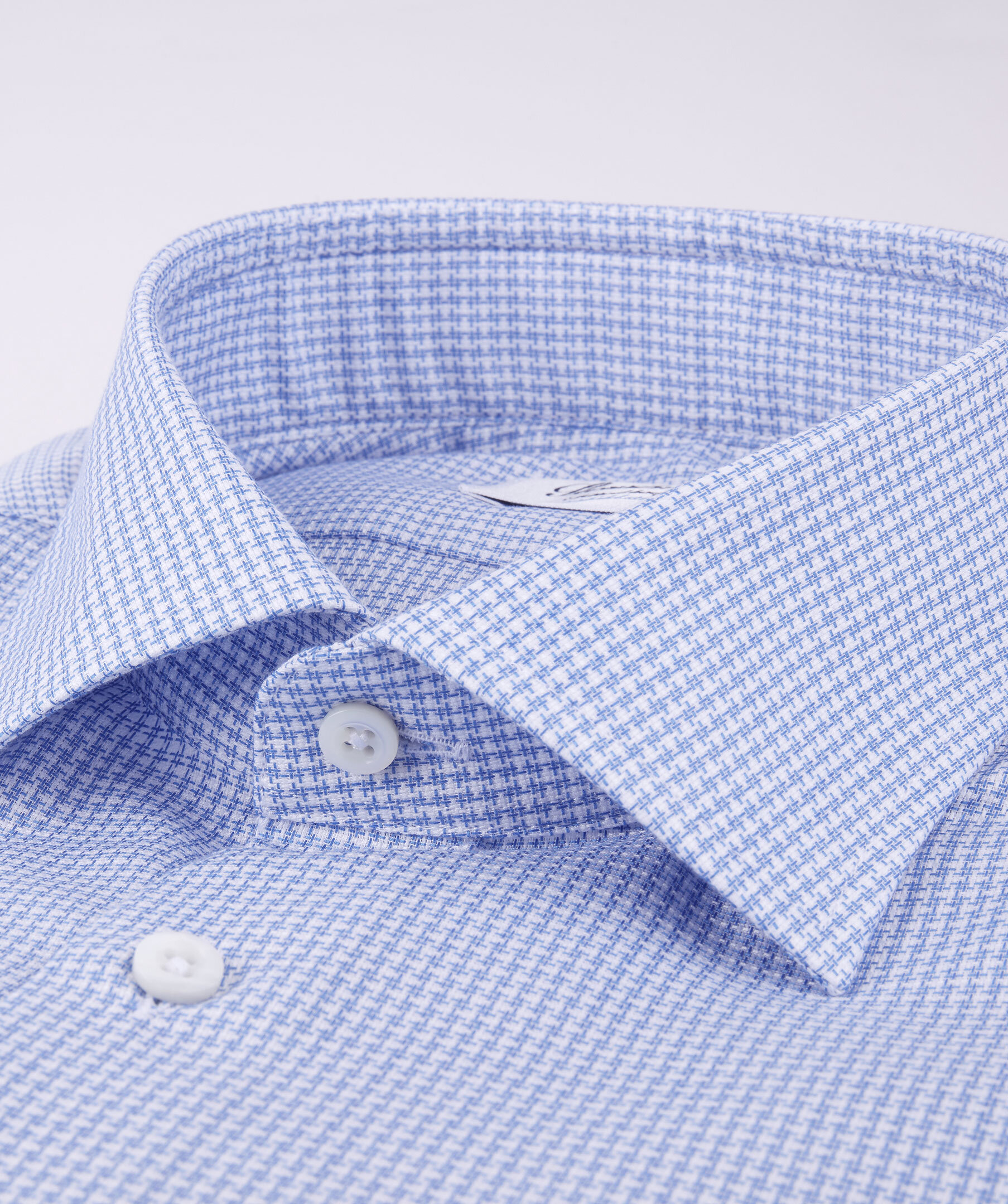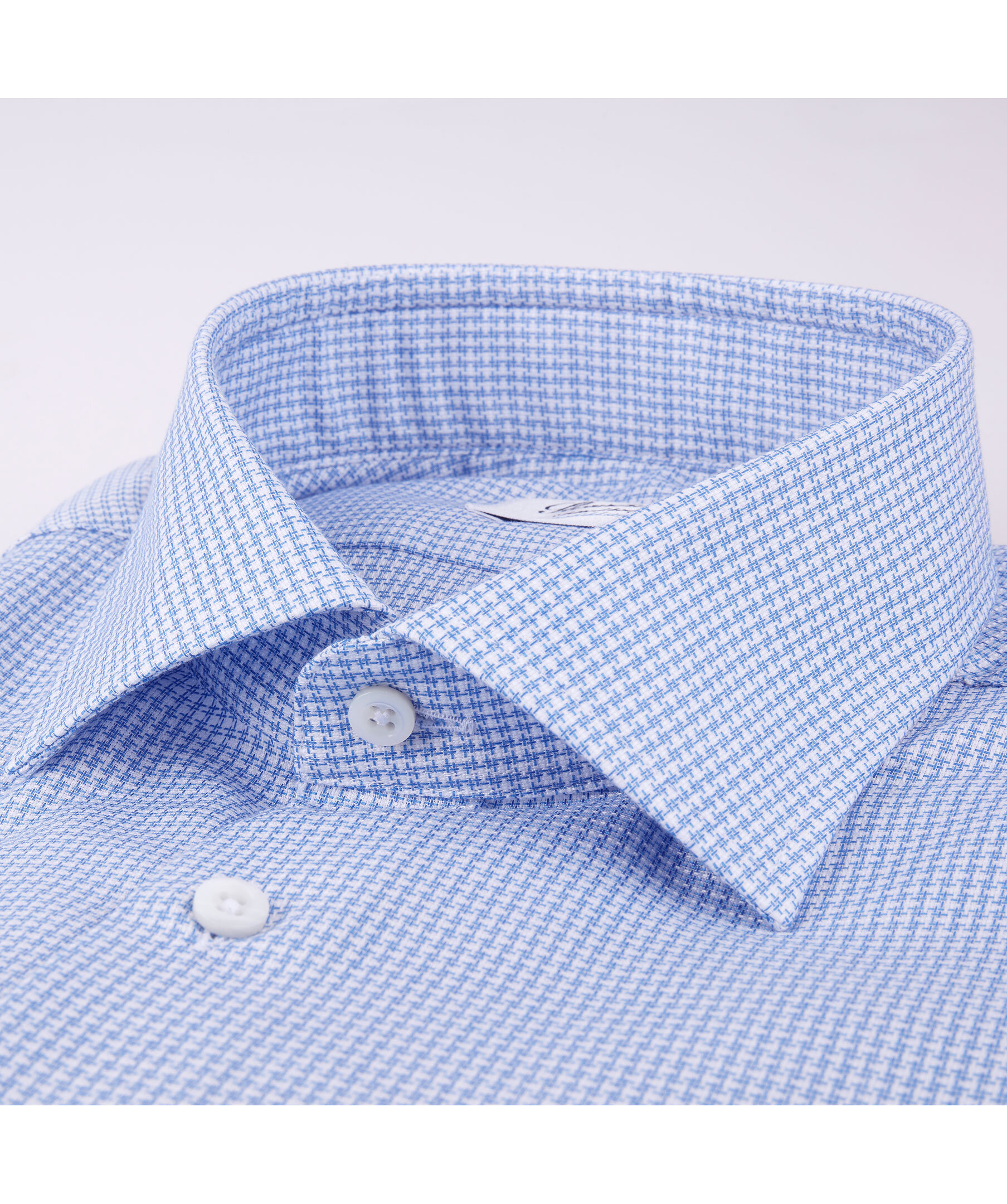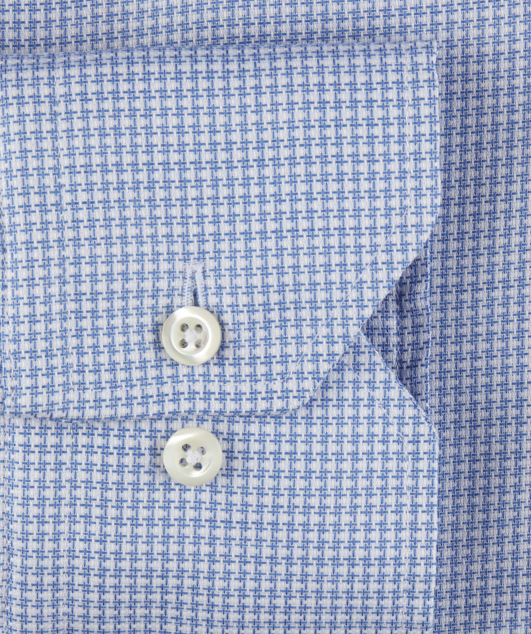 Ljusblå slimline skjorta i bomull från Stenströms. Skjortan är detaljerad med ett rutigt mönster, enkla manschetter, pärlemorknappar och en cut away krage.