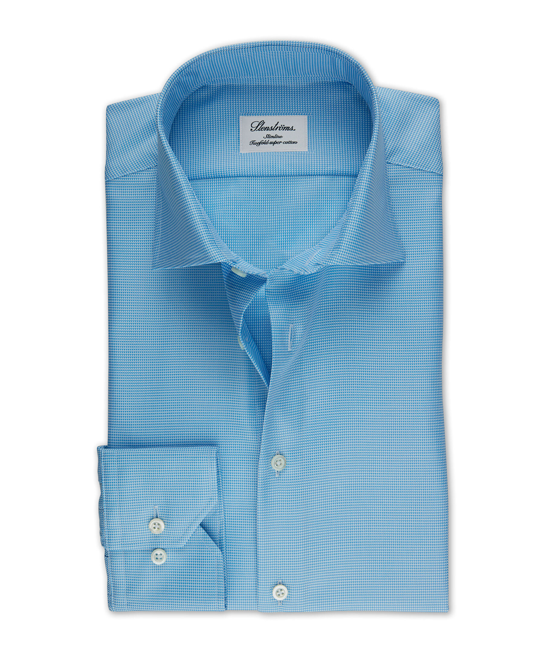 Denna Slimline twillskjorta är tillverkad av twofold bomull och har ett hundtandsmösnter. Skjortan har pärlemorknappar, enkla manschetter och en cut away krage.