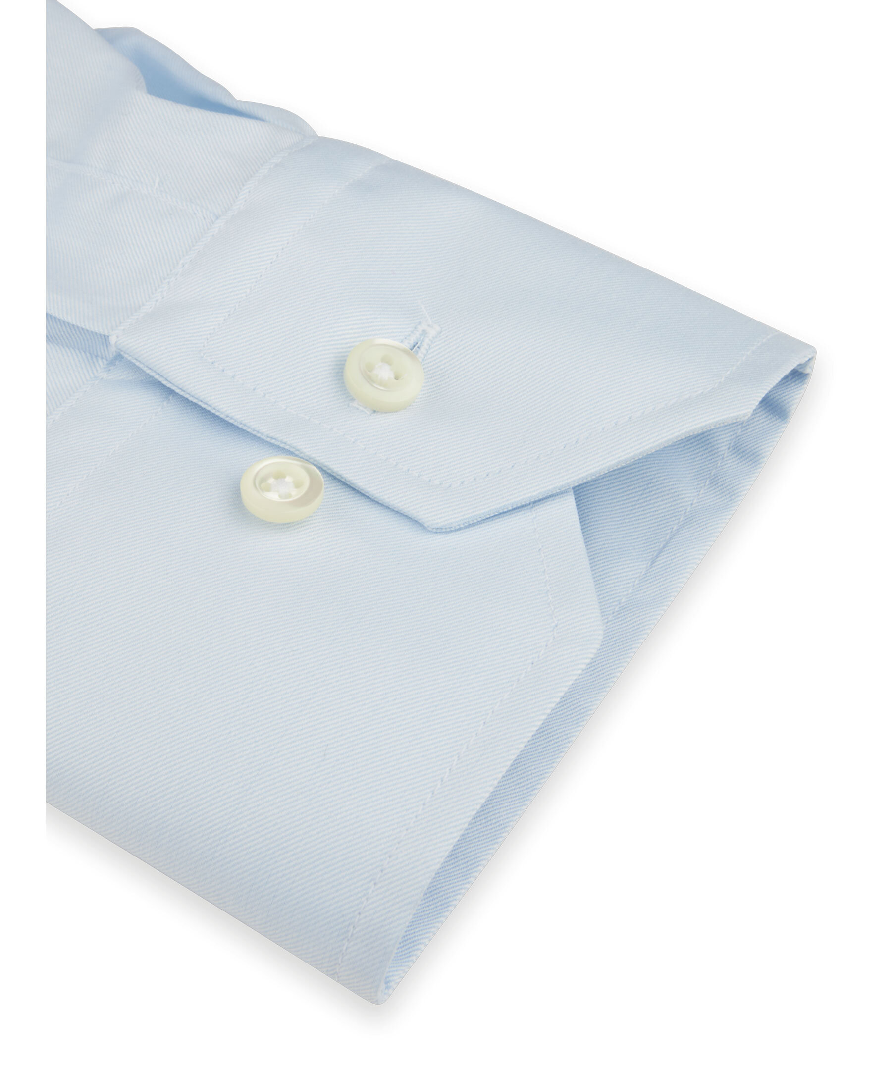 Denna Slimline twillskjorta är tillverkad av twofold bomull. Skjortan har pärlemorknappar, enkla manschetter, en cut away krage och XL-ärmar.
