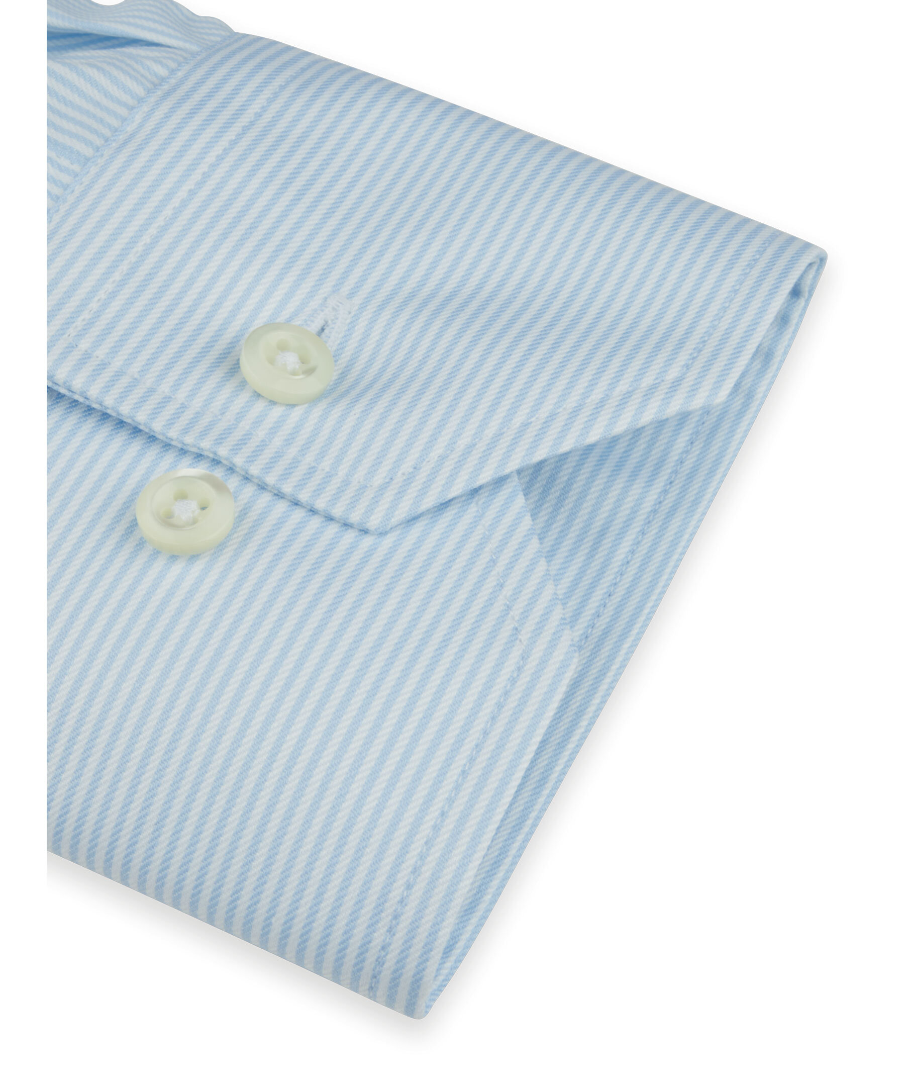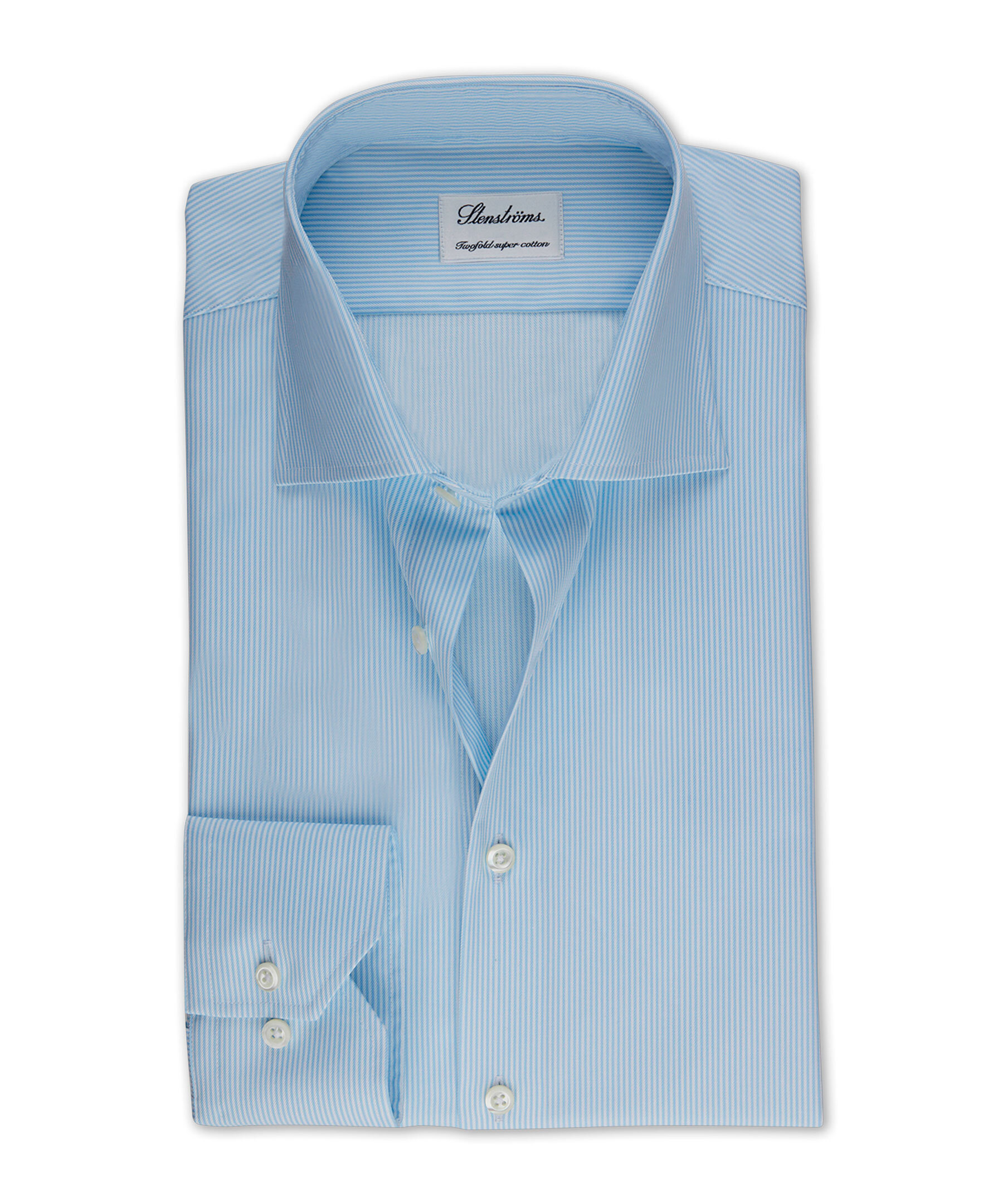 Denna smalrandiga Slimline twillskjorta är tillverkad av twofold bomull. Skjortan har pärlemorknappar, enkla manschetter och en cut away krage.