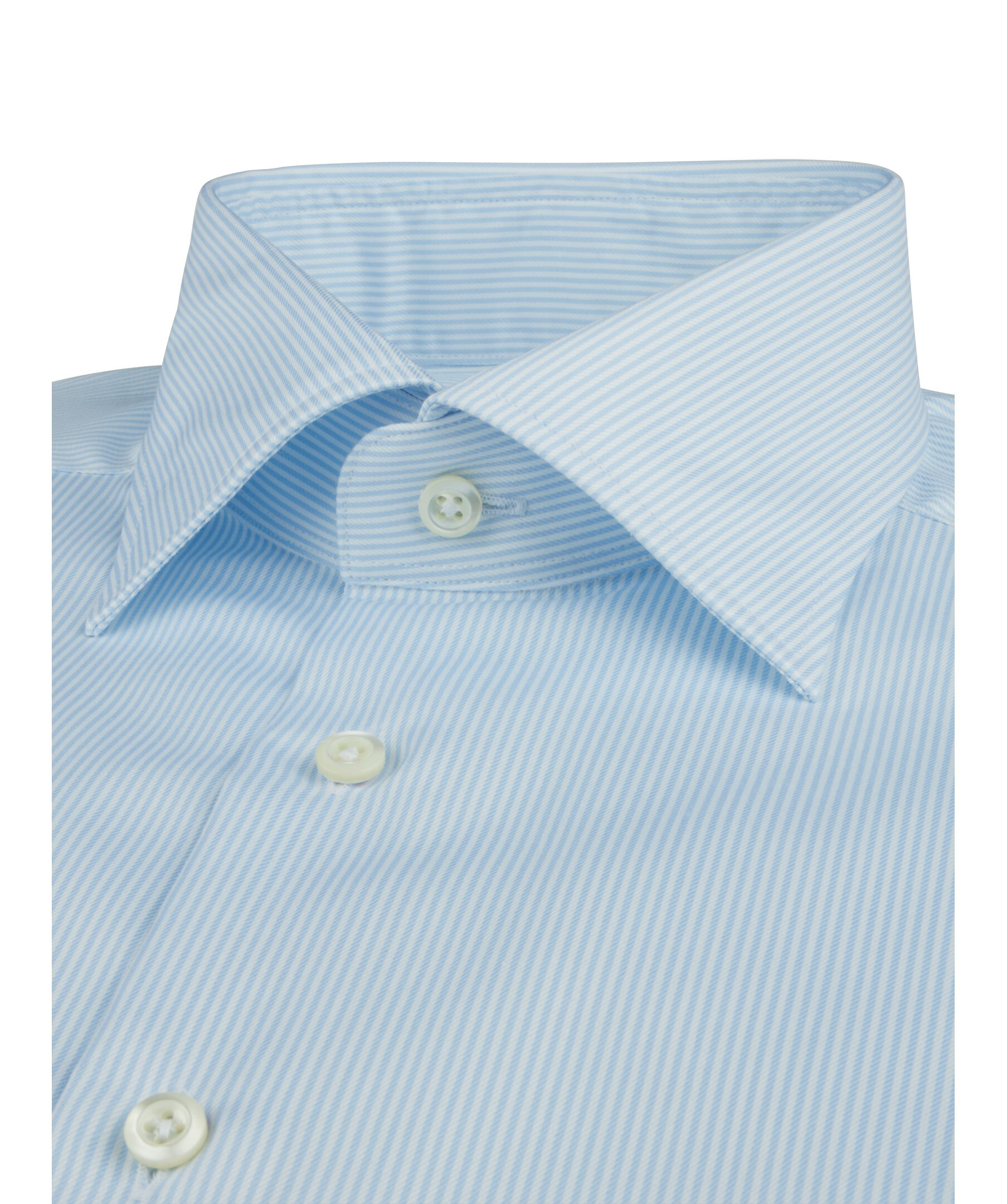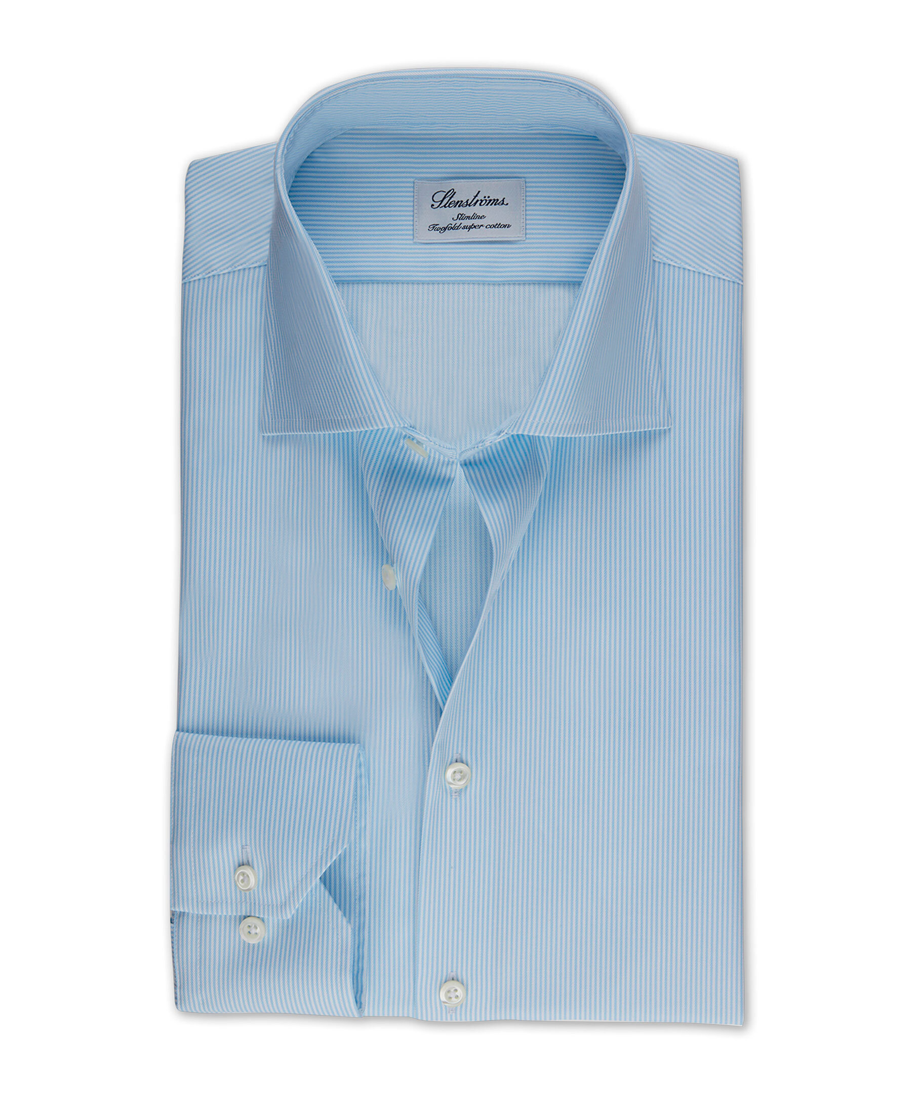 Denna randiga Slimline twillskjorta är tillverkad av twofold bomull. Skjortan har pärlemorknappar, enkla manschetter och en cut away krage.