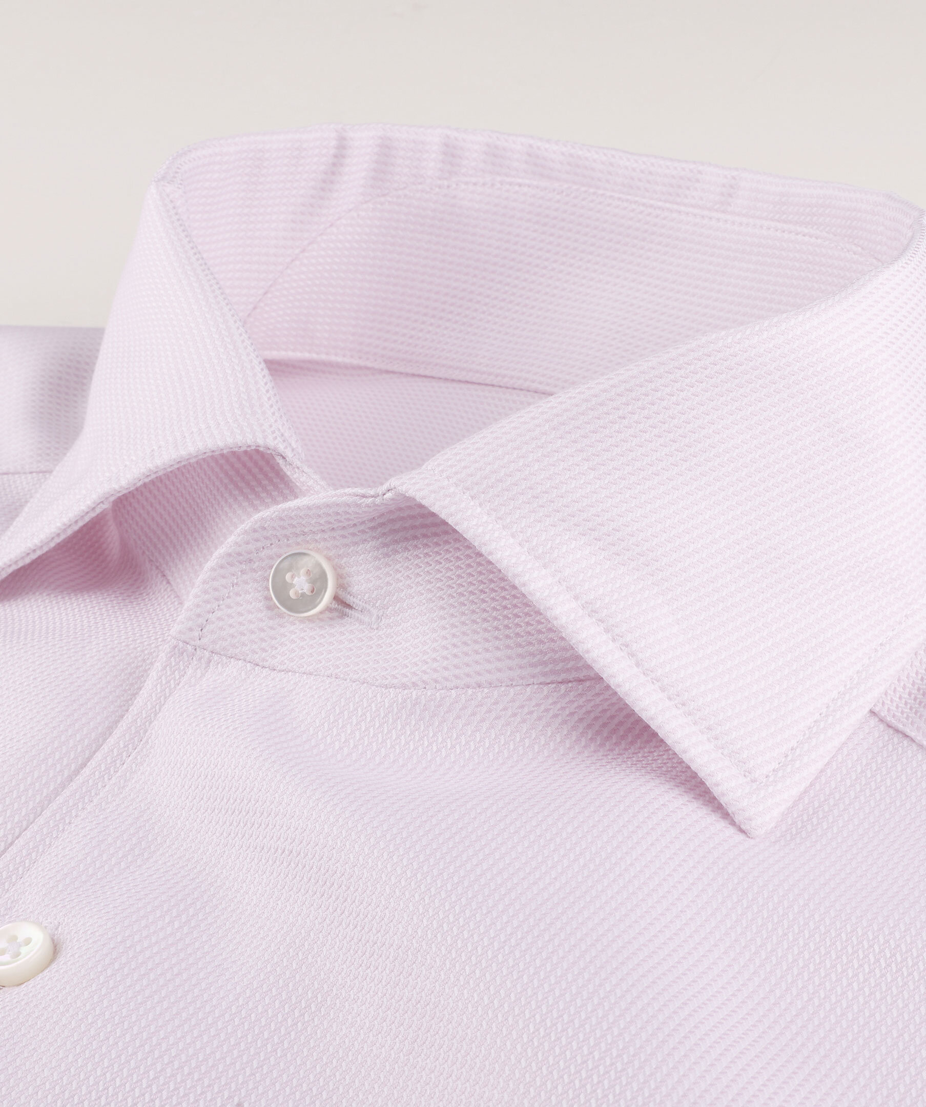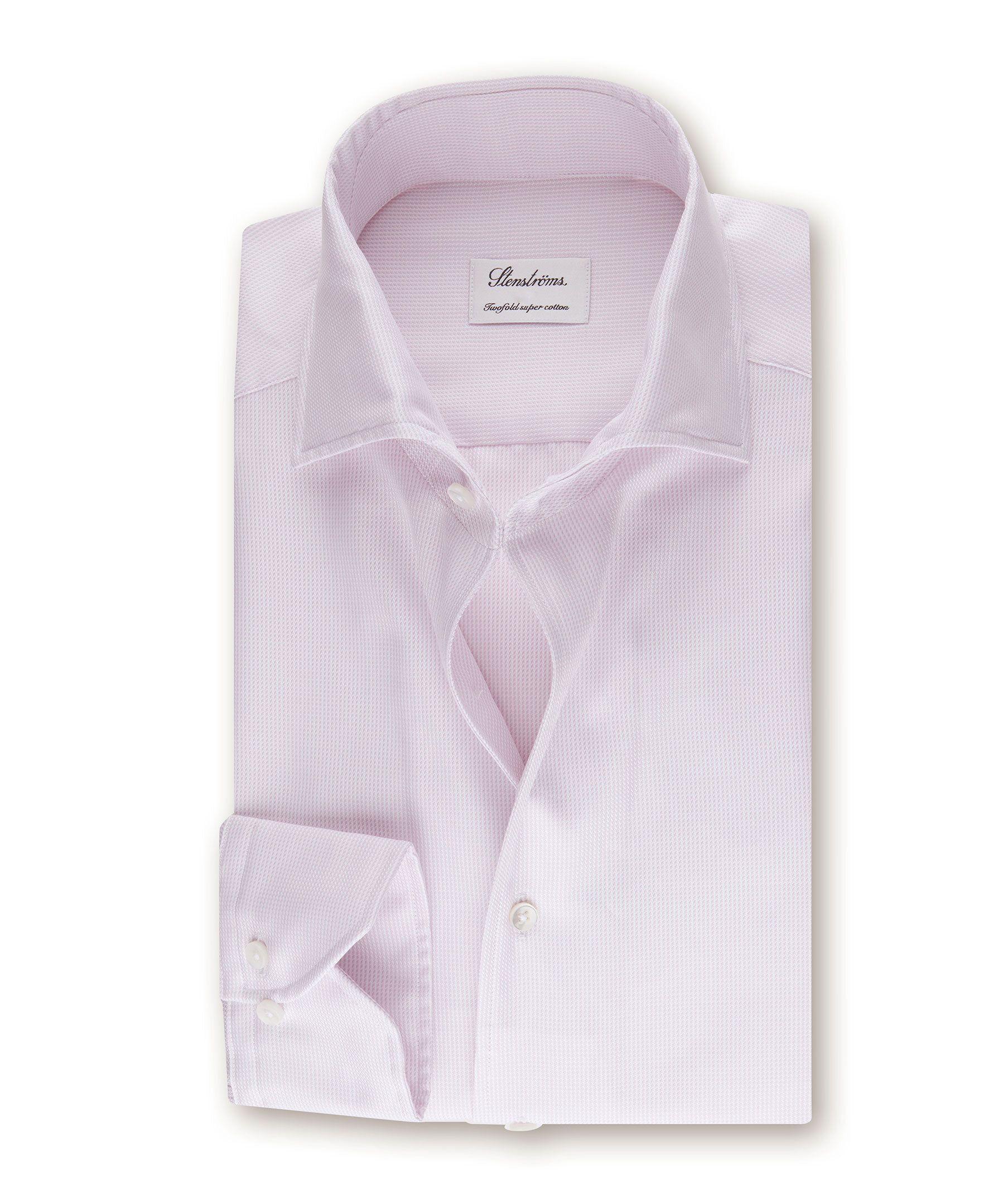 Ljusrosa skjorta, i slimline, tillverkad av twofold bomull. Designad med en vävd struktur och detaljerad med pärlemorknappar, enkla manschetter och en cutaway krage.