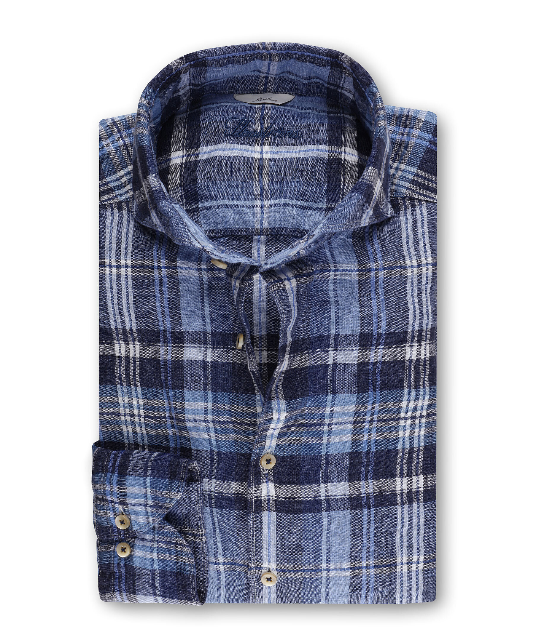 Linneskjortan är det ideala plagget för varma sommardagar och kan bäras både på kontoret och på stranden. Den här skjortan från Stenströms har en smal passform och har en slät front med beigea pärlemorknappar och enkla manschetter. Rulla upp ärmarna och bär skjortan till ett par shorts eller ett par jeans för en avslappnad stil.