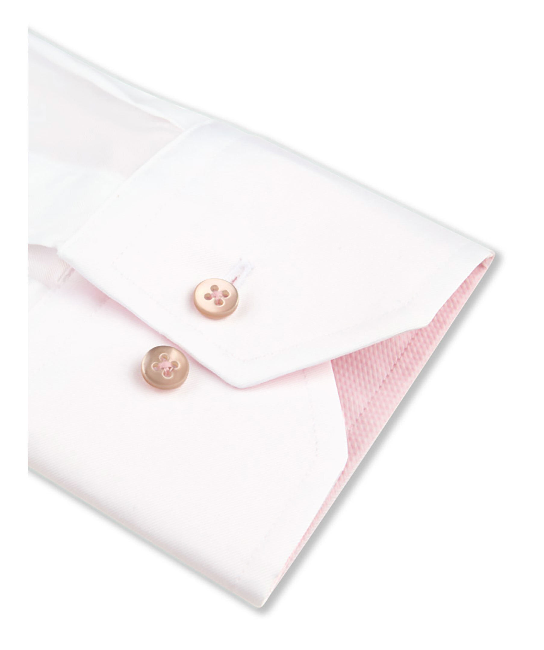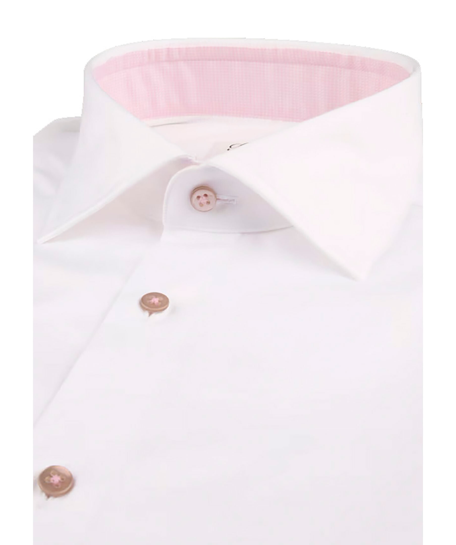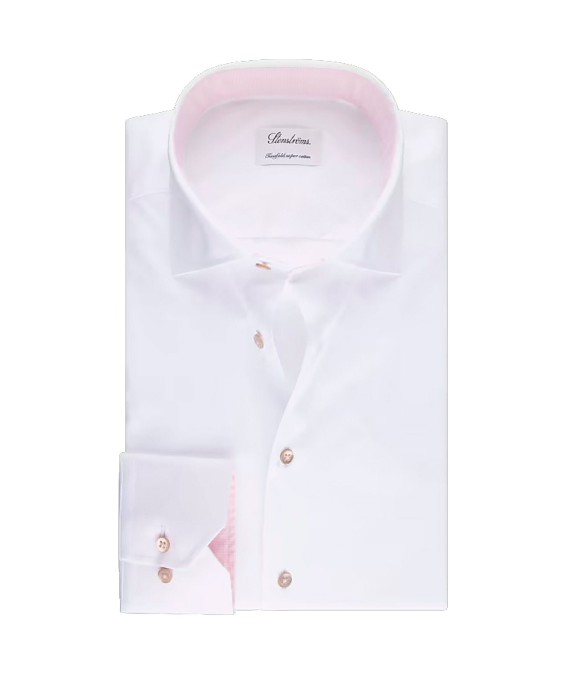 Vit kontrast twillskjorta från Stenströms. Skjortan har pärlemoknappar, enkla manschetter och en cut away krage samt kontrastdelar i ljustrosa. Tillverkad av twofold bomull.