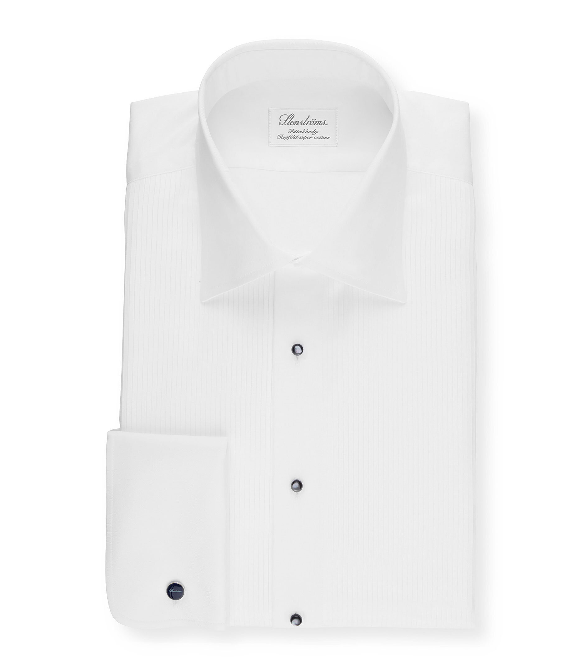 Denna eleganta aftonskjorta från Stenströms är gjord från fint twill med en veckad front, och skjortan är en fitted body med en något skräddarsydd midja. Den är detaljerad med dubbla manschetter och en klassisk wing krage.