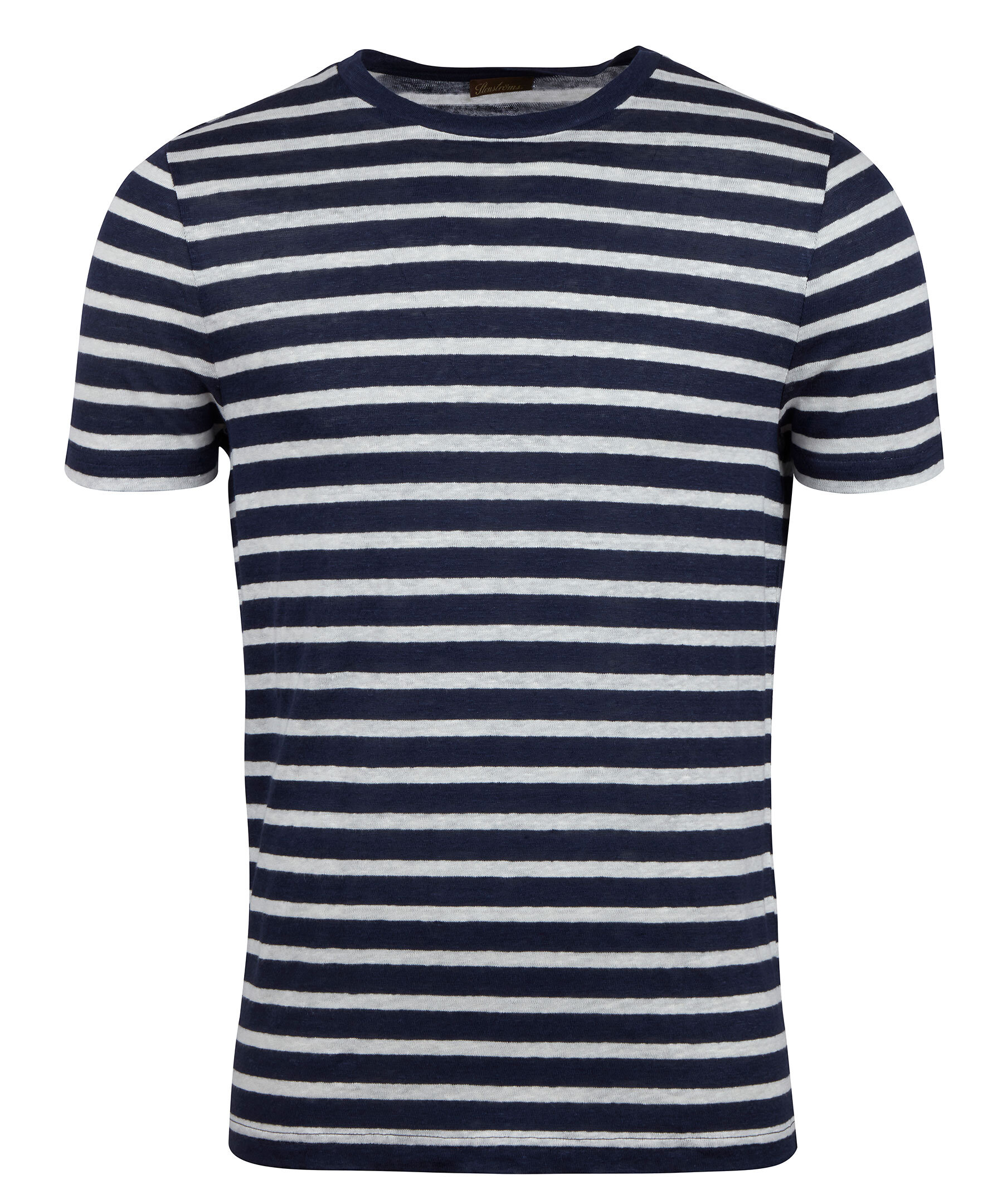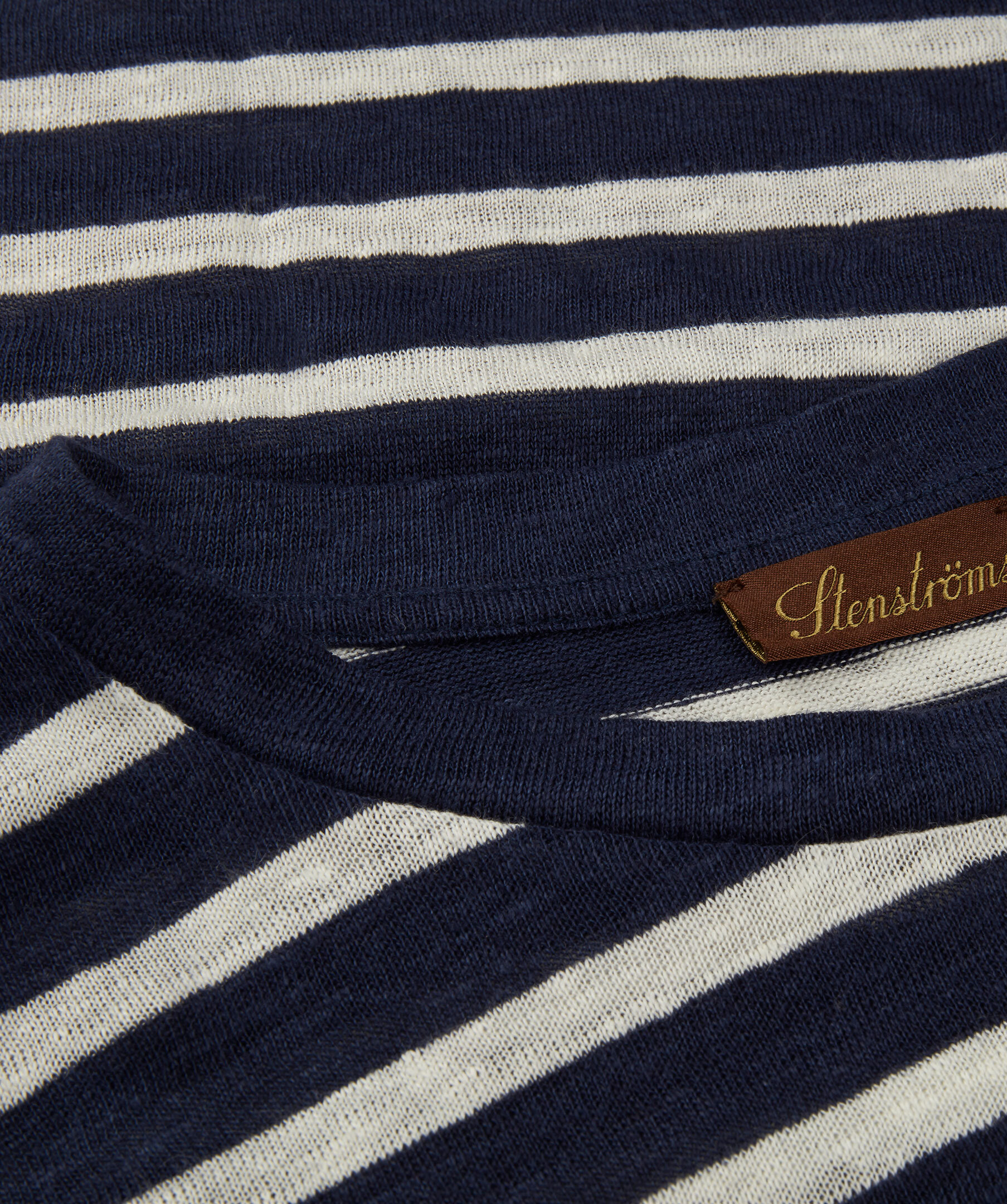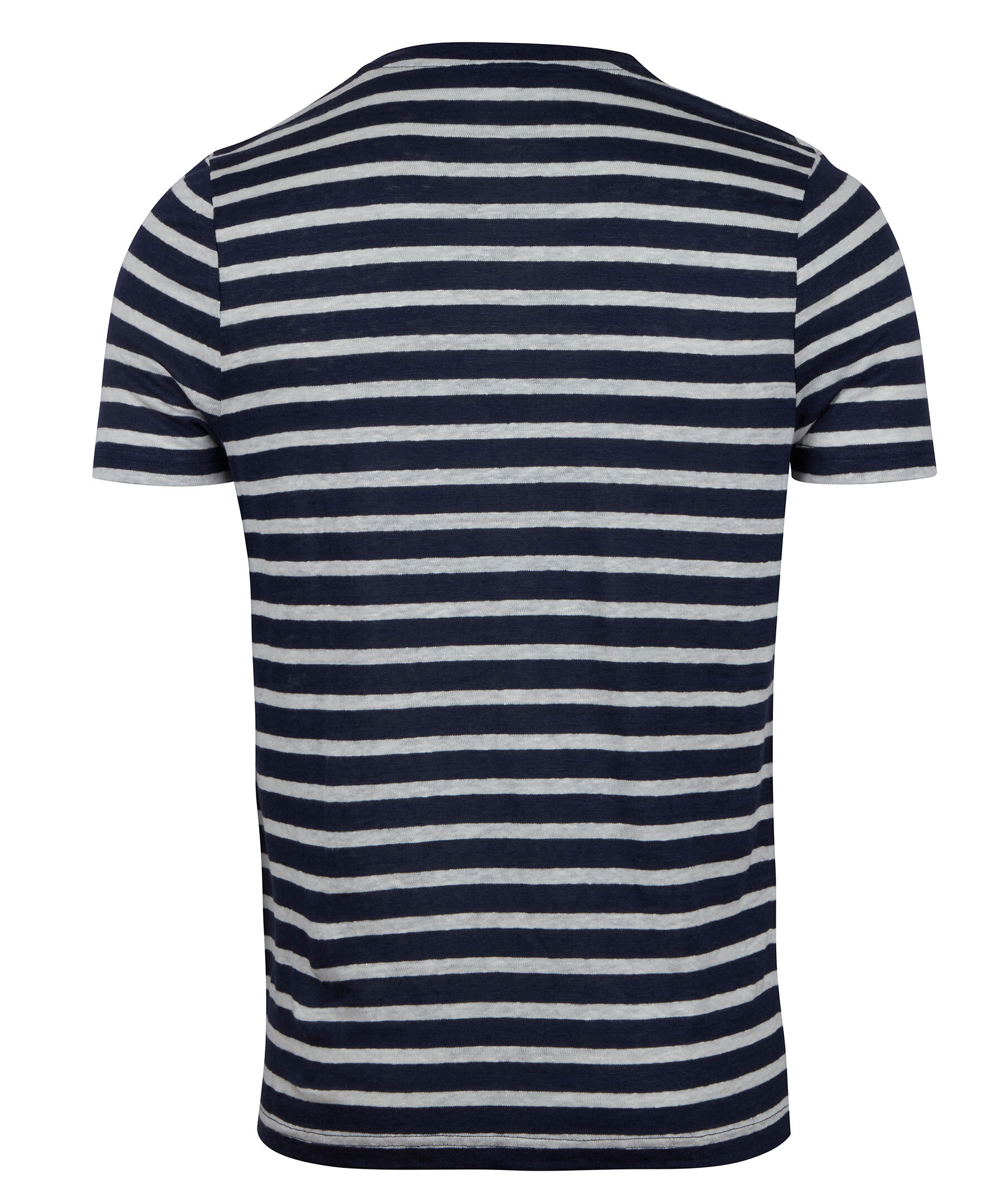 T-shirt i mjuk linne jersey prydd med ett randigt mönster. Bär den till dina favoritjeans för en avslappnad och ledig helgstil eller till ljusa chinos förr sommarens middagar.