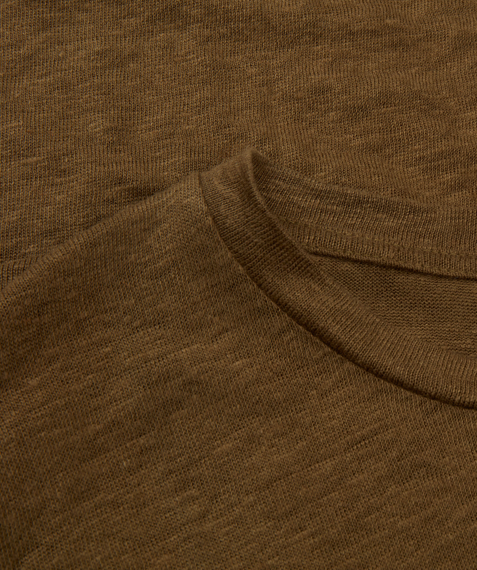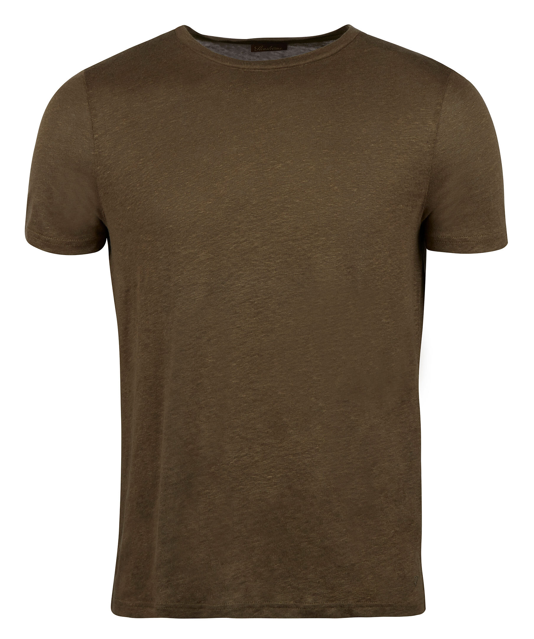 En klassisk kortärmad T-shirt är ett nyckelplagg i var mans garderob. Den här tröjan är gjord i 100% linne jersey och har en lätt och andningsbar känsla, perfekt för varma dagar. Den är perfekt för helgens utflykter. Bär den till chinos i en basfärg som ljusbeige eller jeans.