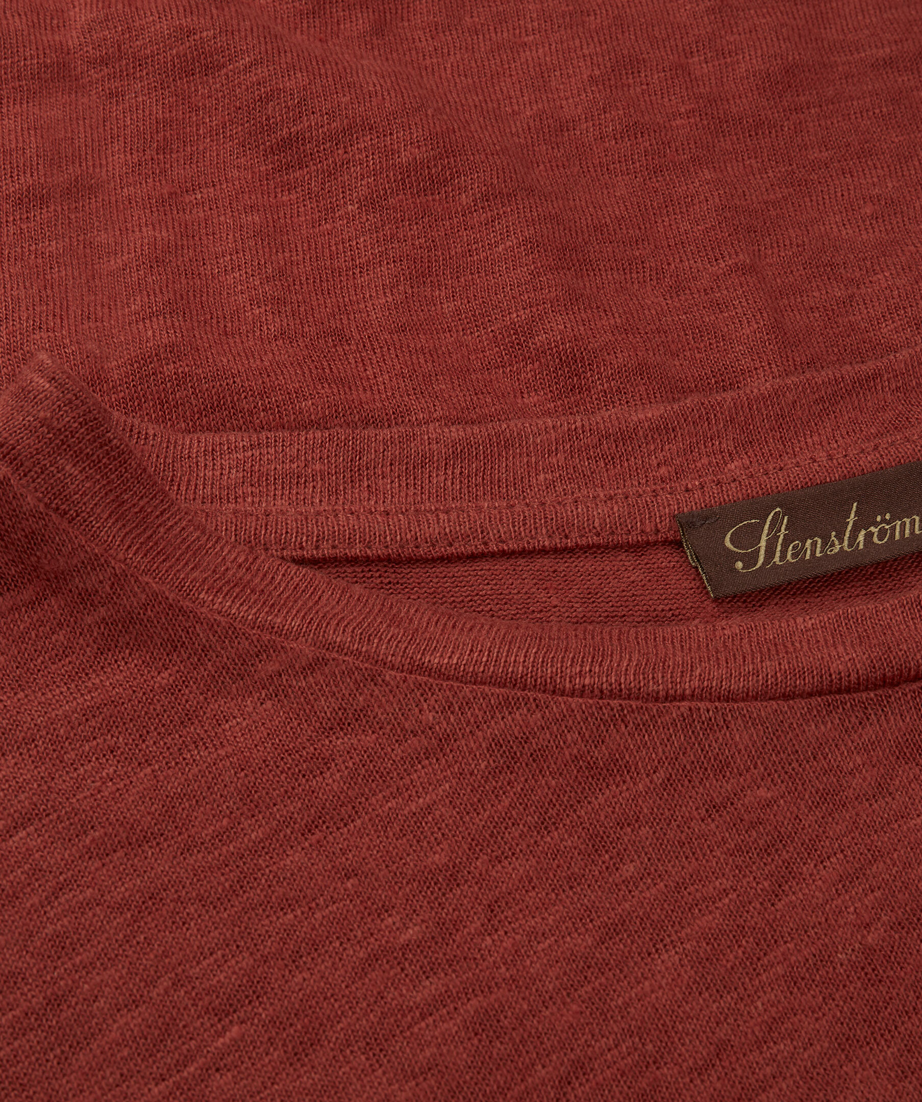En klassisk kortärmad T-shirt är ett nyckelplagg i var mans garderob. Den här tröjan är gjord i 100% linne jersey och har en lätt och andningsbar känsla, perfekt för varma dagar. Den är perfekt för helgens utflykter. Bär den till chinos i en basfärg som ljusbeige eller jeans.
