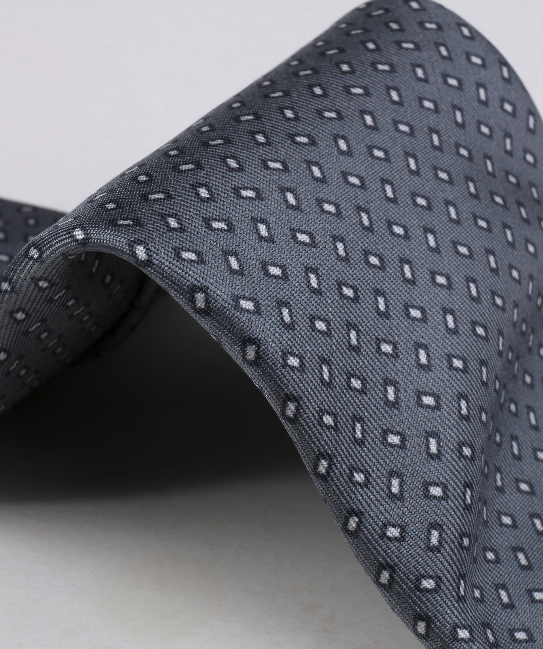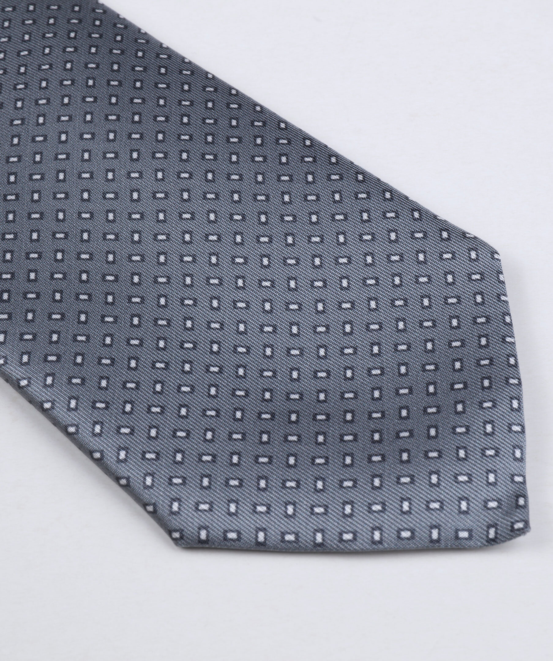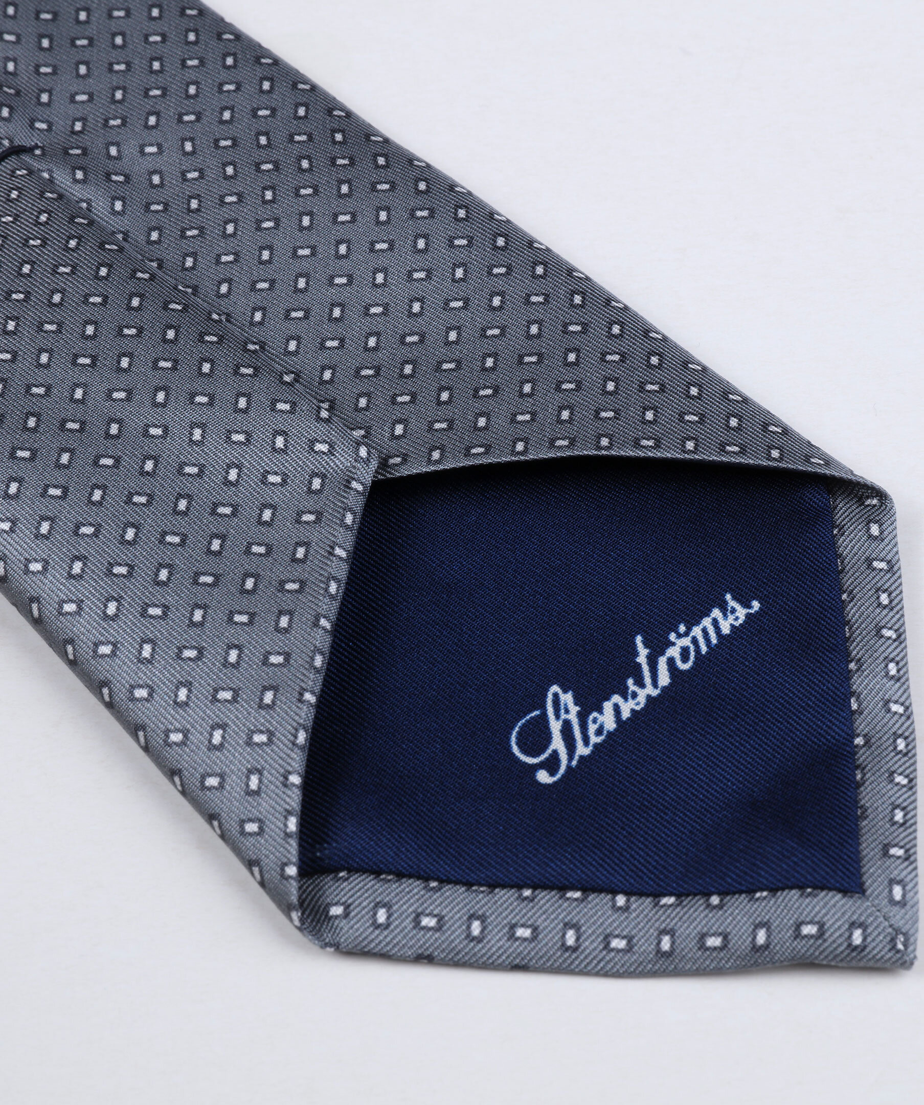 Den här slipsen från Stenströms har en litet grafiskt mönster i olika grå toner. Den är tillverkad i Italien av siden med en matt och len yta med precis lagom mycket lyster. Matcha med en blazer och en tunn stickad tröja som är i en av slipsens färger.