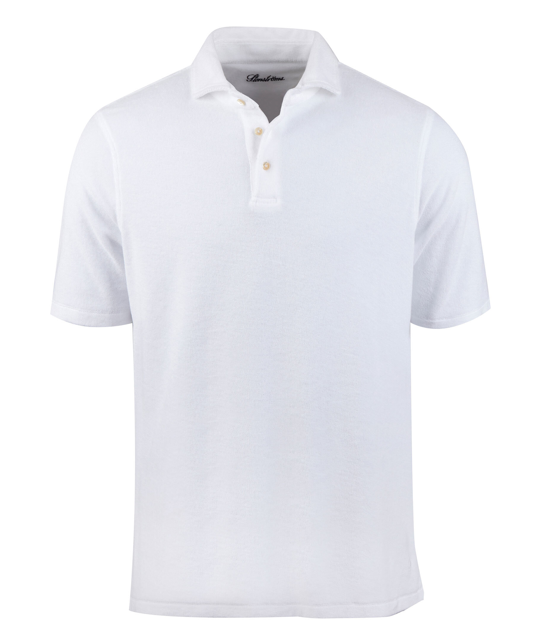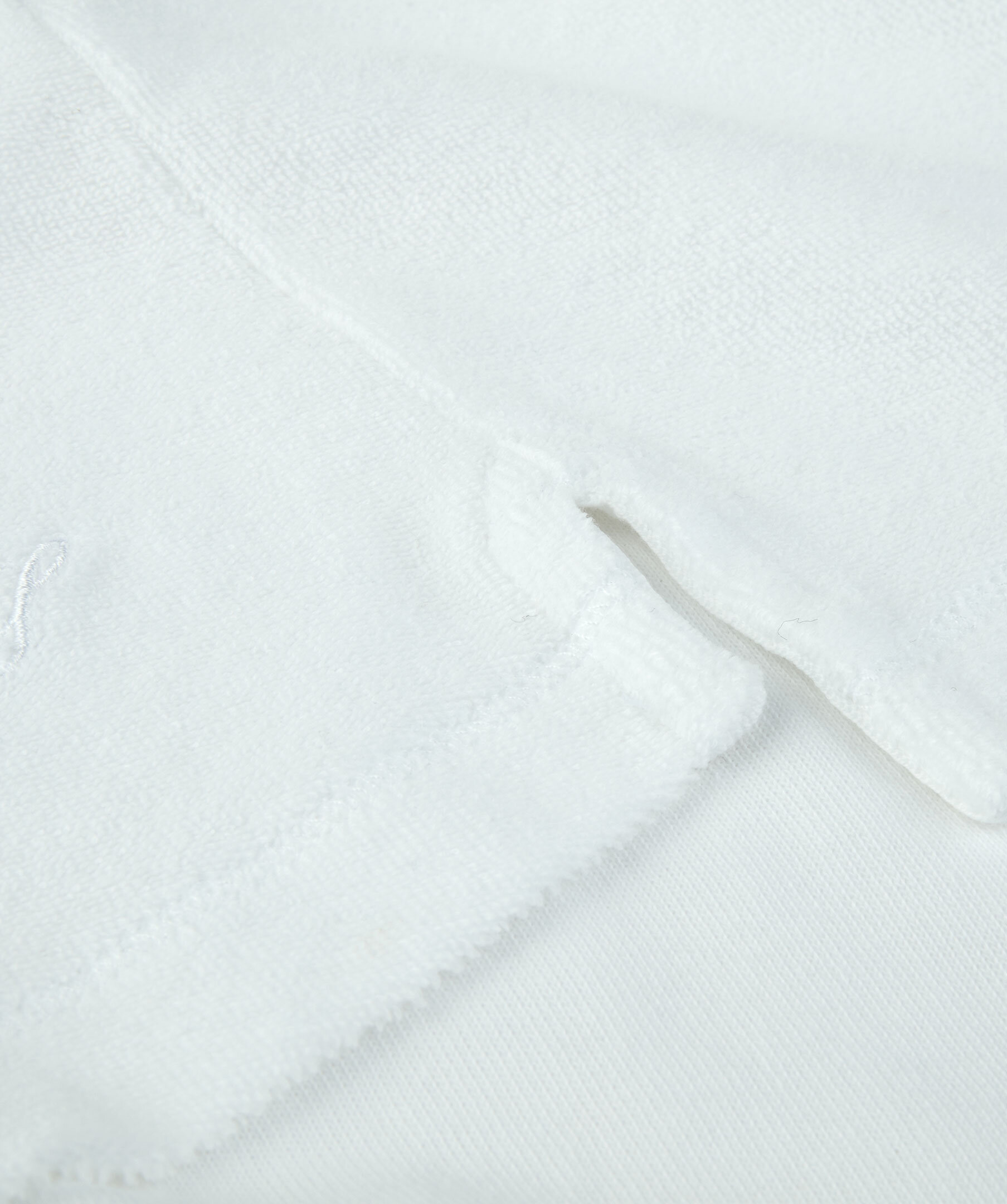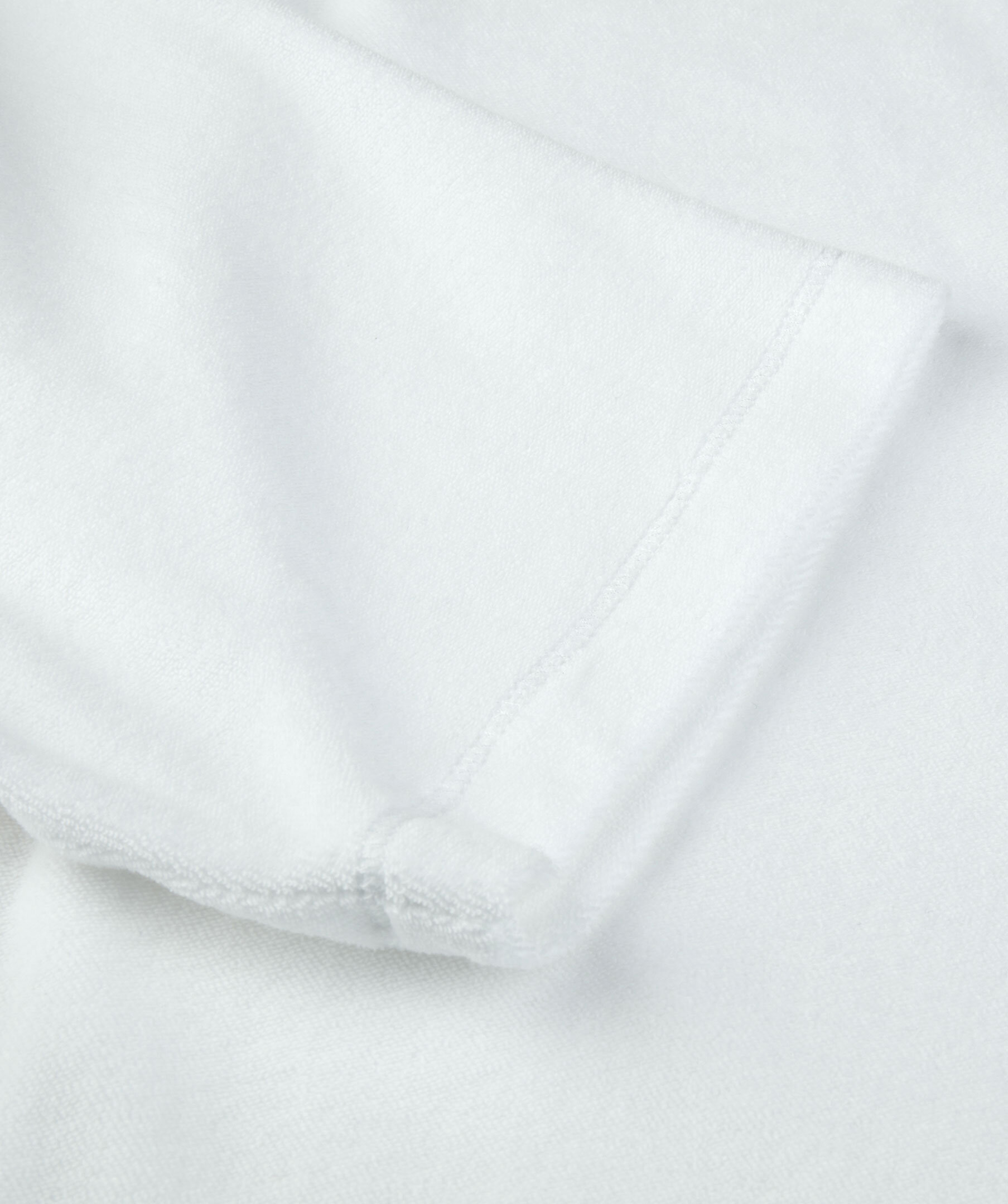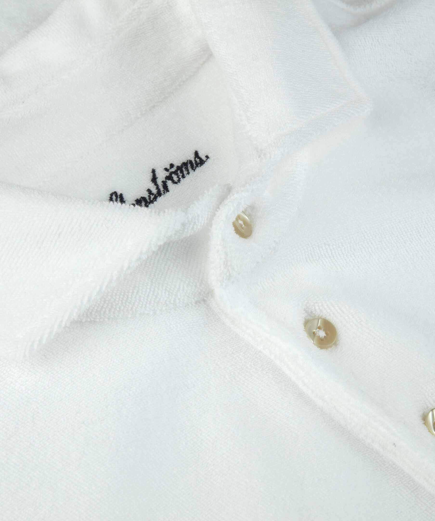 Piké i bomullsfrotté med korta ärmar och designad med små sidslitsar i nederkant. Den har en knäppning med tre knappar i beige pärlemor, ett vågat men enkelt sätt att uppdatera din stil för kommande varmare dagar. Vi föreslår att du bär den till badshorts eller de matchande shortsen i bomullsfrotté i samma färg för ett matchande set.