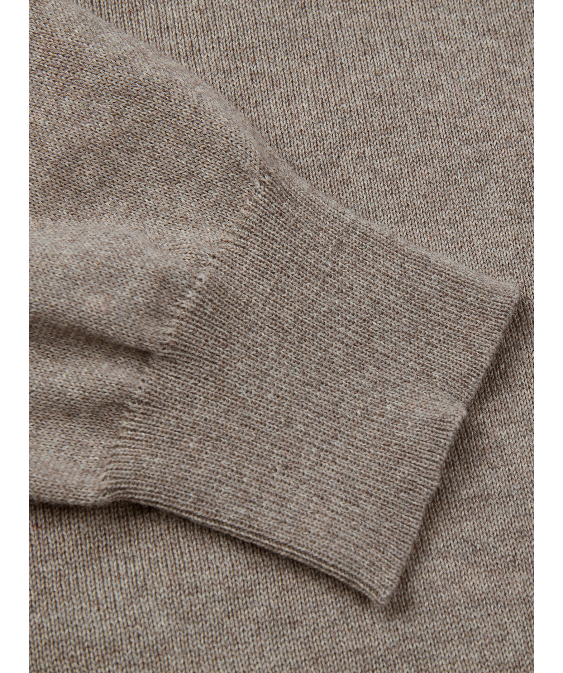 Denna melerade v-ringade tröja är tillverkad av merinoull och har ribbstickade detaljer vid krage, ärm- och plaggslut