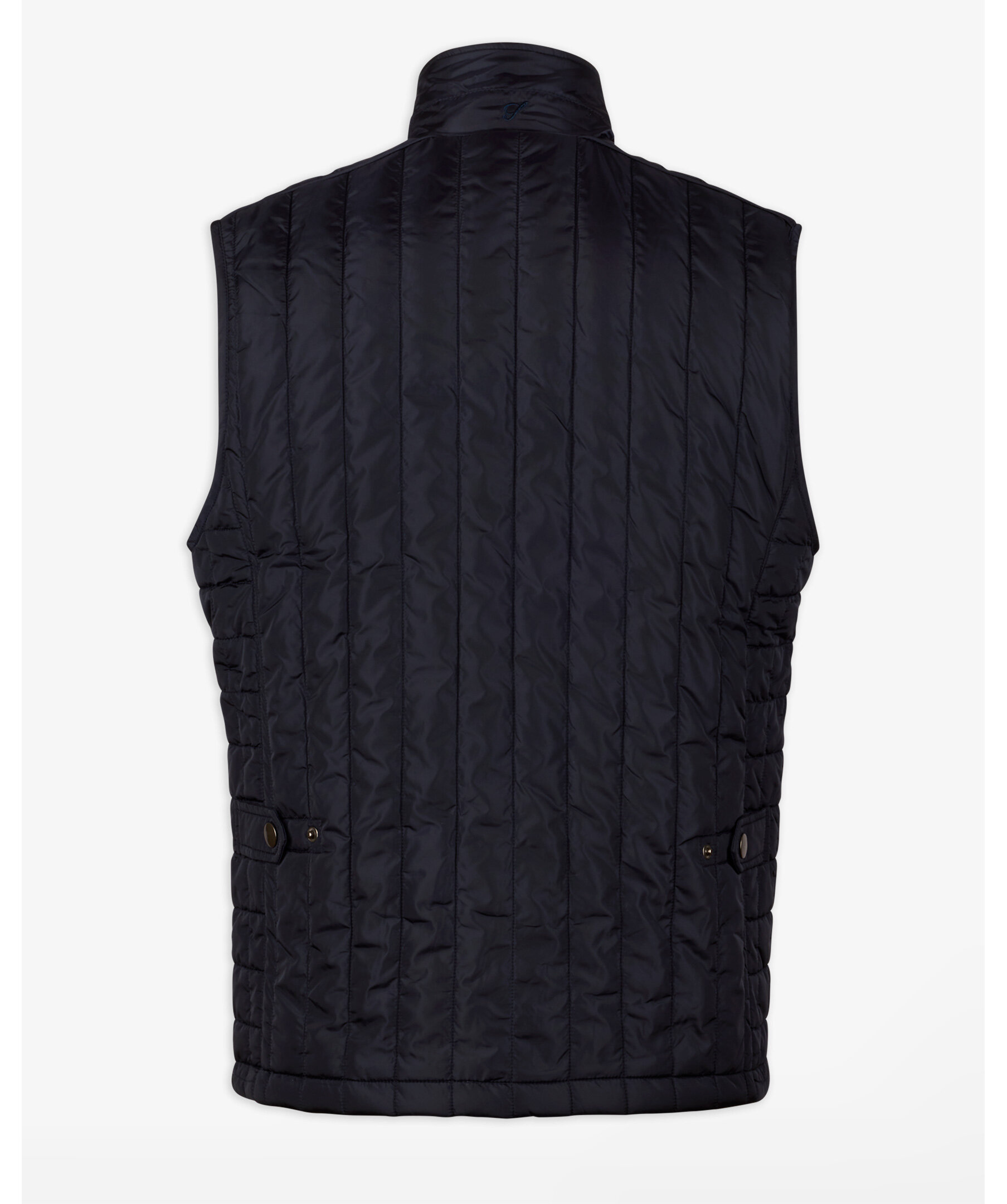 Marinblå quiltad väst från Stenströms tillverkad av nylon och har en bröstficka och två sidfickor.